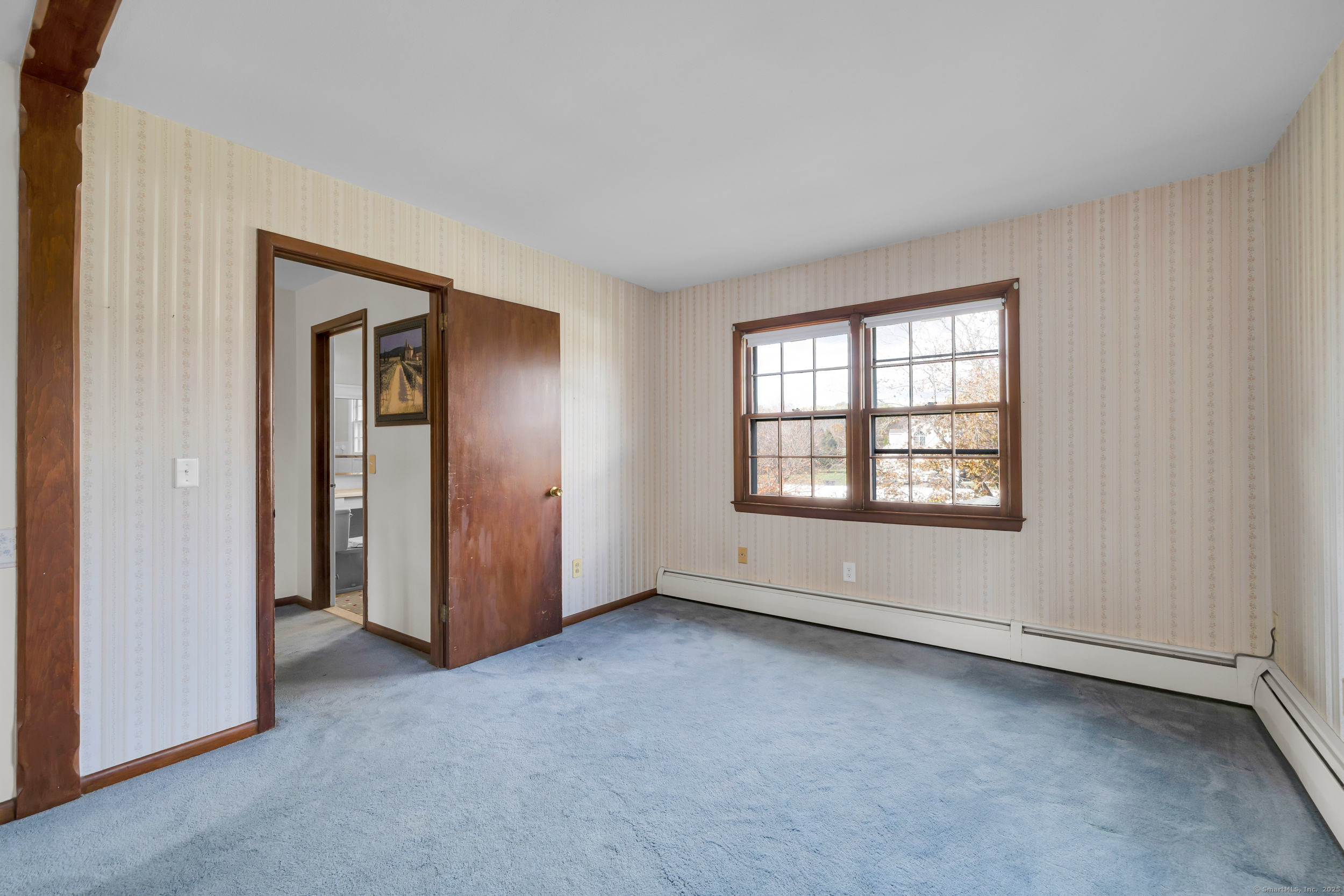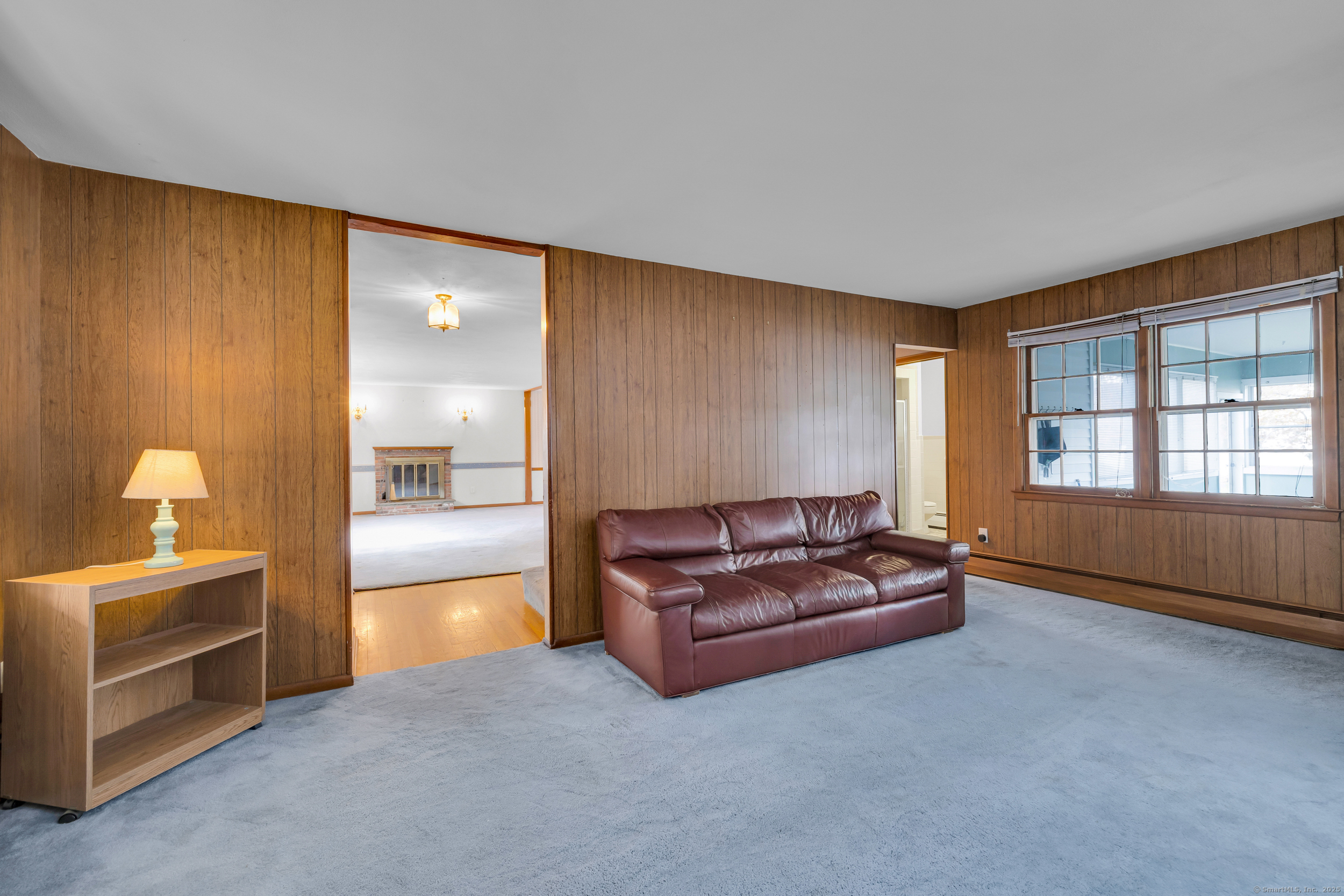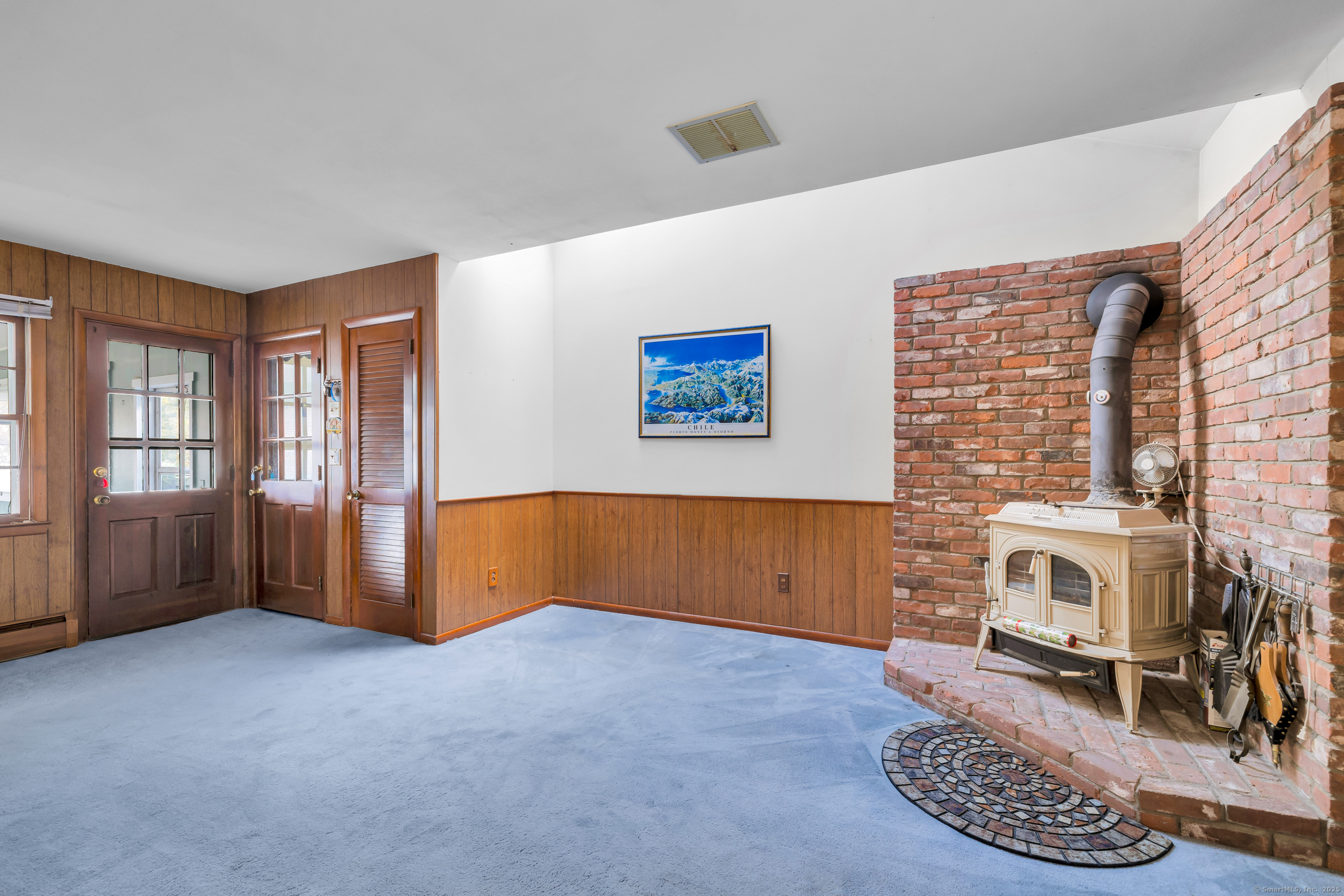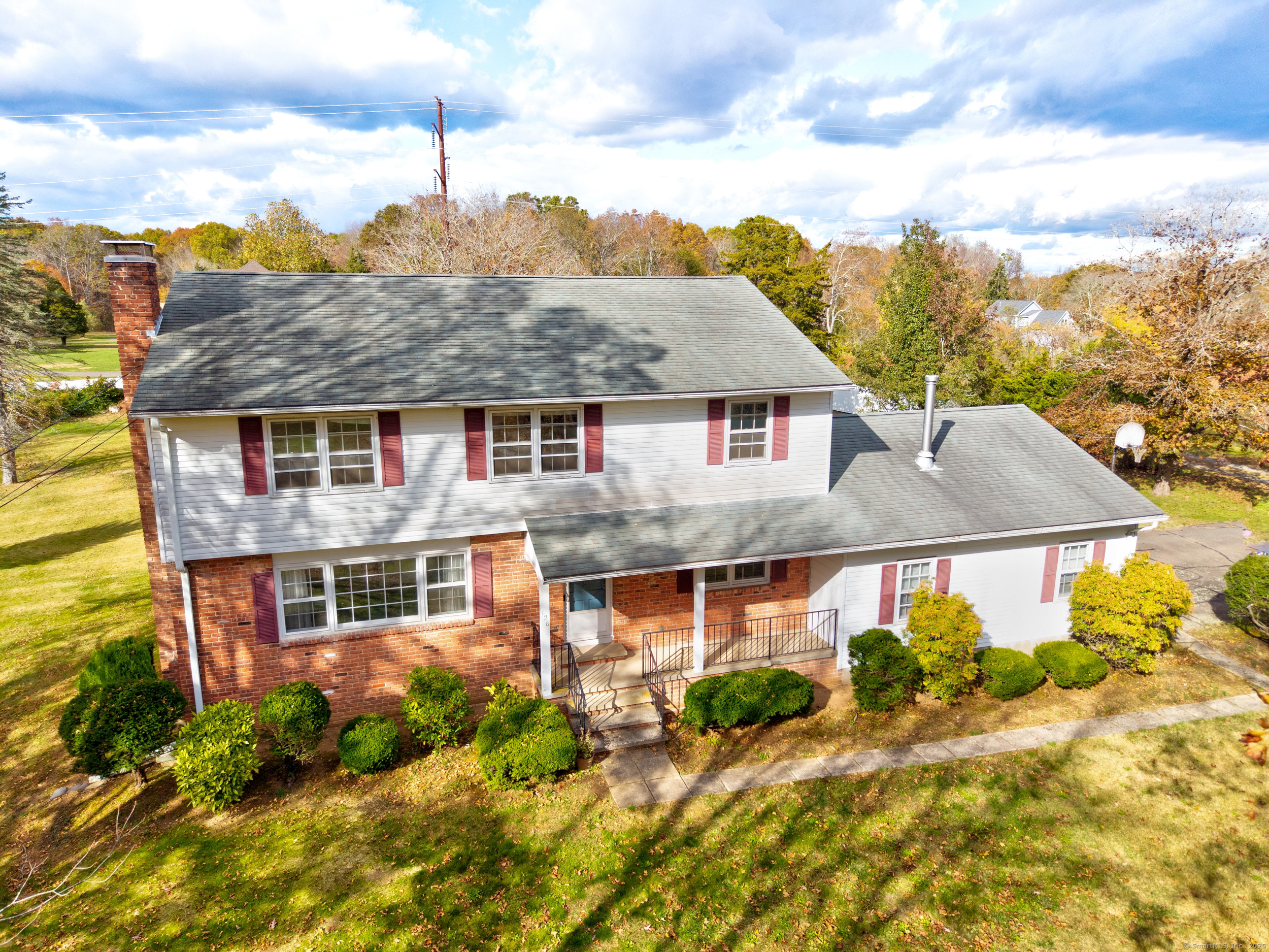 Looking for privacy and space close to town? This classic Colonial offers 4 bedrooms, 2 full baths, and sits on a level .90-acre lot. The main level features a bright living room with a wood-burning fireplace and a large picture window overlooking the front yard, flowing easily into the dining room. The kitchen includes a breakfast bar and built-in pantry storage. A spacious family room with a cozy wood stove and skylight fills the space with natural light, while the adjoining sunporch, featuring two exterior doors, opens to the backyard. Upstairs, you'll find four bedrooms, all with hardwood floors (including one currently carpeted), and a full bath with double sinks and a tub/shower combo. The large, level lot provides ample space for outdoor entertaining, gardening, or play. Additional highlights include a 2-car garage, full walk-out basement with laundry area (washer & dryer convey) and utility sink, plus an outdoor storage shed. While the home would benefit from updating, it offers an excellent opportunity to personalize and create your dream home in a desirable location. Conveniently noted just minutes from Guilford's historic town center and the Green, with quick and easy access to I-95 and Metro North, and 15 minutes to downtown New Haven and Yale. Bring your vision and make this special property shine!
