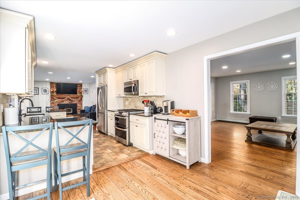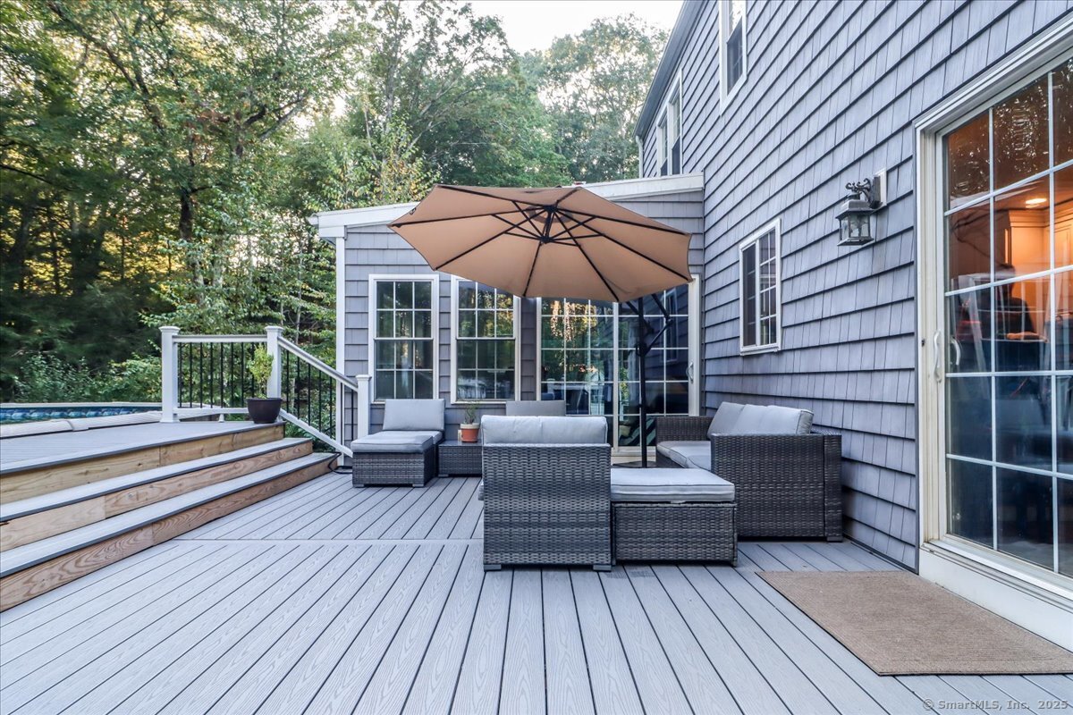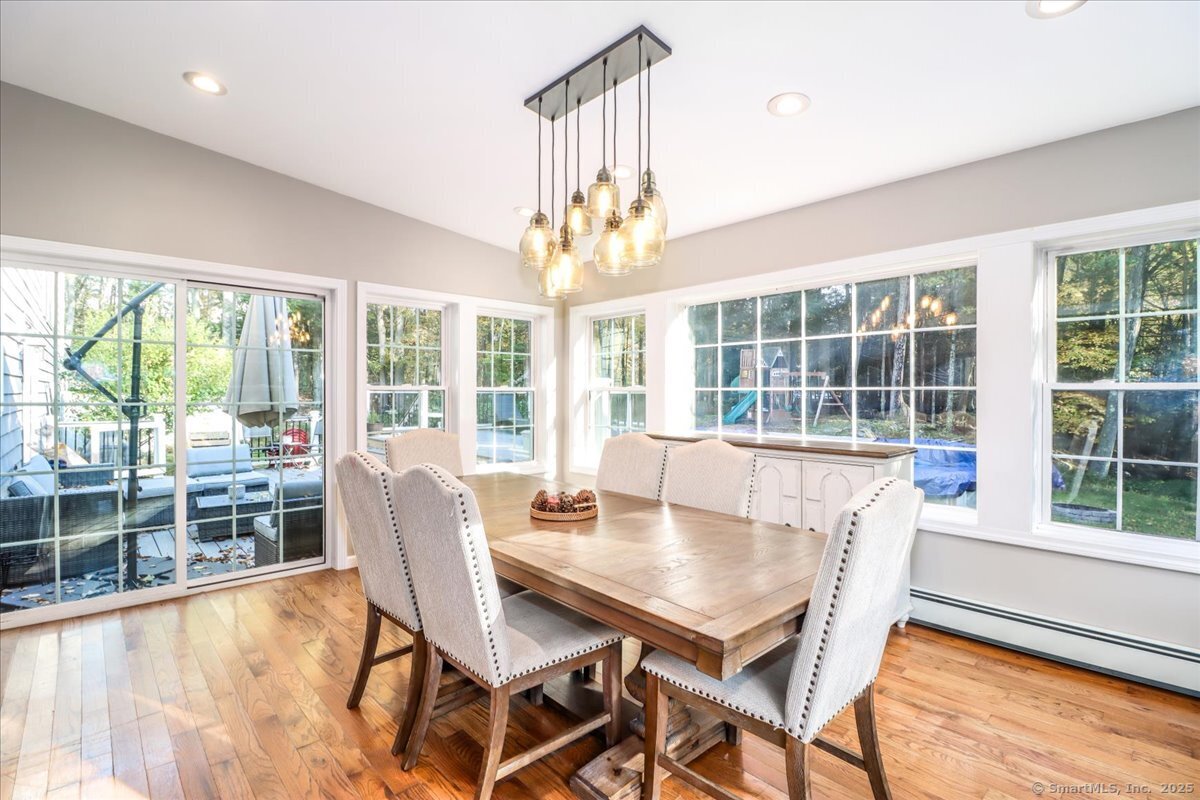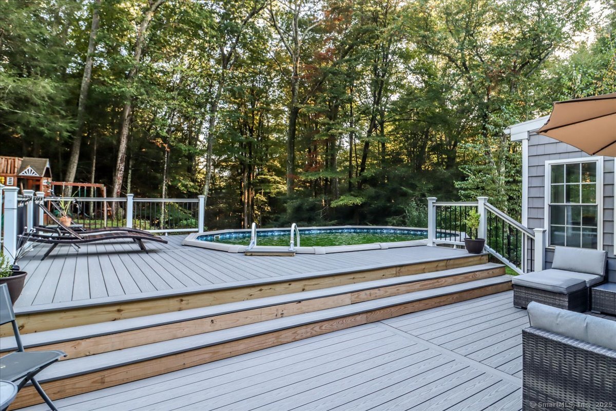 Welcome home to this beautifully maintained classic New England Cape, nestled on a quiet, tree-lined cul-de-sac! Brimming with natural light, warmth & timeless charm, this home offers the perfect balance of cozy comfort & modern convenience. Step inside to find gleaming hardwood floors throughout, creating a seamless & elegant flow from room to room. The heart of the home is the chef's kitchen, thoughtfully designed with granite countertops, custom cabinetry, and SS appliances. The sun-filled living, dining & family rooms offer inviting spaces to relax or entertain, with large windows that bring the outdoors in. Upstairs, you'll find 3 spacious bedrooms with great closet space & classic Cape-style charm. 2 tastefully updated full bathrooms (2025) complete the upper level. A standout feature is the bonus space above the garage (2023). This versatile flex room can serve as a 4th bedroom, home office, playroom, etc. Out back, enjoy your own private oasis. The spacious, level yard is fully fenced & includes a playground, cozy firepit area and a pool surrounded by an expansive deck (2024); perfect for summer barbecues, lounging, & making memories. Additional highlights include a new high-efficiency furnace, well tank & water softener! PLUS the roof, siding & windows are all less than 10 years old! Close to Brookfield public schools, local parks, shopping, and major commuter routes, this home offers a rare combination of charm, space & convenience!