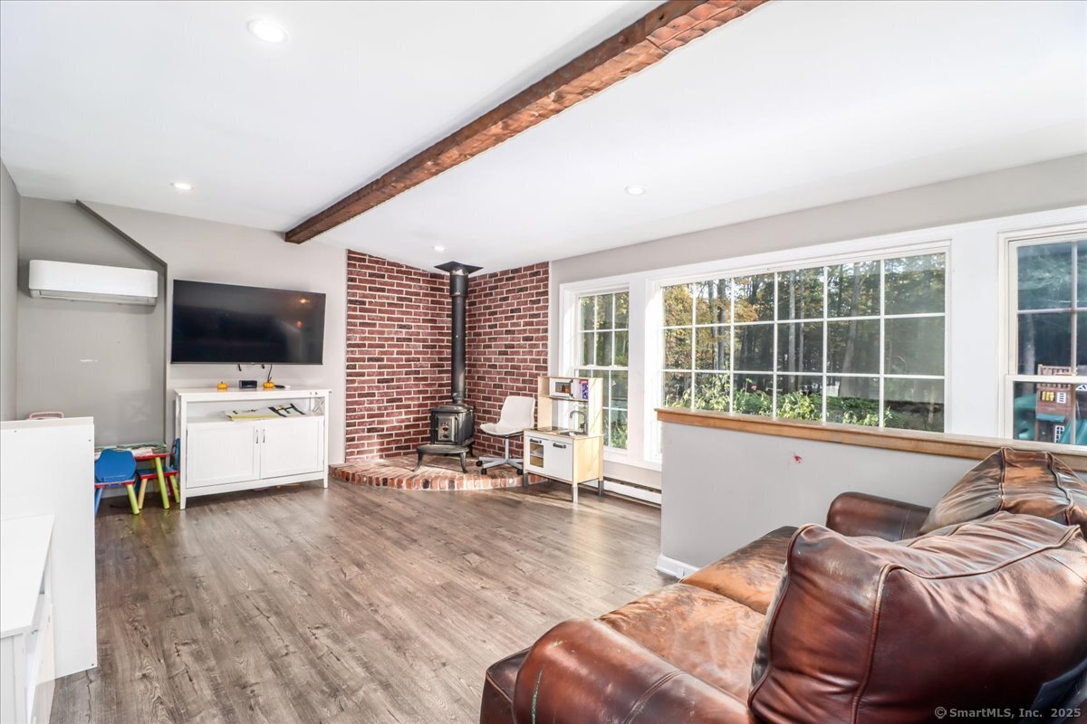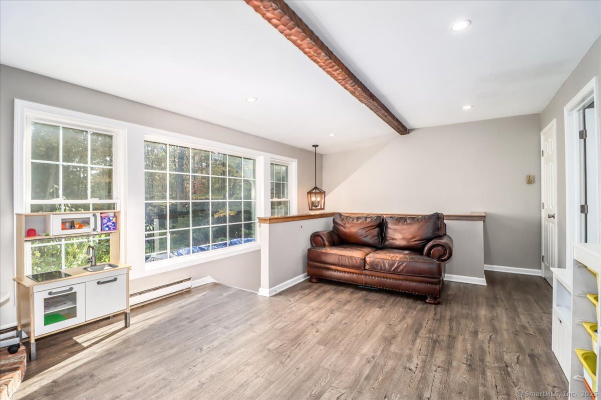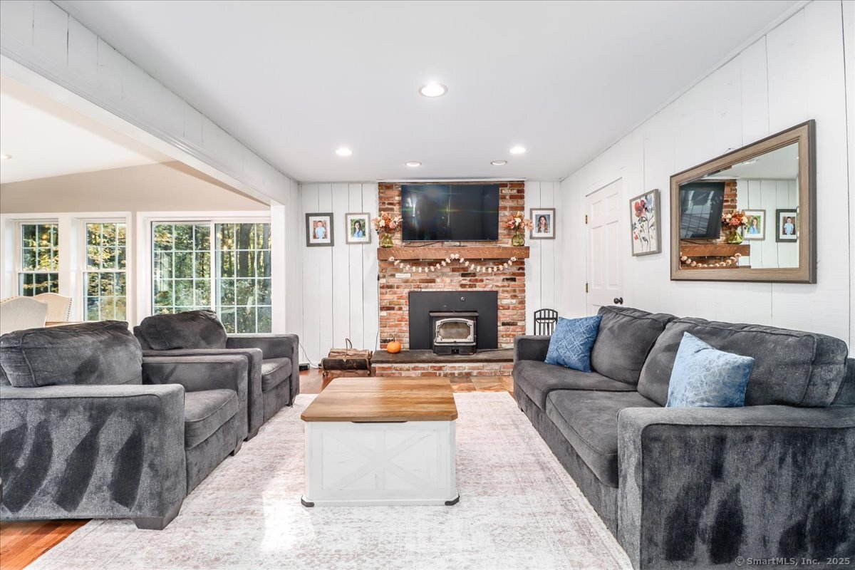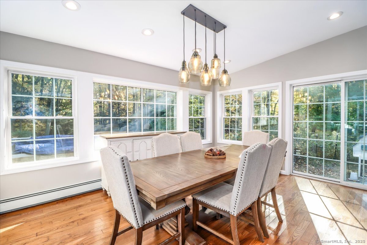 Welcome home to this beautifully maintained classic New England Cape, nestled on a quiet, tree-lined cul-de-sac! Brimming with natural light, warmth & timeless charm, this home offers the perfect balance of cozy comfort & modern convenience. Step inside to find gleaming hardwood floors throughout, creating a seamless & elegant flow from room to room. The heart of the home is the chef's kitchen, thoughtfully designed with granite countertops, custom cabinetry, and SS appliances. The sun-filled living, dining & family rooms offer inviting spaces to relax or entertain, with large windows that bring the outdoors in. Upstairs, you'll find 3 spacious bedrooms with great closet space & classic Cape-style charm. 2 tastefully updated full bathrooms (2025) complete the upper level. A standout feature is the bonus space above the garage (2023). This versatile flex room can serve as a 4th bedroom, home office, playroom, etc. Out back, enjoy your own private oasis. The spacious, level yard is fully fenced & includes a playground, cozy firepit area and a pool surrounded by an expansive deck (2024); perfect for summer barbecues, lounging, & making memories. Additional highlights include a new high-efficiency furnace, well tank & water softener! PLUS the roof, siding & windows are all less than 10 years old! Close to Brookfield public schools, local parks, shopping, and major commuter routes, this home offers a rare combination of charm, space & convenience!