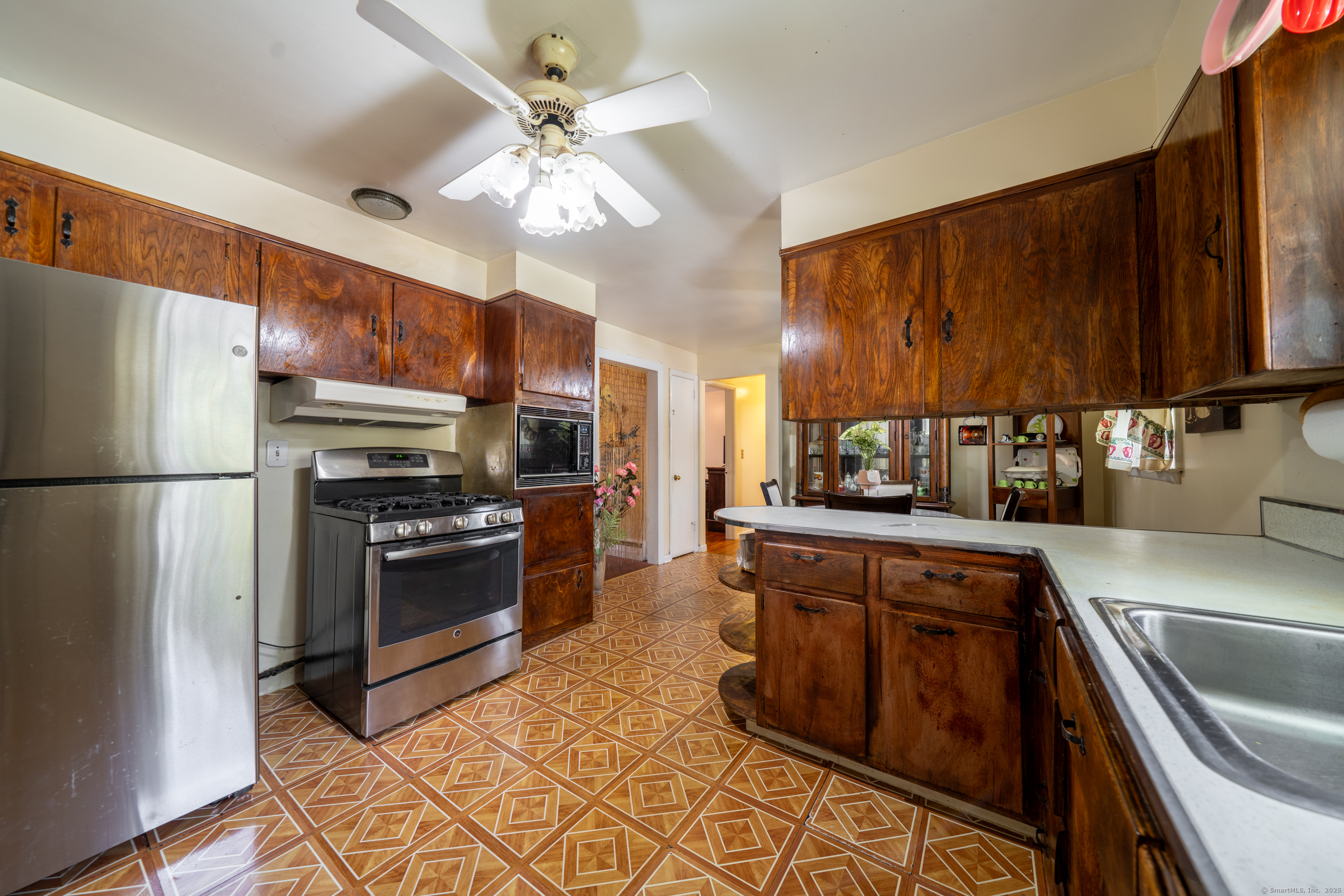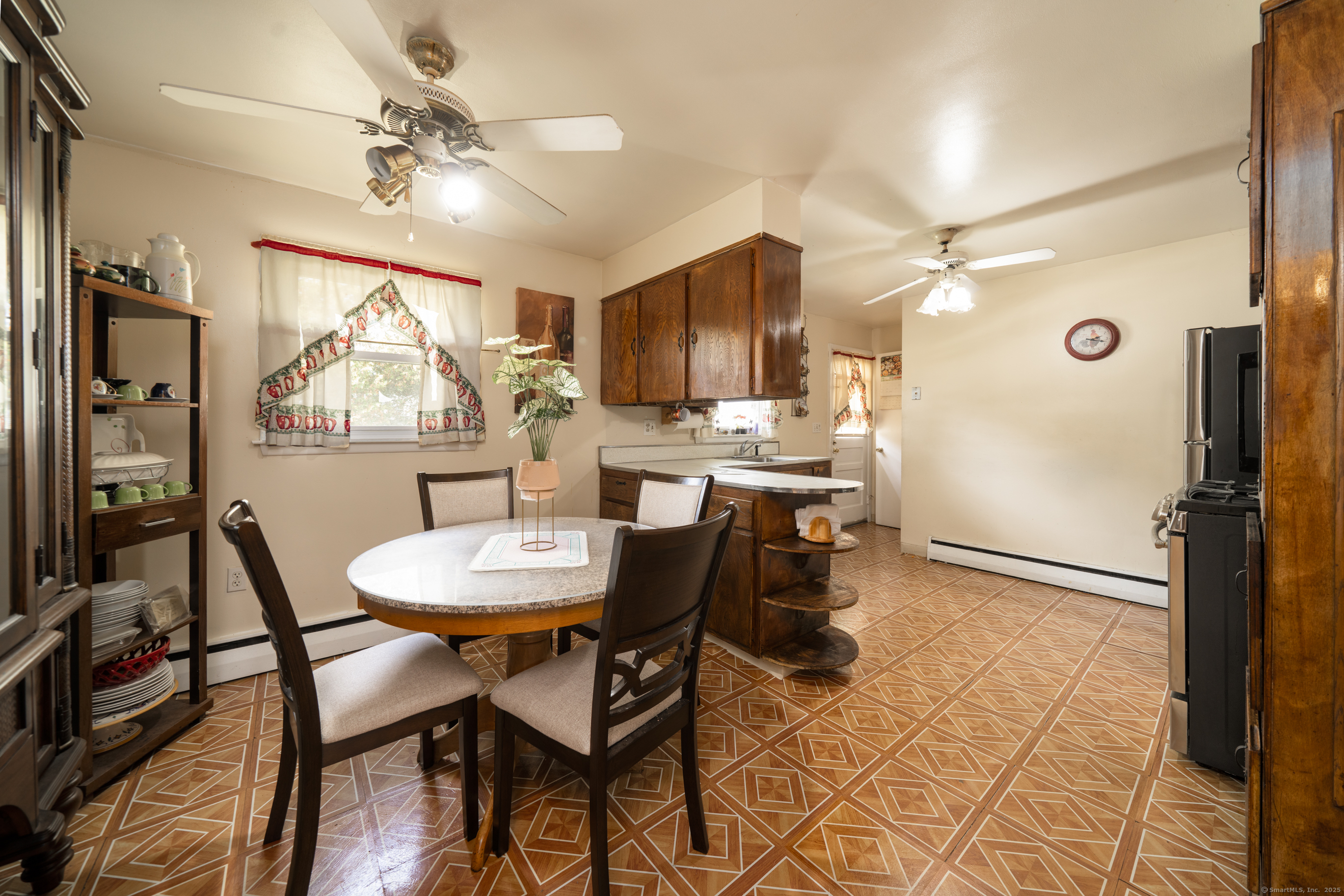Welcome to your dream home in the heart of Stratford's desirable Stonybrook neighborhood! This charming move-in-ready 4-bedroom, 2-bathroom ranch offers the perfect balance of comfort and convenience living. Inside, you'll find over 1900 square feet of living space, with hardwood floors in the living room, hallway and main level bedrooms. The kitchen and dining areas are seamlessly connected, creating a functional and welcoming space for everyday living. The living room features a wood-burning fireplace next to the window with view to private front loan for quiet time and entertaining. The primary bedroom includes a ceiling fan, walk-in closet, hardwood floor, and three additional bedrooms provide flexibility for a larger family and guests. The attached garage offers additional storage for vehicles and outdoor essentials. The basement offers extra storage space including a small wet bar/dining area to entertain family and guests.