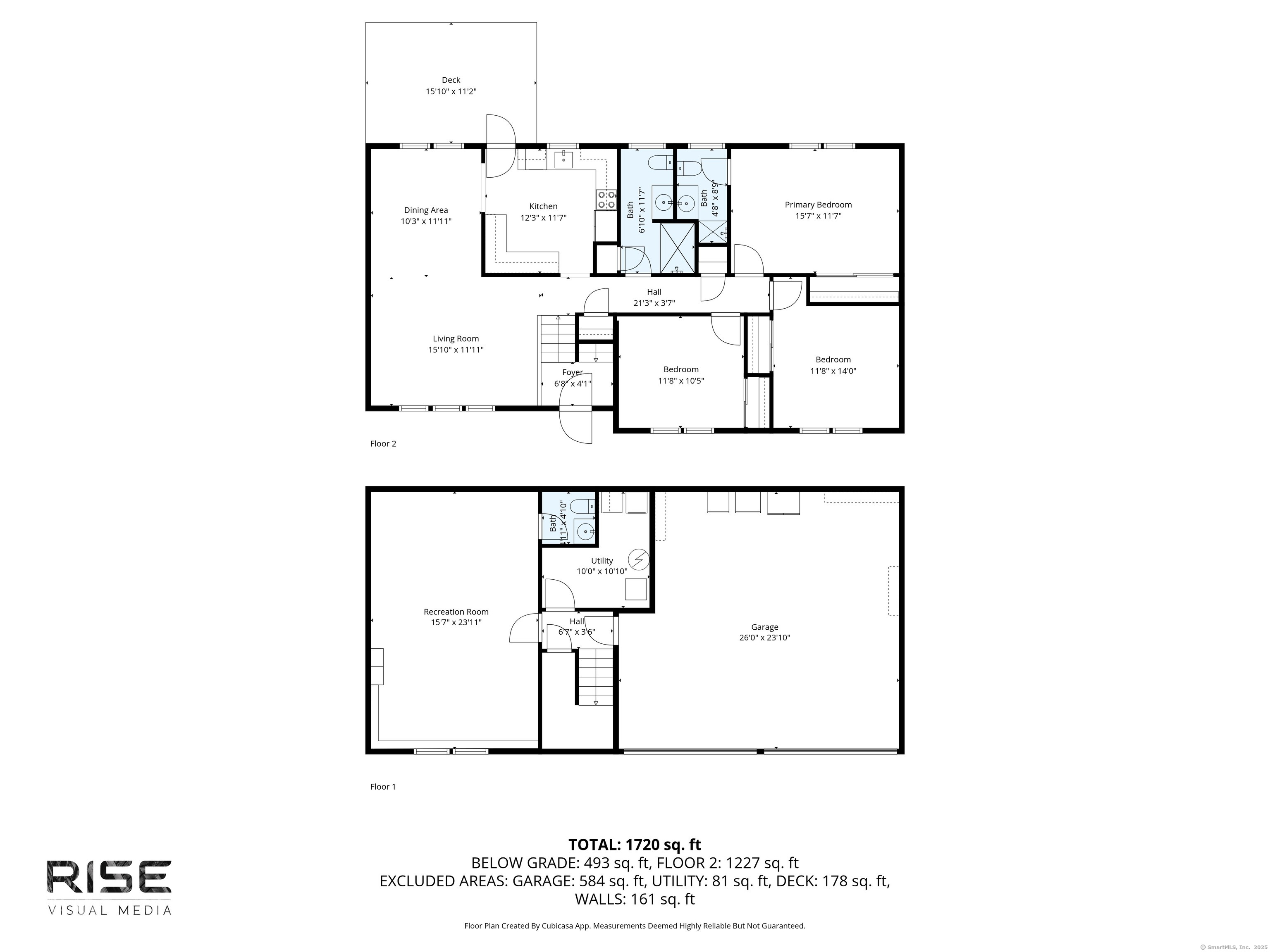 SgFt Description : 1, 227 sq ft in the upper half and finished part of lower level is 493 sq ft.