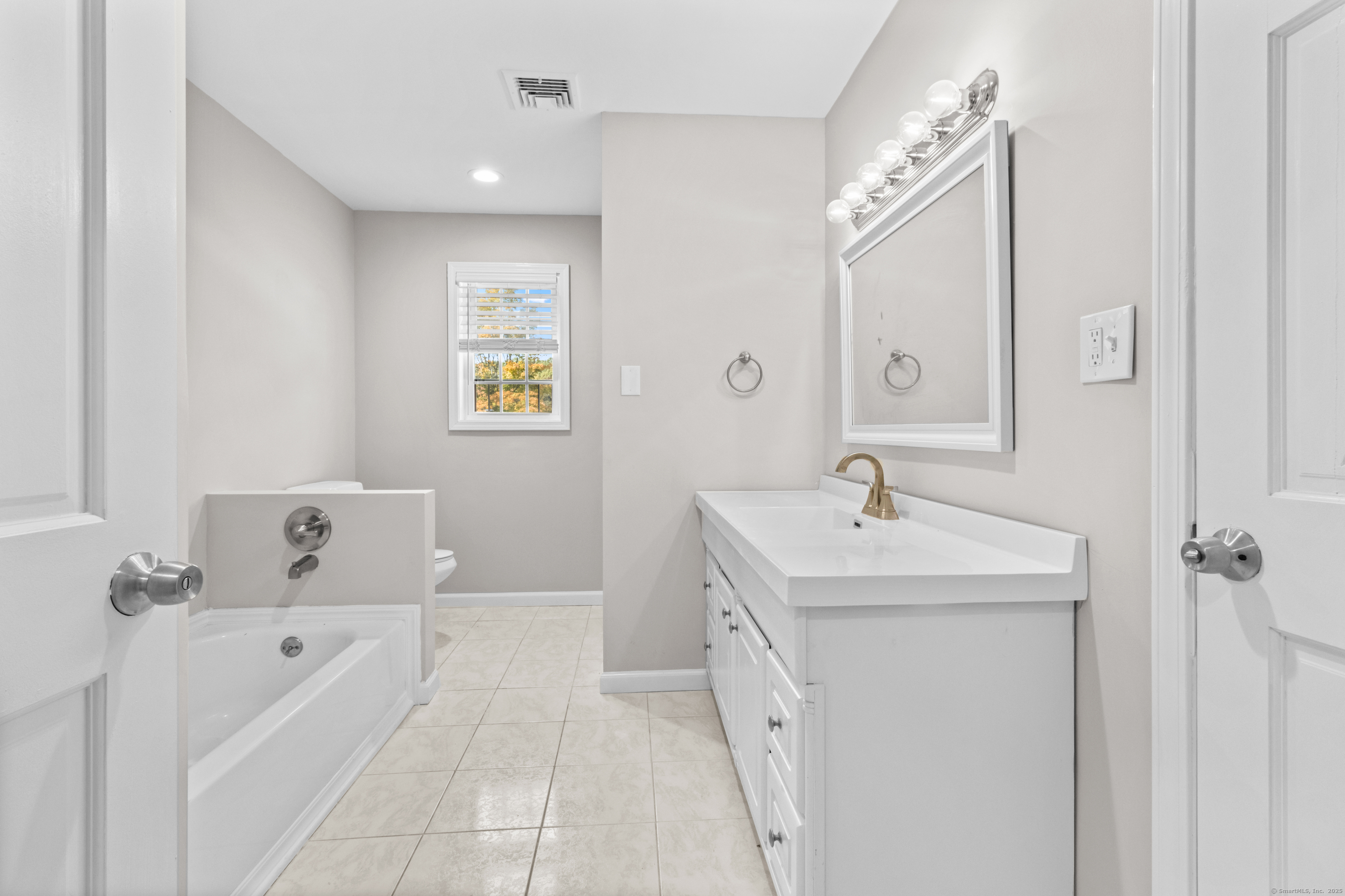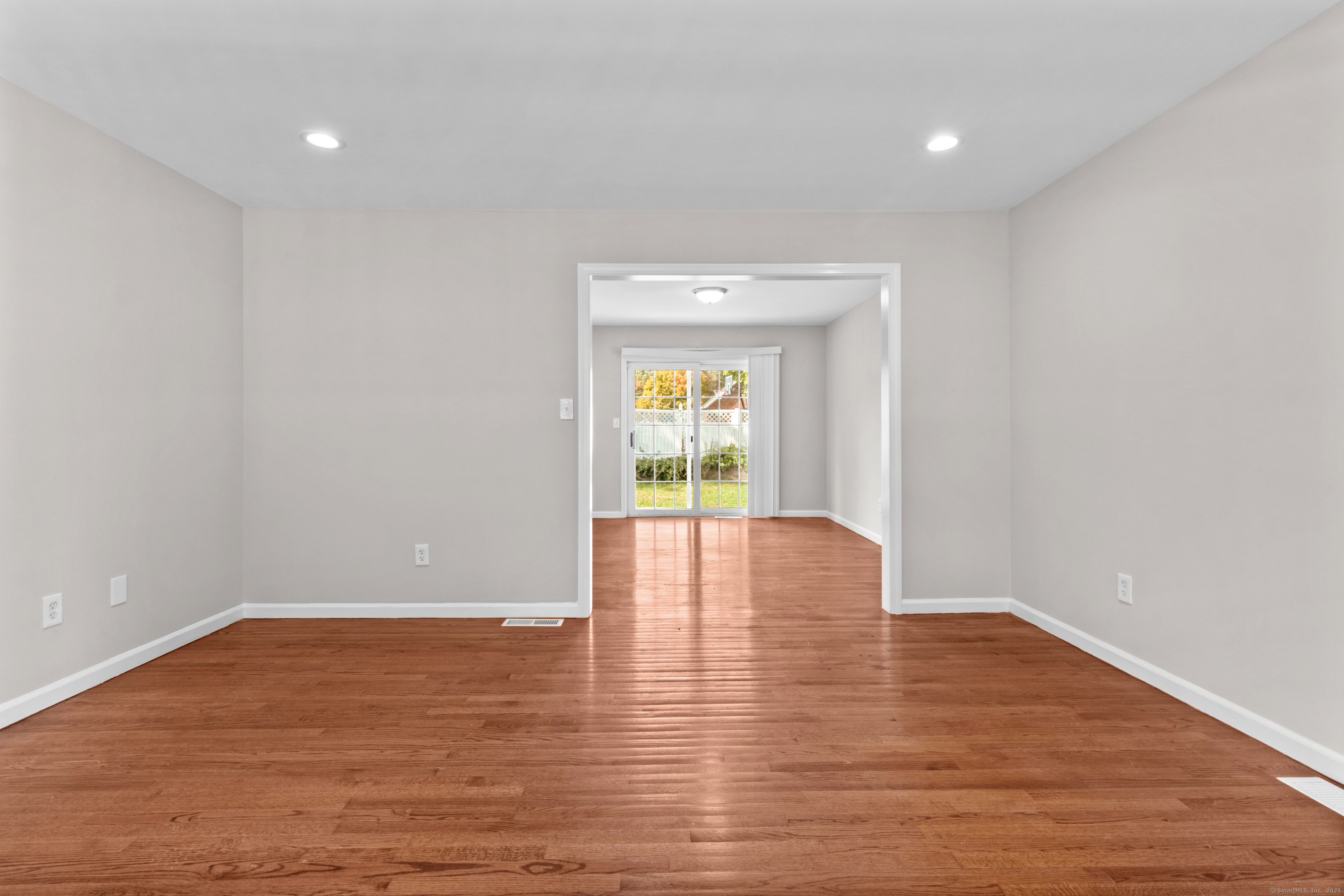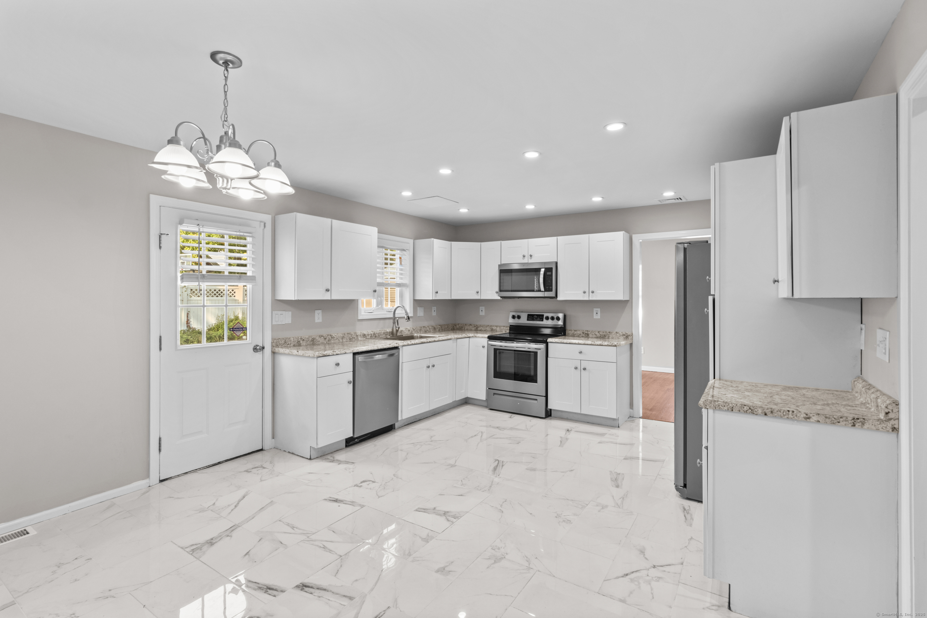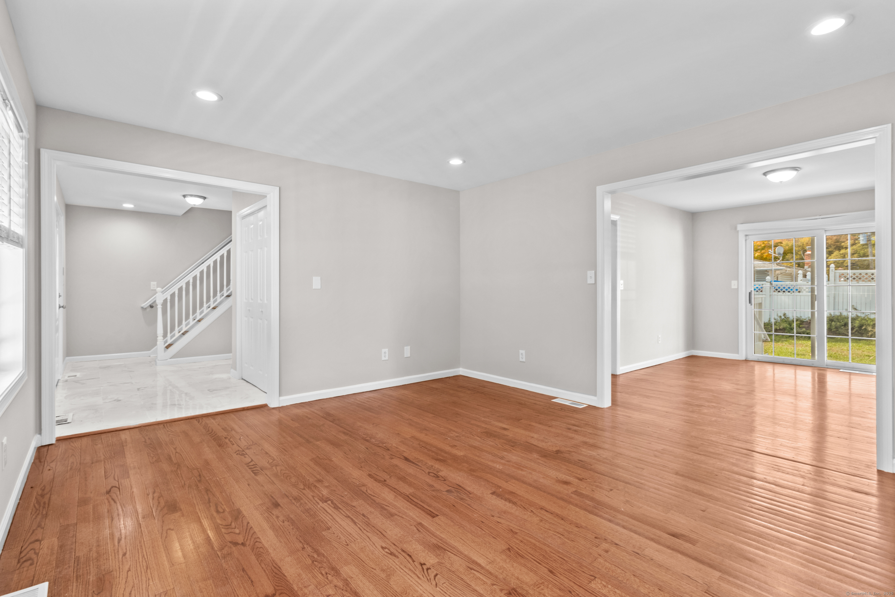 Beautifully updated colonial in the heart of East Haven. this center hall colonial features a beautiful level flat yard perfect for entertaining. Walk through the front door to an open and light floor plan featuring newly finished hardwood floors on the first floor, cathedral ceilings in the living room with stainless steel appliances opening into the kitchen. The second level of the home features three bedrooms all with brand new carpeting throughout.