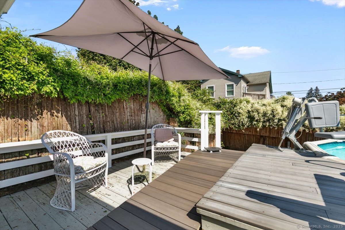 Welcome to Coastal Comfort Near Wildemere Beach! Discover the perfect blend of modern convenience, accessibility, and coastal charm in this beautifully maintained corner-lot home, just steps from Wildemere Beach. This move-in-ready property offers an airy, open concept ideal for everyday living and entertaining. Main Features:Bright, freshly painted interior with a seamless flow between living, dining, and kitchen areas. Updated kitchen with stainless steel appliances, built-in hutch. Versatile first-floor bonus room perfect as a guest bedroom, home office, or playroom. Two remodeled full bathrooms including a fully handicapped-accessible bathroom on the first floor. 3 spacious upstairs bedrooms with new flooring and generous closet space. Convenient first-floor laundry. Front and back decks with ramp access. Above-ground pool with chair lift for inclusive enjoyment. Outdoor storage shed for extra space. The Wildemere Beach area is beloved for its small but wide beige-sand beach positioned along the shores of Long Island Sound, with spectacular views and a beautiful backdrop of oceanfront homes. This family-friendly neighborhood, you'll be minutes from local favorites like Lazy Lobster, Walnut Beach Coffee House, and Walnut Beach Creamery. Whether you're seeking a full-time residence or a coastal retreat, this home offers the perfect combination of beach lifestyle and modern comfort.