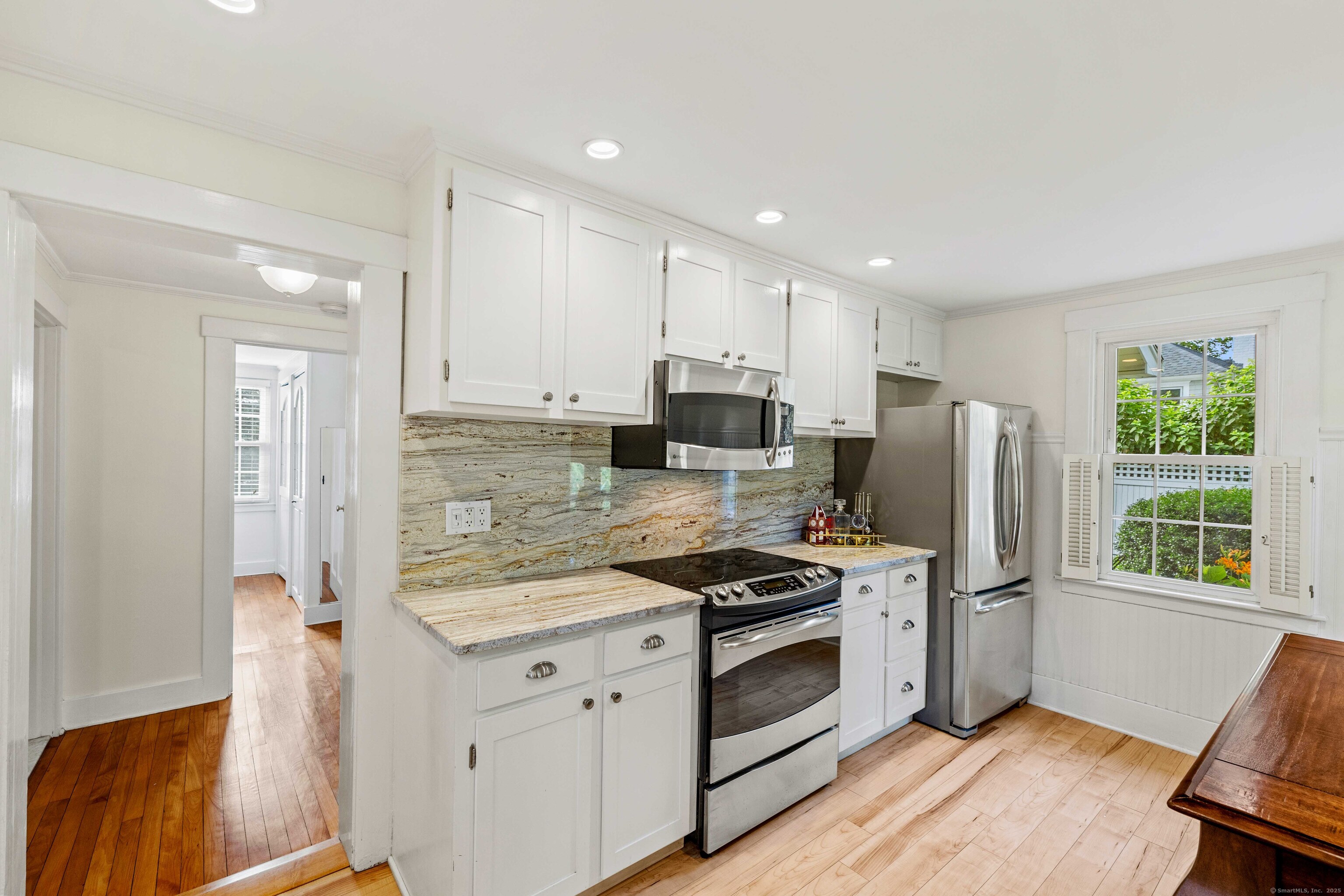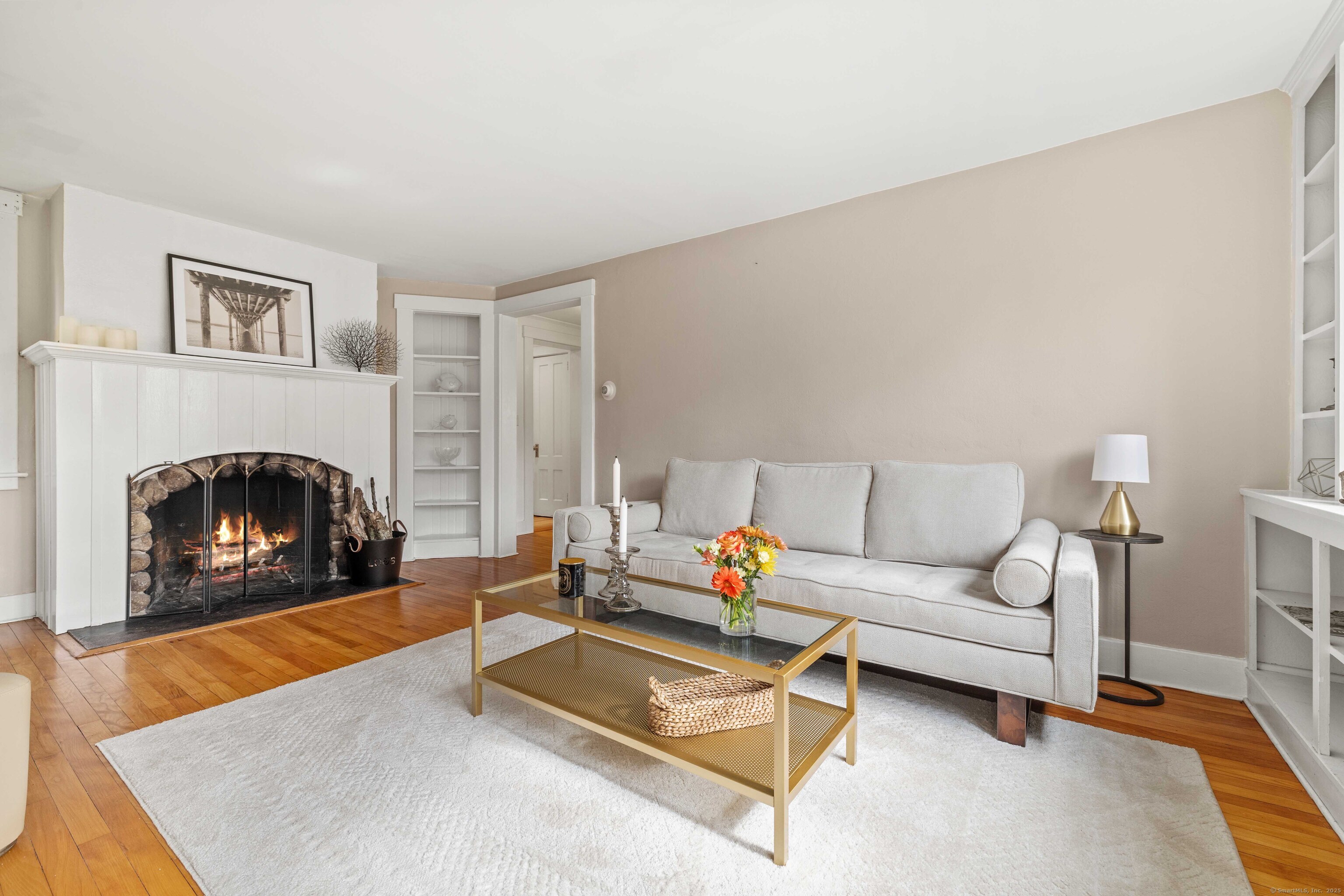 Nestled in the heart of historic Essex Village, this charming 2-bedroom, 2-bath Carriage House offers 1,076 sq. ft. of thoughtfully designed living space that perfectly blends historic charm with modern comfort. Just a short stroll from the Connecticut River, local marinas, museums, boutique shops, fine dining, and the iconic Griswold Inn, this home embodies the quintessential Essex lifestyle. Natural sunlight fills the interior, creating a warm and inviting atmosphere throughout. The living room features built-ins and a wood-burning fireplace, adding to the home's cozy New England character. The tiered gardens that surround the property provide privacy and a peaceful outdoor retreat-ideal for relaxing or entertaining in a picturesque setting. Experience the timeless beauty of this historic home while enjoying modern updates and the rare convenience of village living. There is also potential to expand the second floor, offering future flexibility for additional living space Don't miss this rare opportunity to own a truly special piece of Essex.