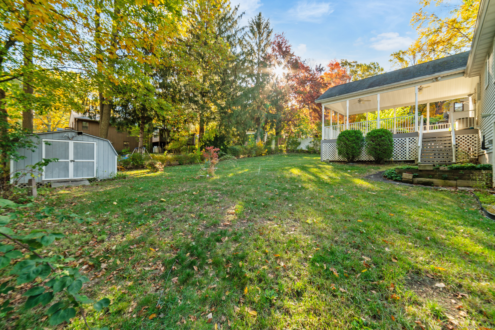 Welcome to this nicely maintained raised ranch that is ready for you to move right in! Step inside to find an updated kitchen that opens to the dining area, creating the perfect space for everyday meals or hosting family and friends. Sliding glass doors lead from the dining area to a spacious covered deck-an ideal spot to relax and enjoy views of the backyard. The inviting living room features a cozy pellet stove and a large bay window that fills the space with natural light, creating a warm and welcoming atmosphere. The main level offers three comfortable bedrooms, each with a ceiling fan, along with a full bath. New carpeting adds a fresh touch throughout the main level (except in the kitchen and bath). Downstairs, the finished lower level provides even more living space with a family room, half bath with laundry, and convenient access to the two-car garage. Outside, you'll love the large, private backyard-perfect for play, gardening, or simply unwinding. A storage shed offers room for your outdoor tools and equipment, while a pull-down staircase to the attic provides additional storage space. This home has been thoughtfully cared for and is ready to welcome its next owners-come see all it has to offer!