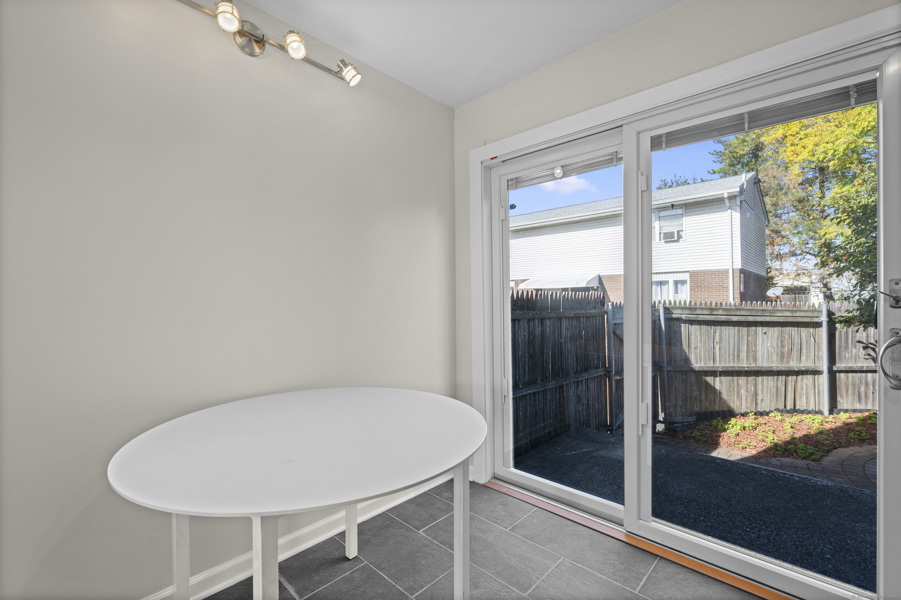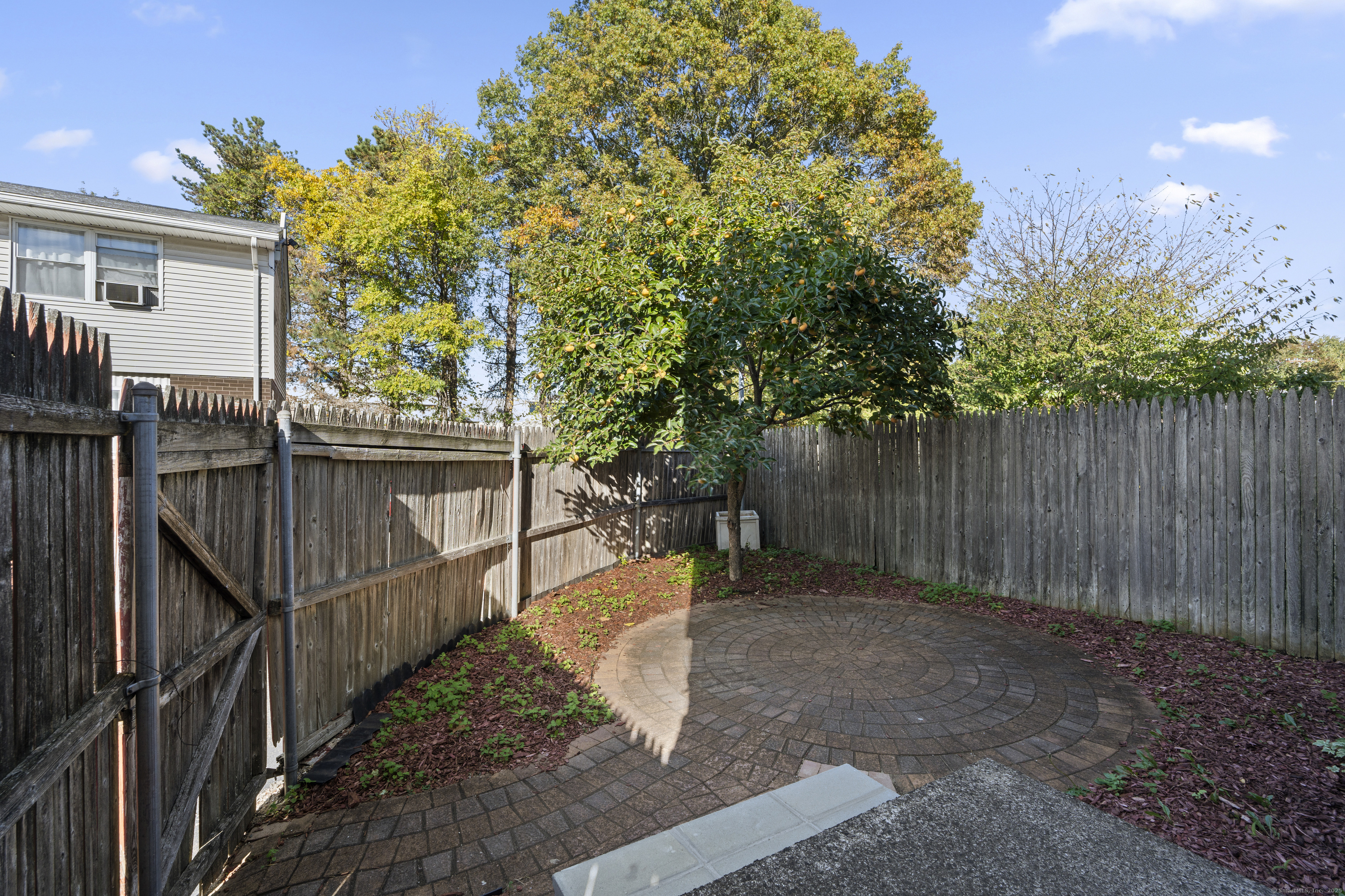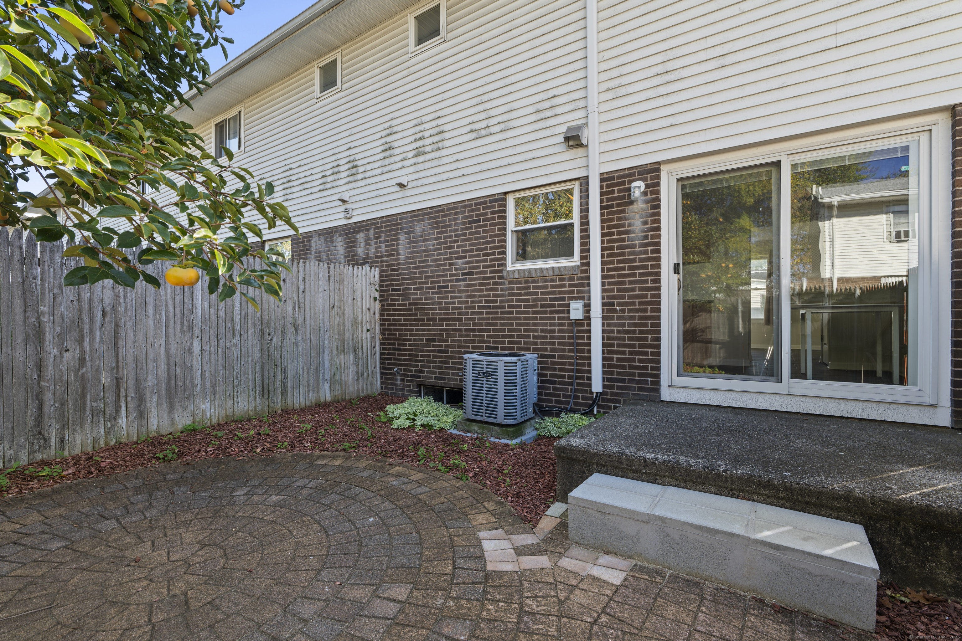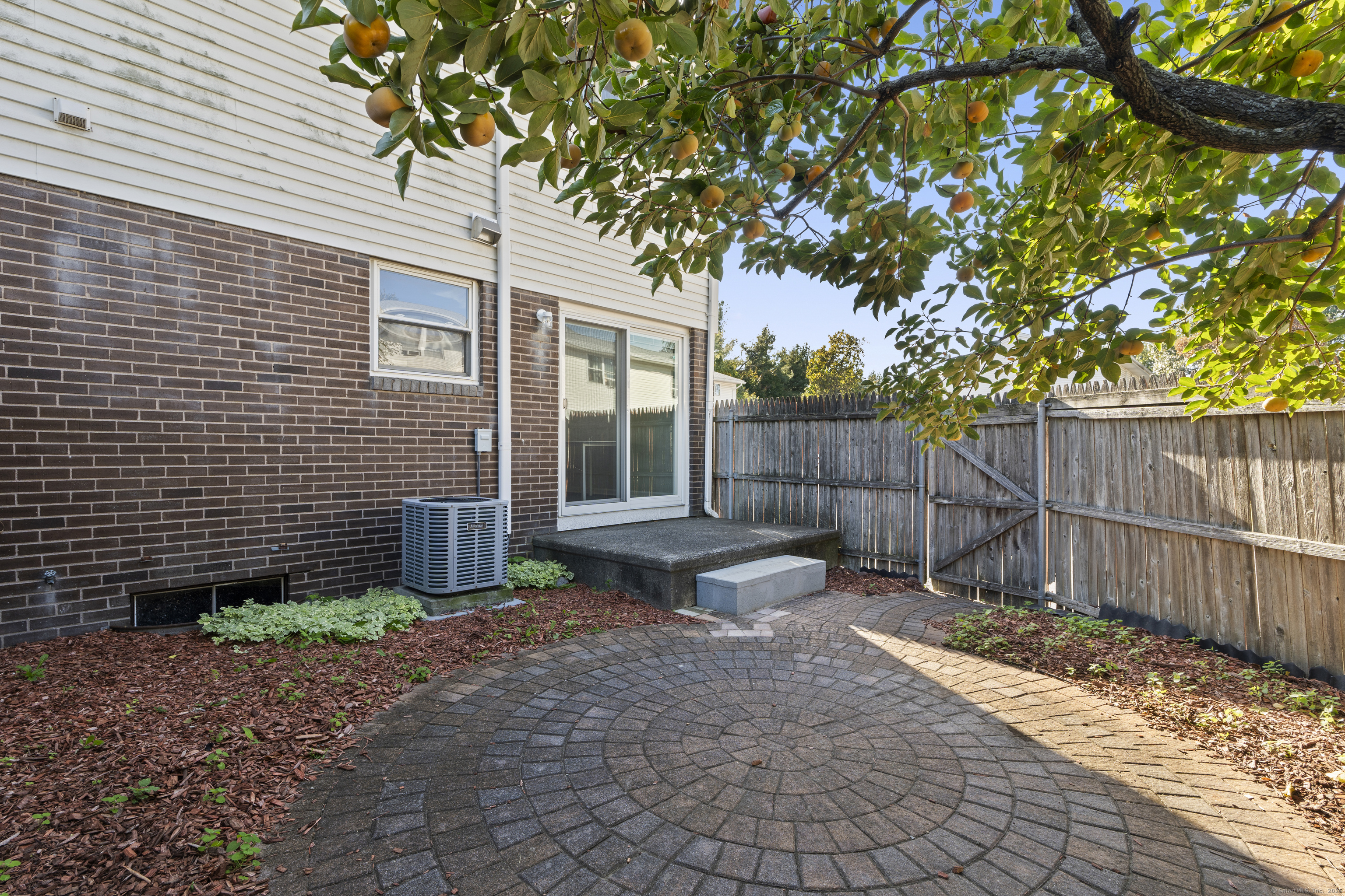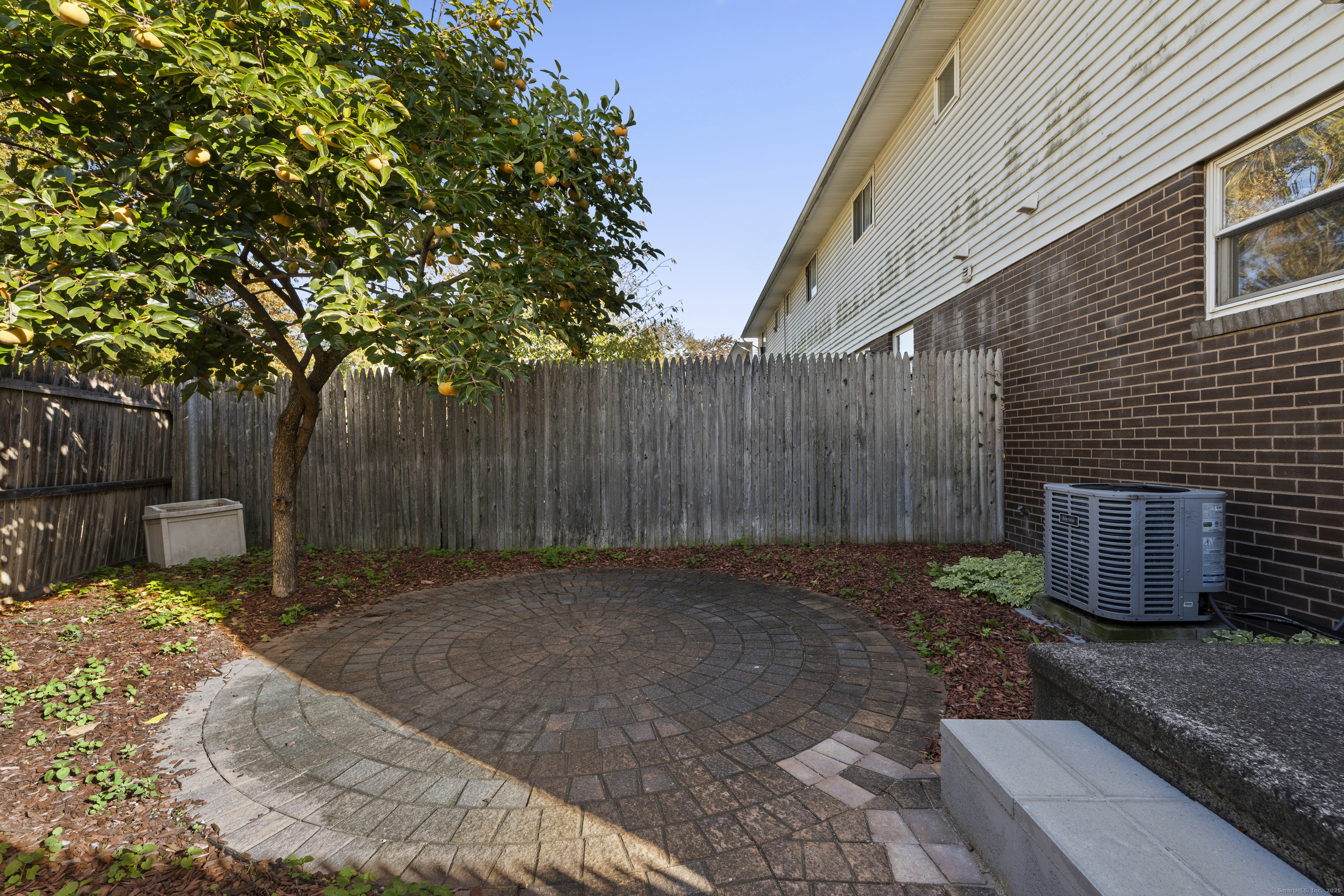 Welcome home to this beautifully renovated end unit townhouse-style condo in a quiet, well-maintained complex of just 33 units. Every inch has been updated for modern comfort and style. The first level features all-new tile flooring, fresh paint, modern lighting, and a bright, open living area with a granite-topped breakfast bar. The kitchen is a showstopper - complete with brand new cabinets, granite countertops, stainless steel appliances, and a sunny eat-in area. Sliders lead to your private, fenced-in patio shaded by a beautiful persimmon tree - perfect for morning coffee or evening relaxation. An updated half bath completes the main level. Upstairs, you'll find rich dark hardwood floors, new lighting, and fresh paint throughout. There are two spacious bedrooms, including one with a large walk-in closet, and an updated full bath with modern finishes. The laundry area is conveniently located upstairs and includes a brand new washer/dryer and built-in cabinetry for extra storage. Additional highlights include central air conditioning (a rare find in the complex!) Enjoy designated parking, an in-ground pool, and close proximity to shopping, restaurants, highways, Yale University, & more! Move right in and enjoy turnkey living!