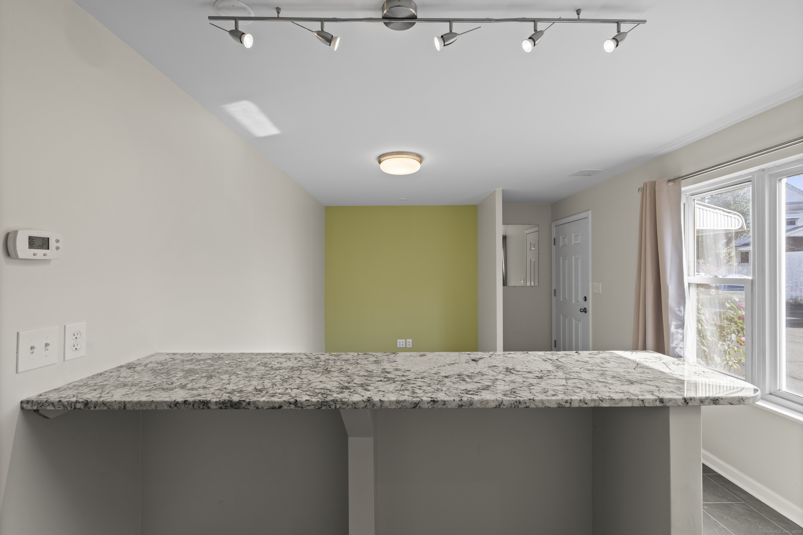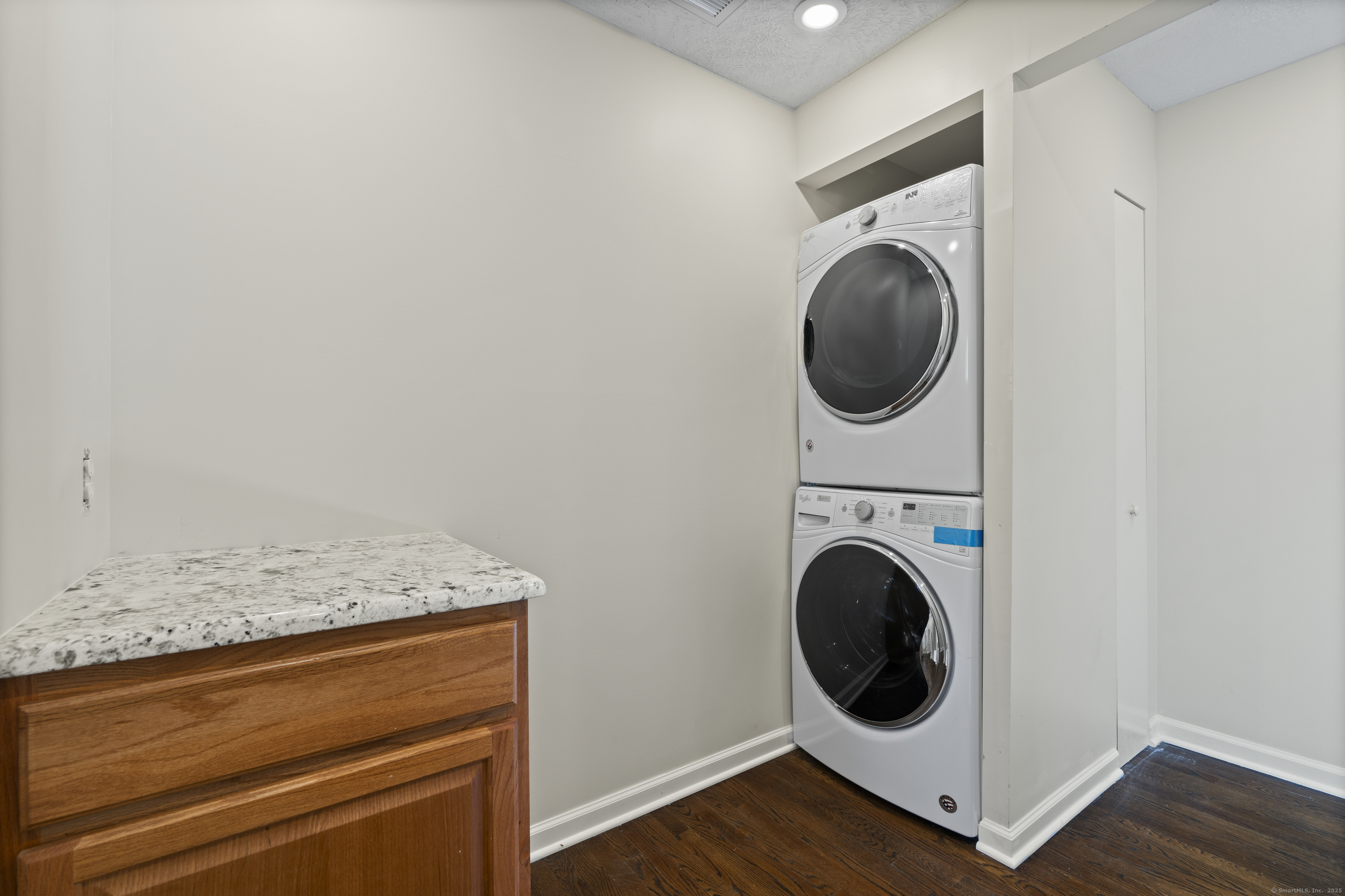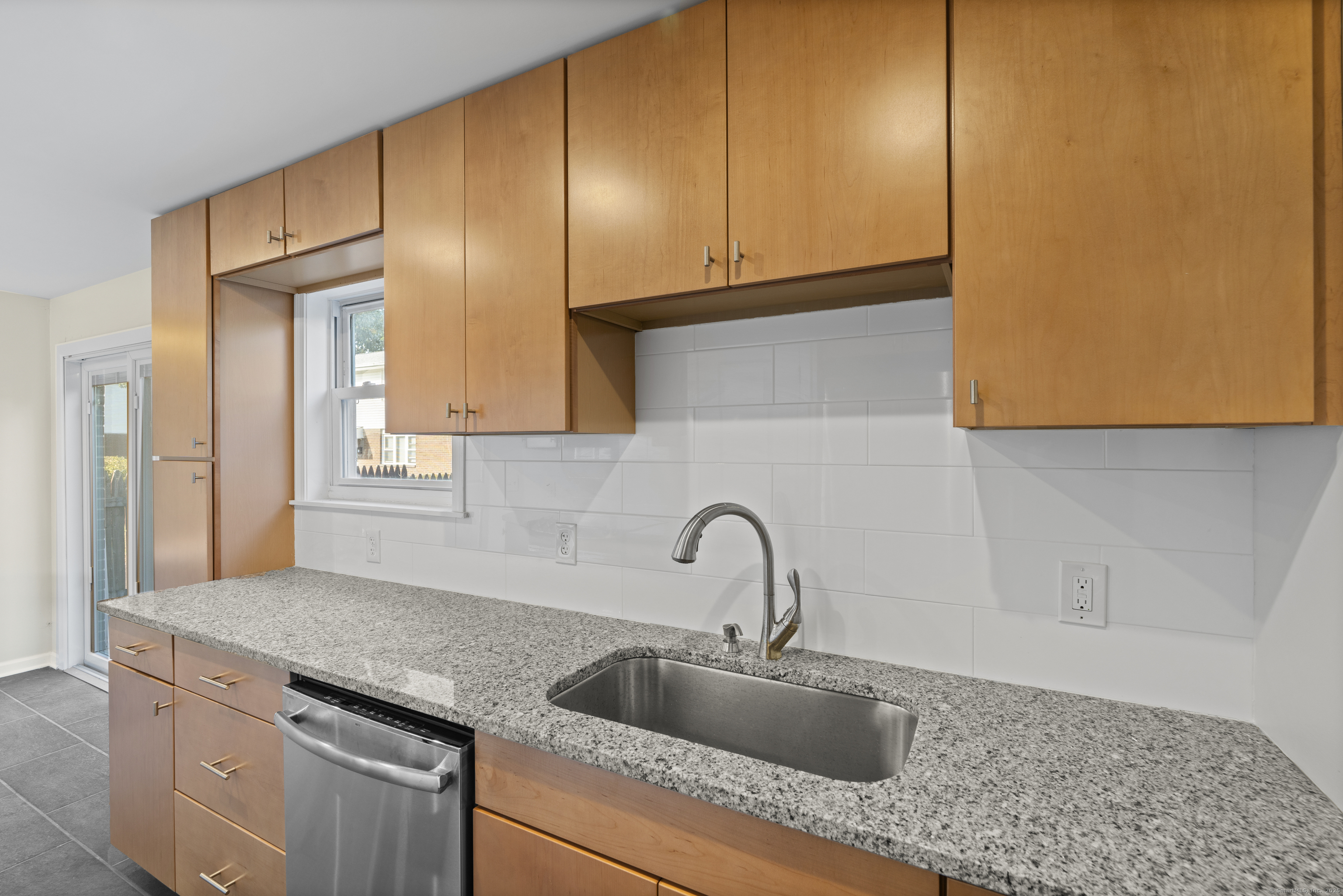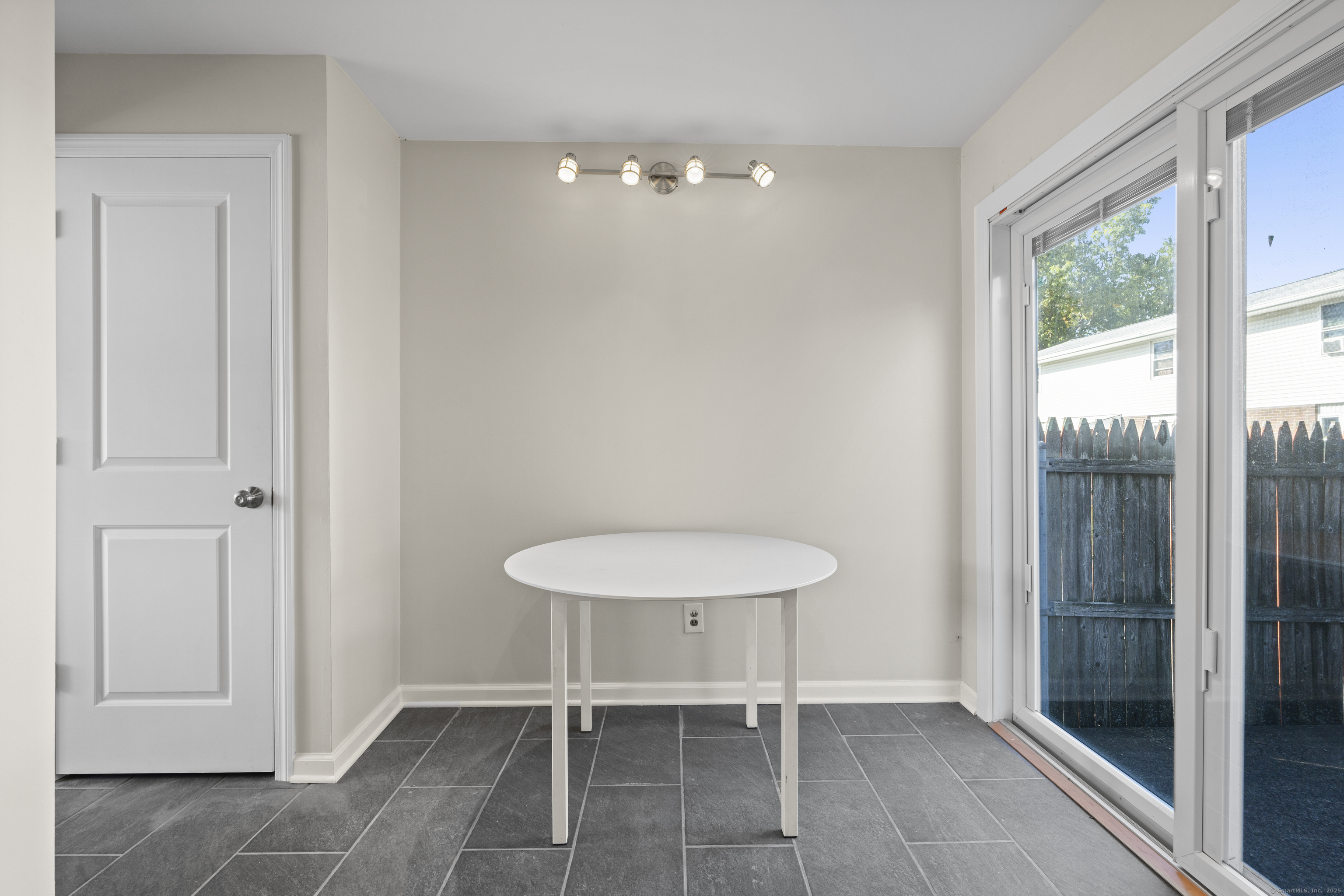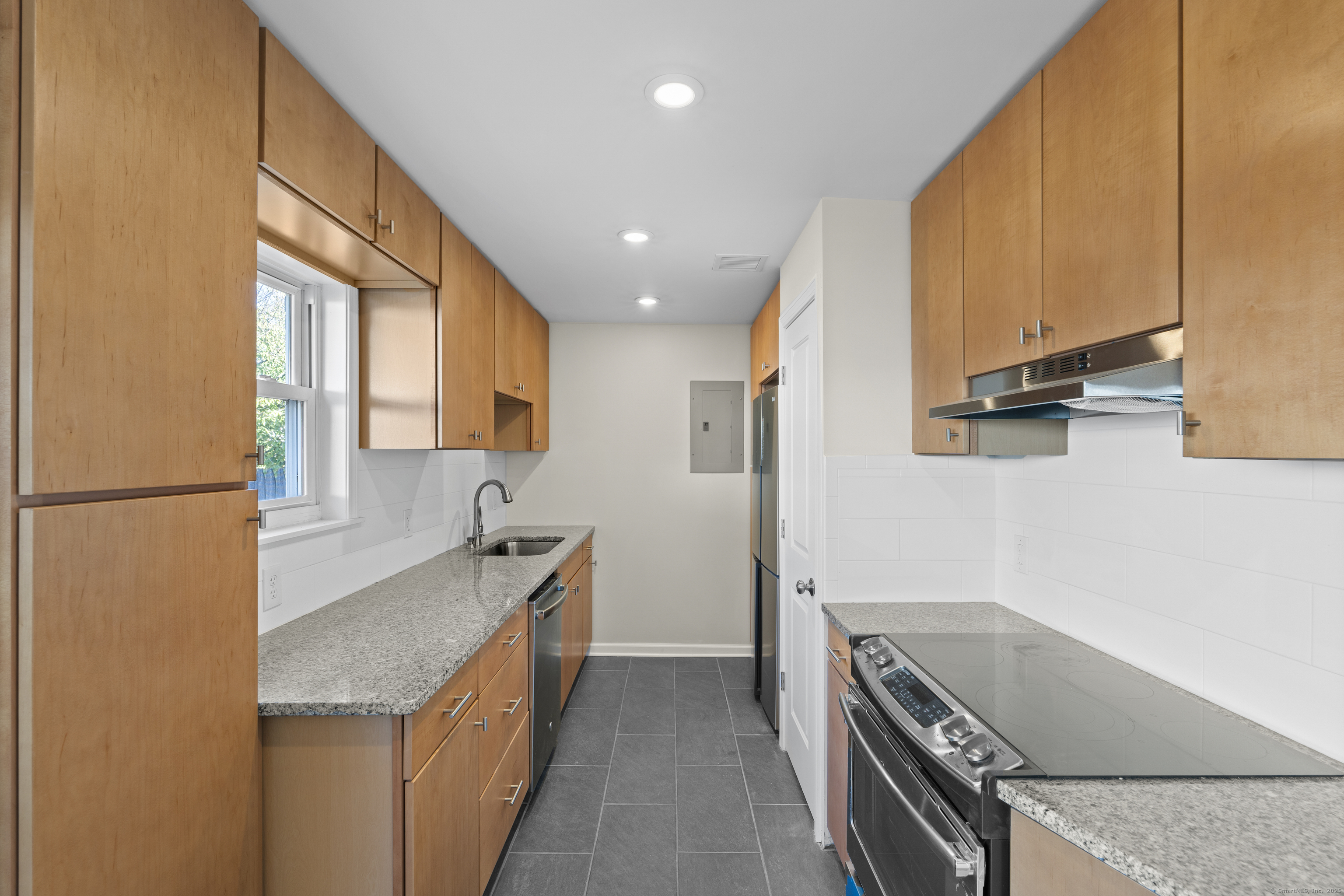 Welcome home to this beautifully renovated end unit townhouse-style condo in a quiet, well-maintained complex of just 33 units. Every inch has been updated for modern comfort and style. The first level features all-new tile flooring, fresh paint, modern lighting, and a bright, open living area with a granite-topped breakfast bar. The kitchen is a showstopper - complete with brand new cabinets, granite countertops, stainless steel appliances, and a sunny eat-in area. Sliders lead to your private, fenced-in patio shaded by a beautiful persimmon tree - perfect for morning coffee or evening relaxation. An updated half bath completes the main level. Upstairs, you'll find rich dark hardwood floors, new lighting, and fresh paint throughout. There are two spacious bedrooms, including one with a large walk-in closet, and an updated full bath with modern finishes. The laundry area is conveniently located upstairs and includes a brand new washer/dryer and built-in cabinetry for extra storage. Additional highlights include central air conditioning (a rare find in the complex!) Enjoy designated parking, an in-ground pool, and close proximity to shopping, restaurants, highways, Yale University, & more! Move right in and enjoy turnkey living!
