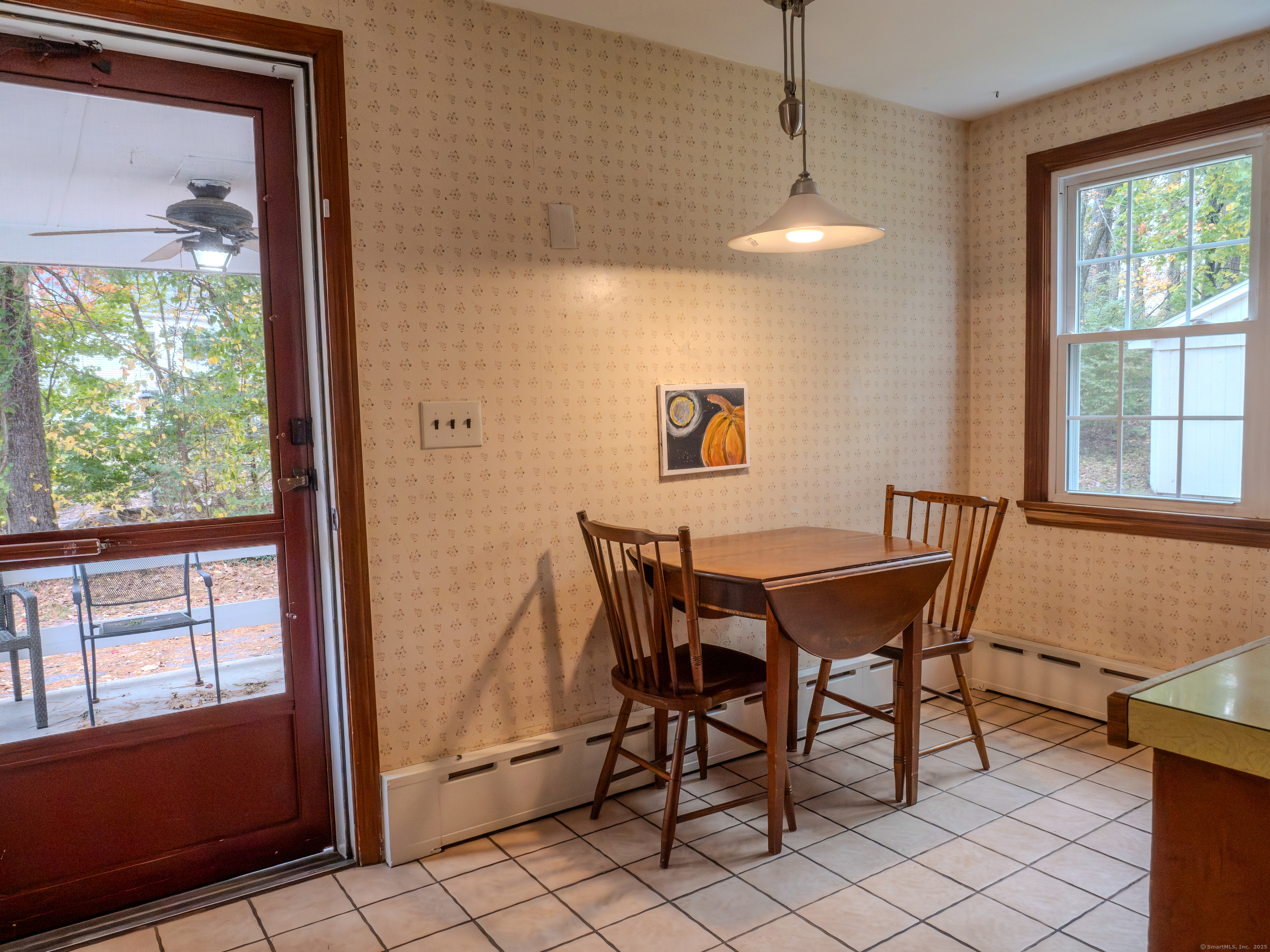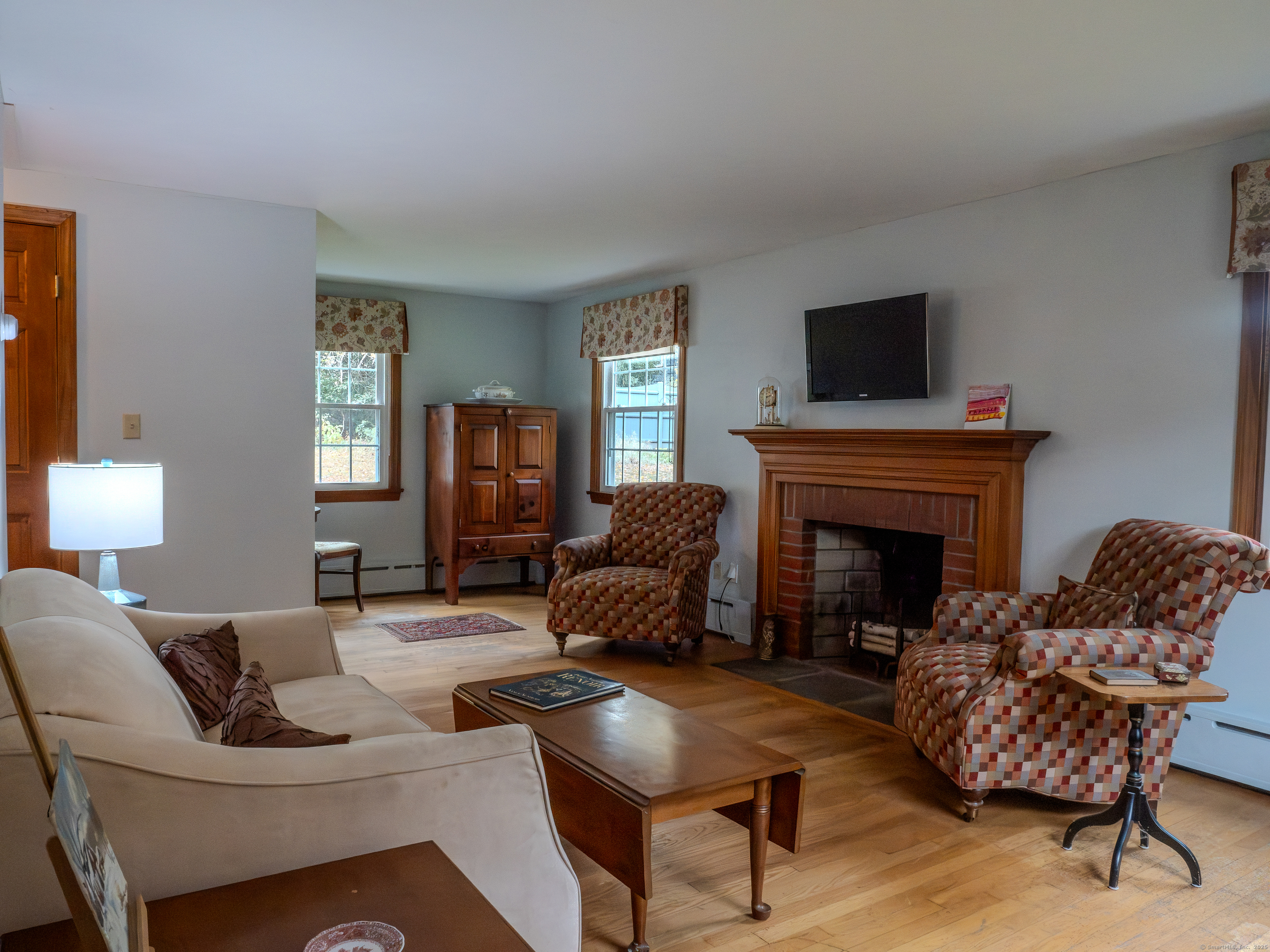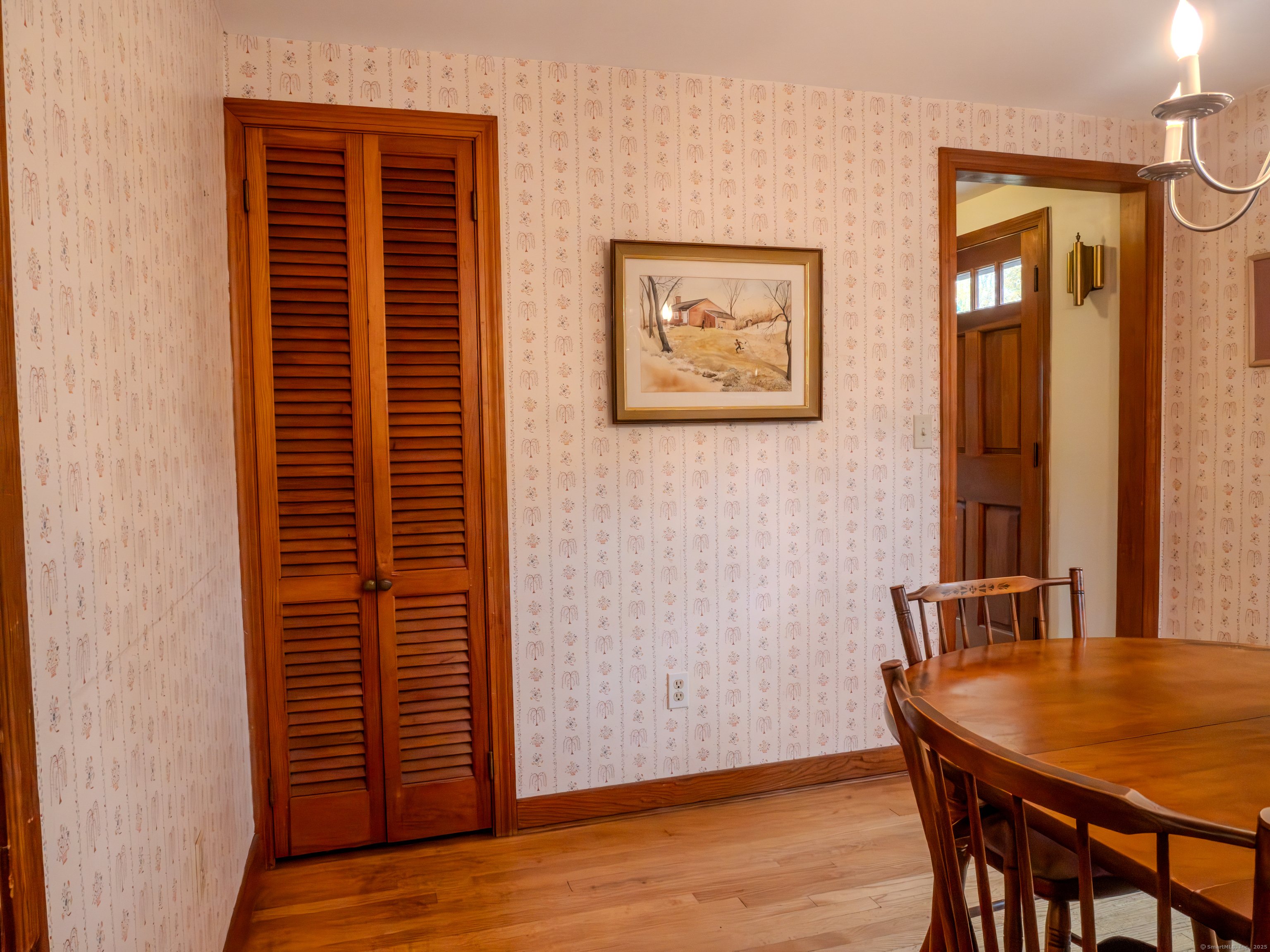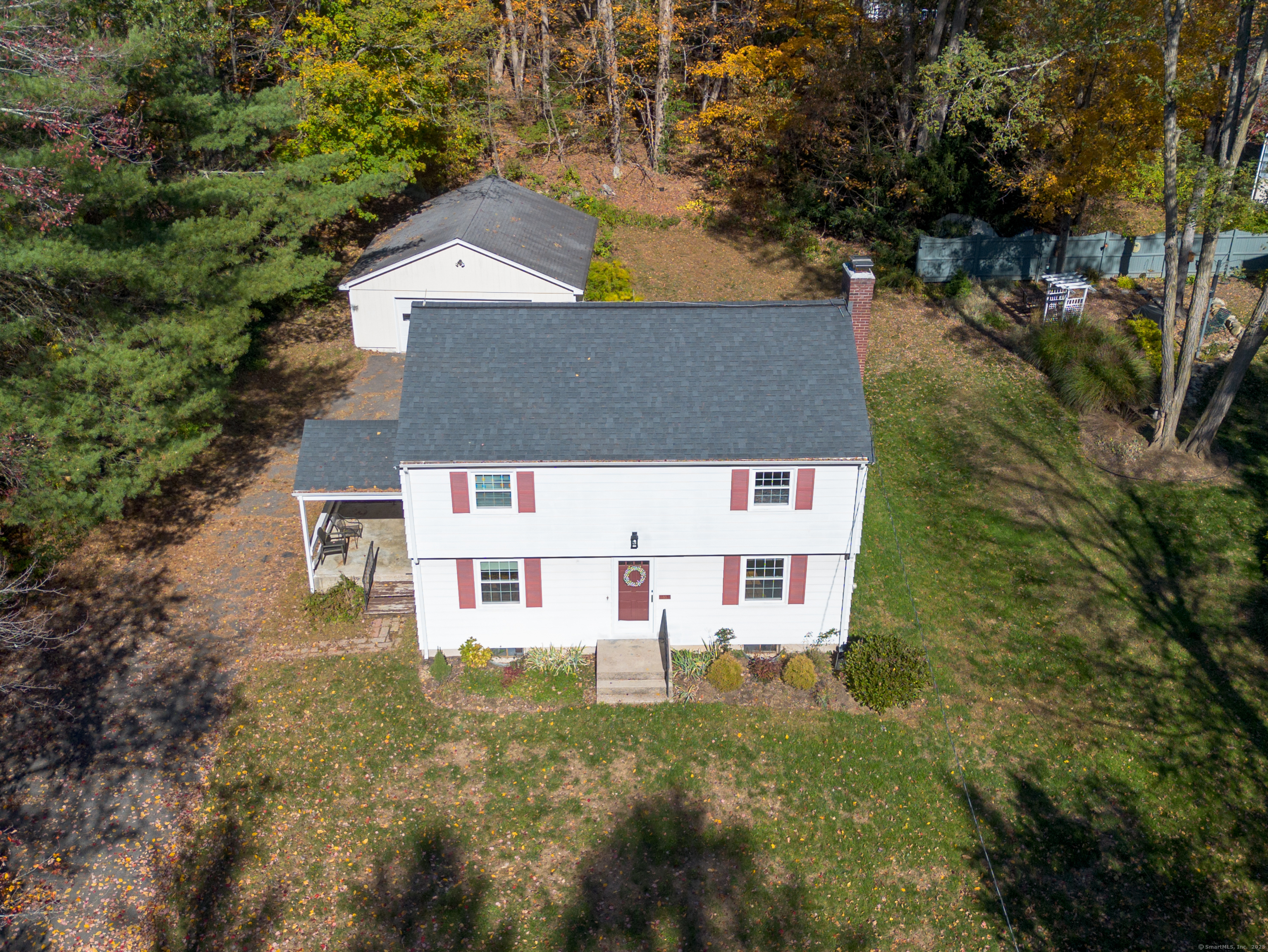 Welcome home to this charming colonial set on a serene lightly wooded private lot. Enjoy the weather on the covered porch or the nice private backyard. The interior of the home features a floorpan great for entertaining and hardwood flooring in the living room, dining room, and all 4 bedrooms. On the main level you will find a large living room with a cozy brick fireplace as well as a nice sized dining room right off the kitchen and a full bath. The kitchen features built in shelving as well as a sunny dining area and access to the covered porch as well as a nostalgic dutch door. The upper level hosts the spacious and sun filled primary bedroom. Three additional bedrooms and a full bath complete this level. The unfinished lower level with an additional fireplace has ample storage and is equipped with a generator hook up making it convenient to add a generator in the future. Additional space in the walk up attic offers many possibilities. Huge detached garage with additional unfinished space. So much potential in this home...don't miss out on this opportunity to make it your own. Conveniently located to public/private schools, library, shops, dining, walking trails, Farmington River, interstates & more. Schedule a private tour today. Recent improvements and upgrades include Newer roof, furnace and windows. Home is being sold "As Is." A great opportunity to make this home your own and experience all the charm of Collinsville and the Farmington Valley.