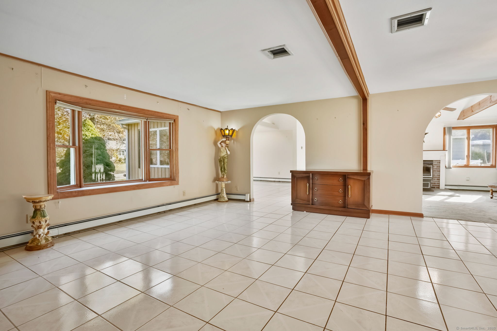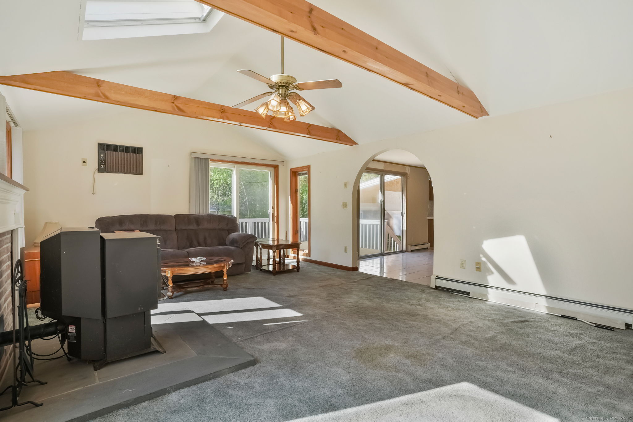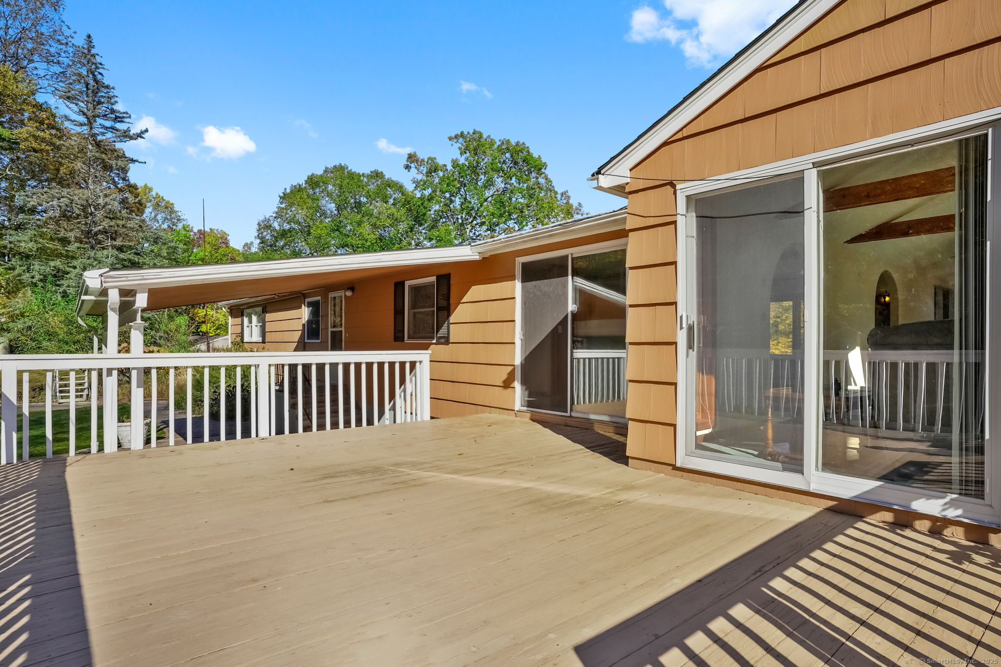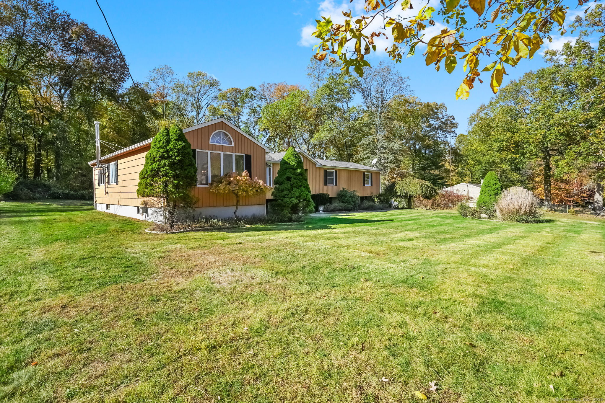 This custom-built RR, constructed by the original owners in 1971, is being offered for sale for the 1st time. Loc in one of Trumbull's most desirable neighborhoods-the Tashua section-close to schools, parks, shopping, restaurants, highways, & the Tashua Knolls Golf Course & Rec Center. The main level offers 7 rms, 3 bdrms, & 2 full baths w/ an open & flexible layout. A later addition expanded the living space to include a spacious DR & FR, both featuring cathedral ceilings, skylights, & tiled flooring. The FR also includes a SGD leading to an oversized rear deck overlooking a level, wooded, & private lot. This room features wall-to-wall carpeting & a wood-burning stove. The adjoining DR features 2 skylights filling the home w/ natural light. The formal LR at the front of the home features a large bay window & tile flooring. The galley-style kitchen connects to a larger dining area w/ sliders leading to the rear deck. All 3 bdrms on the main level are generous in size w/ good closet space, & the primary bdrm includes a full bath. The fin LL offers excellent potential & addl living space, including a kitchen area w/ oven/range & sink, a 1/2 bath, a 2nd wood-burning stove, w/w carpeting, & storage rms. Addl features include C/A, a 2-car under house gar, a det 2-car garage, & a backyard shed. The lot itself is one of the property's standout features. While the home does require updating & attn to deferred maintenance, it presents an outstanding opportunity to personalize.