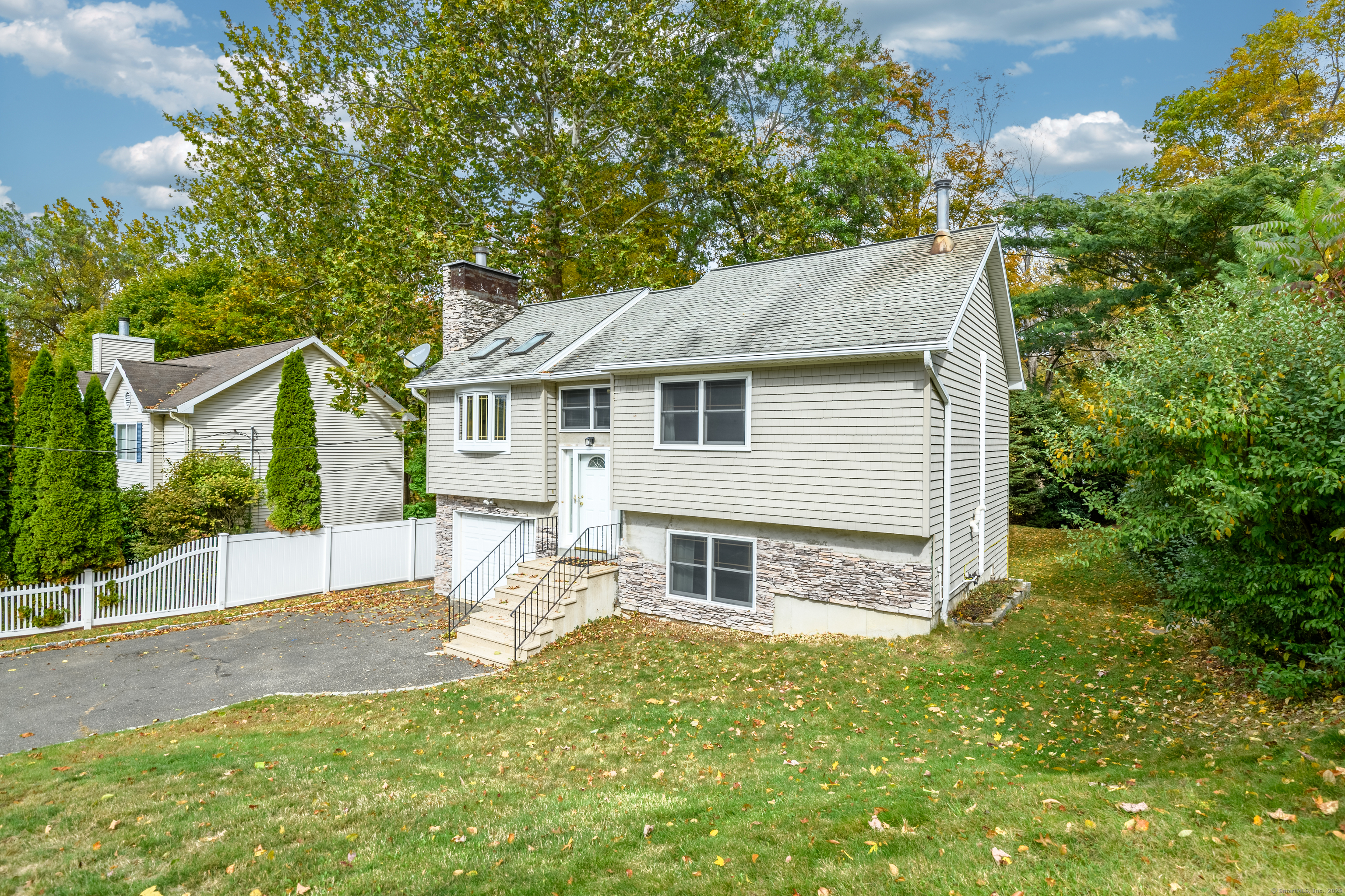 ADORABLE AND AFFORDABLE raised ranch home with 3 beds/2 full baths is manageable in size, easy on the eyes and in a perfect commuter location! 1,300+ square feet of living space, lots of updates and upgrades throughout. Located in a quiet cul-de-sac neighborhood of cute, well-maintained homes but directly adjacent to Route 42 just 2 minutes from Route 8 North or South. Lovely curb appeal, set back from the road with plenty of driveway parking and a big, level yard for entertaining, pets and safe play. Inside, it's all bright and airy, clean and cheerful. Natural light pours in from skylights (with blinds) while vaulted ceilings and gleaming hardwood floors create a spacious and uplifting vibe! Fully updated kitchen and baths absolutely sparkle. Appliances, vanities, fixtures and floors all impress and show a tasteful elegance. Walk-in closets and ceiling fans in all 3 beds! The 3rd bed is on the lower level along with a full bath and family room with walkout to the back yard, making this home an ideal candidate for an in-law setup! Energy-efficiency comes from a propane fired combination boiler/tankless water heater, Split System A/C with supplemental heating, high-quality Pella windows and extra insulation! Dining area walks out to the big 18X15 deck where you can take in the beauty and privacy of your pretty and level yard. Great parks and outdoor recreation here in Beacon Falls, plus Region 16 Schools, fantastic Route 8/84/63/69/42 commute!