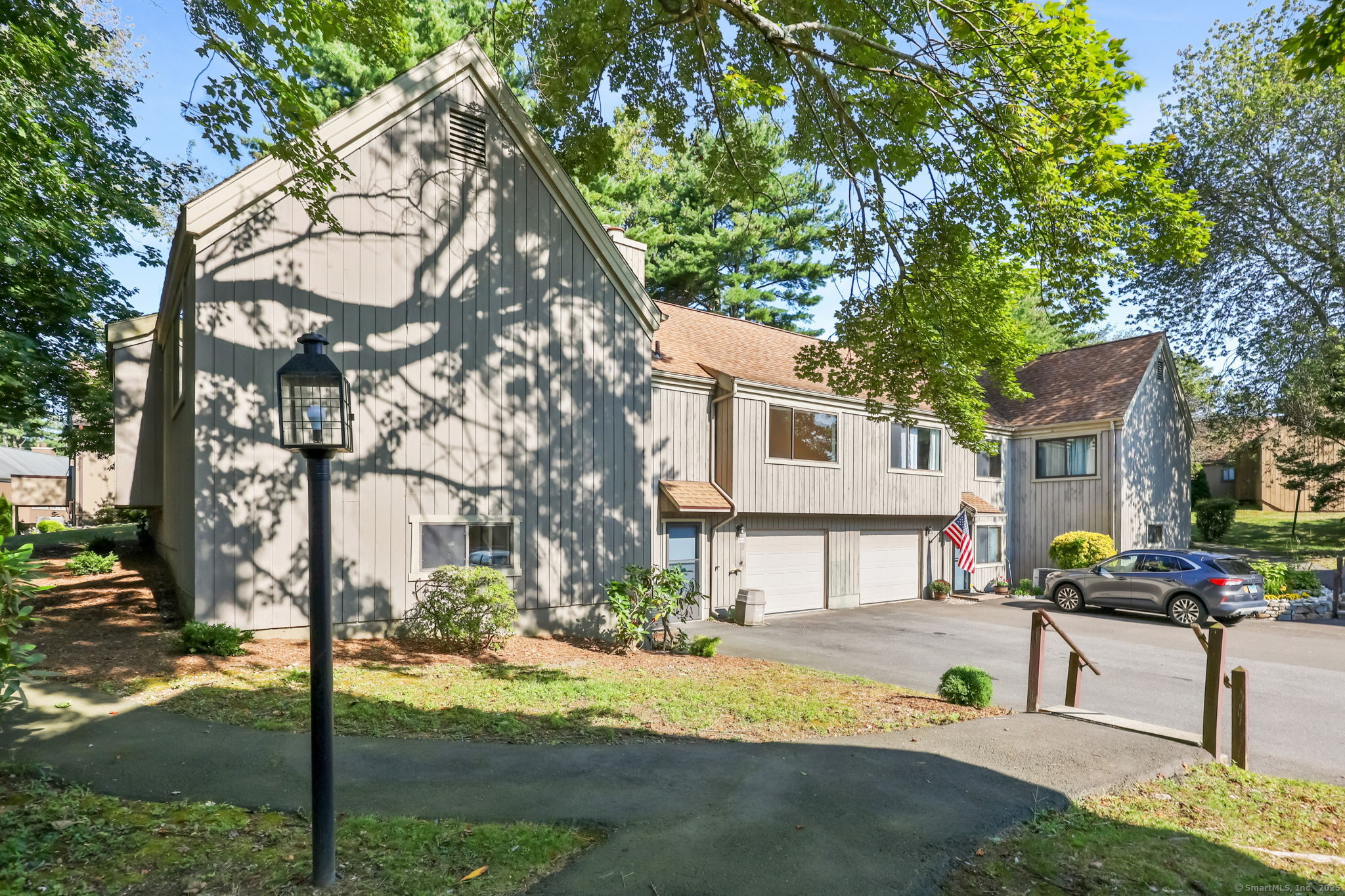 Welcome to this charming Wolcott style Condo in the coveted Oronoque Village. As part of the North Trail complex, you'll join an acclaimed active adult community and experience a wonderful, resort-like atmosphere. Your new home is nestled in a peaceful cul-de-sac, offering a serene escape. Step inside to an open living and dining space, enhanced by a high vaulted ceiling, a warm fireplace and stunning white oak flooring throughout the main level. The kitchen is equipped with newer stainless-steel appliances and a sunny breakfast nook. The main bedroom suite is a comfortable haven with its own full bathroom and two spacious walk-in closets. A second bedroom, adjacent to a completely updated main bathroom is perfect for guests. The versatile finished basement offers endless possibilities for an entertainment room, home office, or private guest quarters. This lower level is complete with a beautifully renovated bathroom, abundant storage, direct garage access, and a convenient laundry area. The community is your playground, with swimming pools, a clubhouse, tennis courts, a gym, gardening areas, a golf course, and guest parking. You are just moments away from first-rate restaurants and shopping, with convenient travel via Route 8, the Merritt Parkway, I-95, and the local train station.
