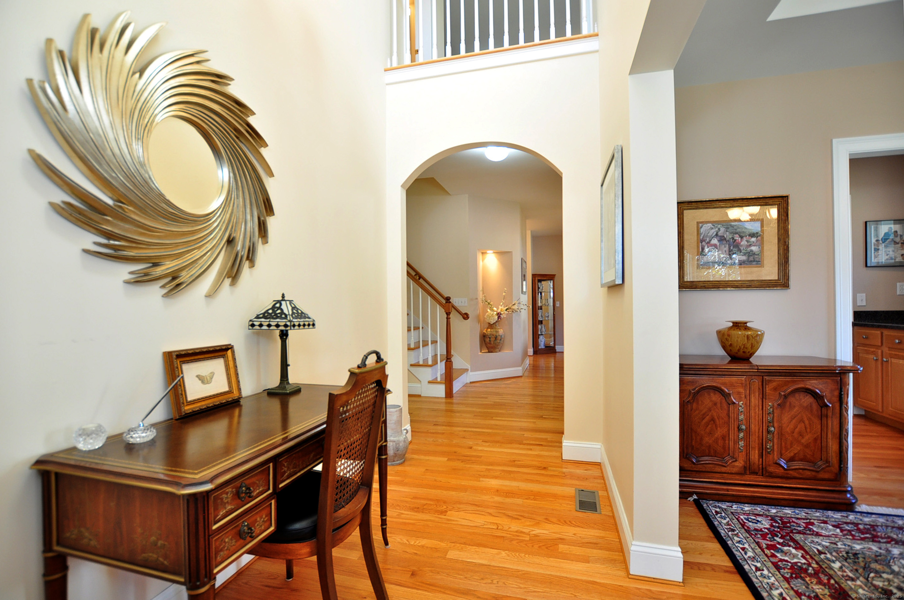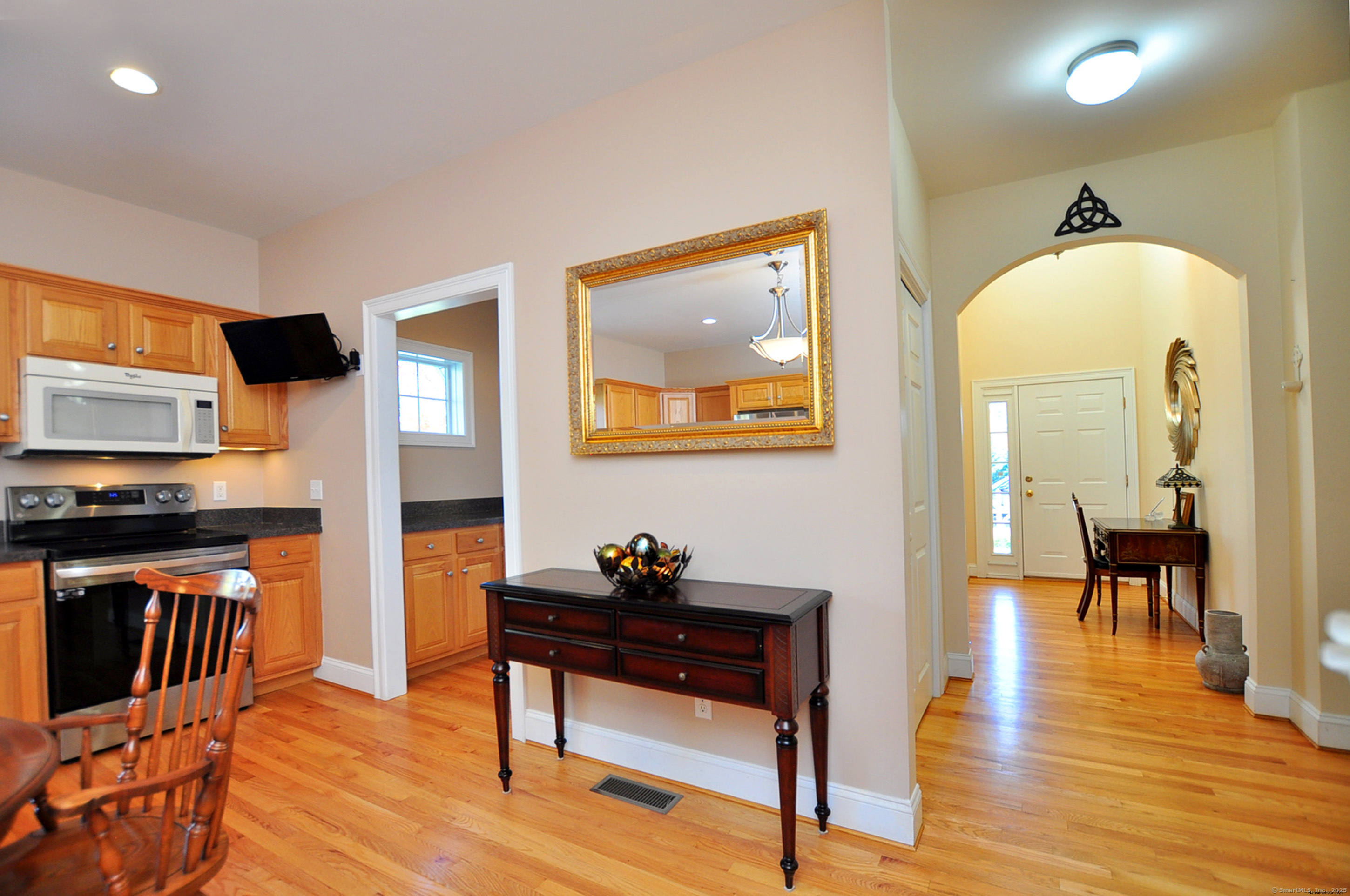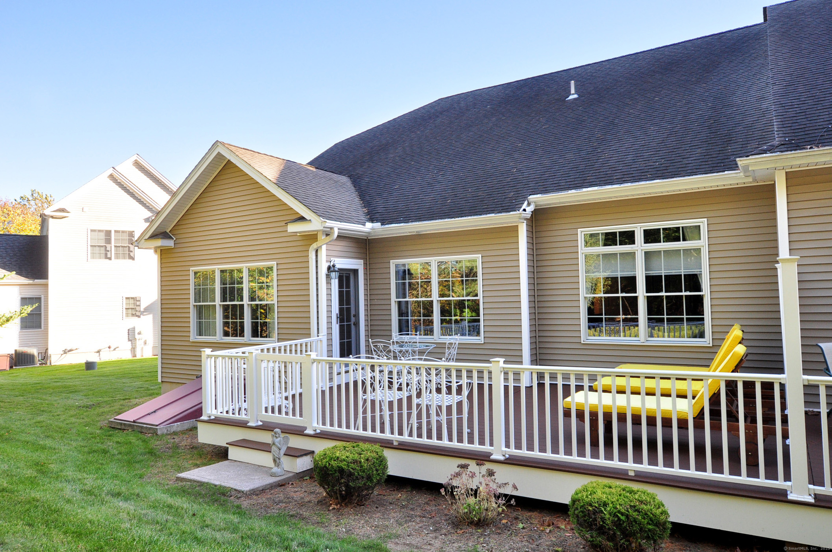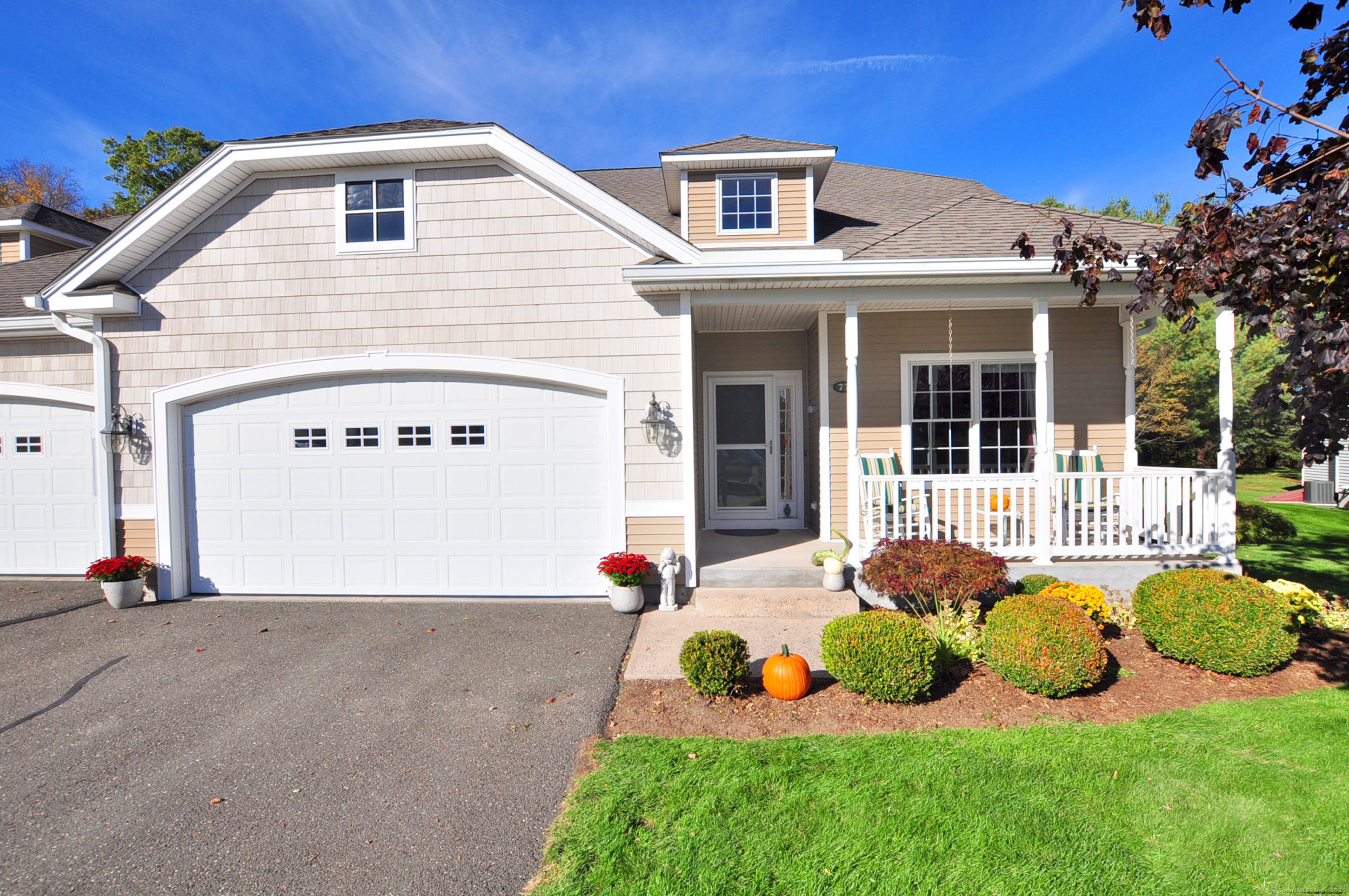 Beautiful Custom One-Owner Home in the Highly Desirable Hunt Glen Community. Welcome to this sunny, spacious, and beautifully customized home in Granby's premier active adult neighborhood. Thoughtfully crafted by the original owner in collaboration with the builder, it features expanded square footage, elegant tray ceilings, and a flexible layout designed for both comfort and entertaining. With 2,539 sq. ft., this inviting residence offers 2-3 bedrooms, Perfectly positioned on a peaceful lot, it showcases lovely landscaping, a welcoming front porch, and an easy, low-maintenance lifestyle. Inside, you'll find a spacious dining room with a tray ceiling and hardwood floors, and a chef's kitchen boasting abundant cabinetry, generous counter space, and newer stainless-steel appliances. The kitchen flows seamlessly into a cathedral-ceiling living room with a gas fireplace and access to a newer oversized Trex deck-perfect for relaxing or entertaining. The first-floor primary suite features a walk-in closet and full bath with double sinks and a shower. A guest bedroom, half bath, and first-floor laundry complete the main level (gleaming hardwood throughout except guest bedroom). Upstairs, enjoy a large family room, office, half bath, and walk-in closet, providing flexible space for guests, hobbies, or a home office. The full basement with hatchway and updated furnace and A/C offers excellent storage and future possibilities. The community clubhouse