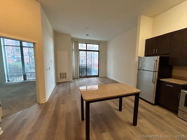 Vault apartments is a new smoke free community situated directly in the center of Harbor Point's historical Yale and Towne District. The complex is within walking distance to many shops and restaurants and steps from the Stamford train station! Vault apartments promises a distinct urban lifestyle with a resort style heated pool, fire pits, bbq pavillions, state of the art fitness center, dog park, and reserved garage parking. This one bedroom unit is gracefully appointed w/ stainless steel appliances- gas stove, dishwasher, microwave, granite countertops, sunfilled living area, large bedroom w/ oversized closet, luxurious bathroom, washer/dryer, central air conditioning, gleaming hardwood floors, fresh paint, low security deposit! Walk to train, shops, nightlife! Minutes to highways and beaches! Pet ok- SHORT/LONG TERM LEASES AVAILABLE