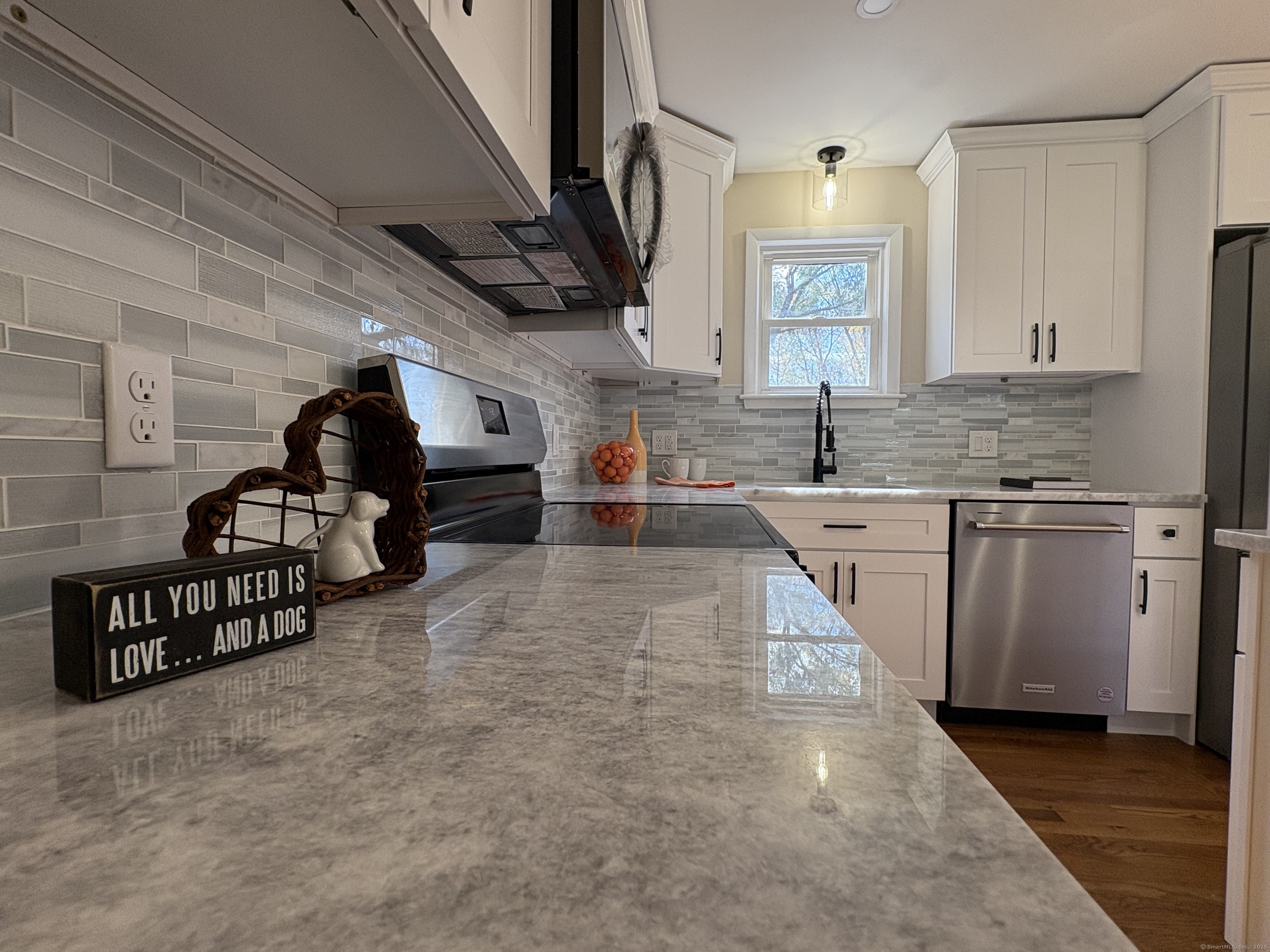 Charm and modern comfort come together in this beautifully renovated 3BR, 2BA home set on nearly an acre along a quiet country road in Woodbury. The inviting main level features a cozy living room with a fireplace, a spacious first-floor bedroom, and a full bath-perfect for guests or one-level living. A newly updated kitchen opens to the dining area and leads directly to a brand-new deck overlooking a private, level backyard with distant pond and mountain views. The yard has been cleared, seeded, and extends to a peaceful meadow that backs to a wooded preserve. The recent expansion includes an oversized two-car garage, extra deep with high ceilings offering loft or workshop potential. The full basement offers tall ceilings, ample storage, and rear exterior access to the leveled backyard. Adjacent to the basement door is an additional versatile room ideal for outdoor storage, tools, or a creative workspace. Move-in ready and turn-key, this home blends New England charm with thoughtful updates and serene surroundings that will certainly delight everyone who walks through the door of this one of a kind home situated on an extremely private lot. Come see it and don't miss this opportunity to own an oasis in Woodbury. Added highlights include a new furnace (2025), new septic tank (2025), newer whole-house propane generator, and a roof approximately 10 years old.
