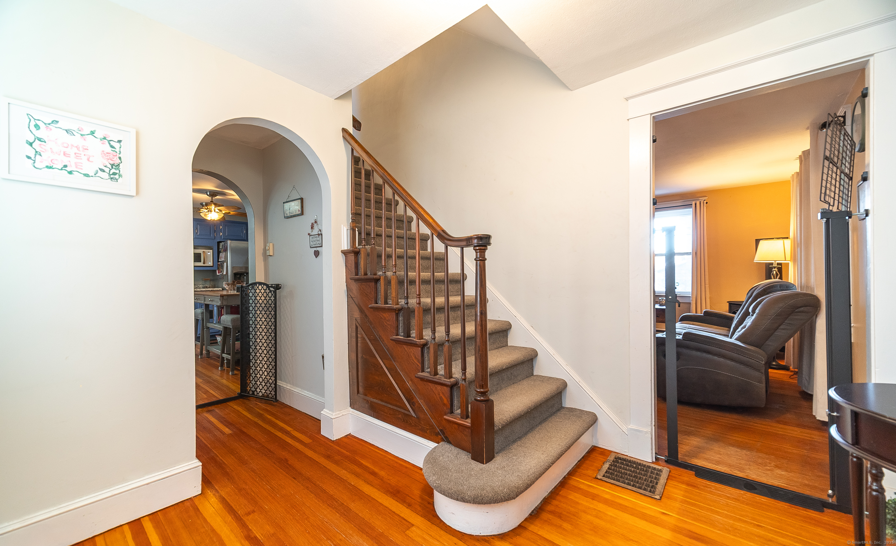 Perfect family home with fenced in backyard! Home has unique features such as arch doorway that bring so much character and charm to this property. Living room features a gas burning stove the enjoy on a perfect cold day watching a movie. All hardwood floors throughout. Three bedrooms one and half baths. The home includes partial finish lower level that you can utilize as the family room or fourth bedroom. Cozy three season porch off the front. An oversize two car garage that is detached.