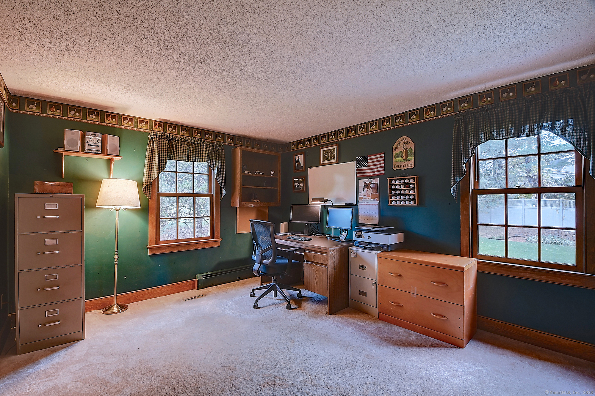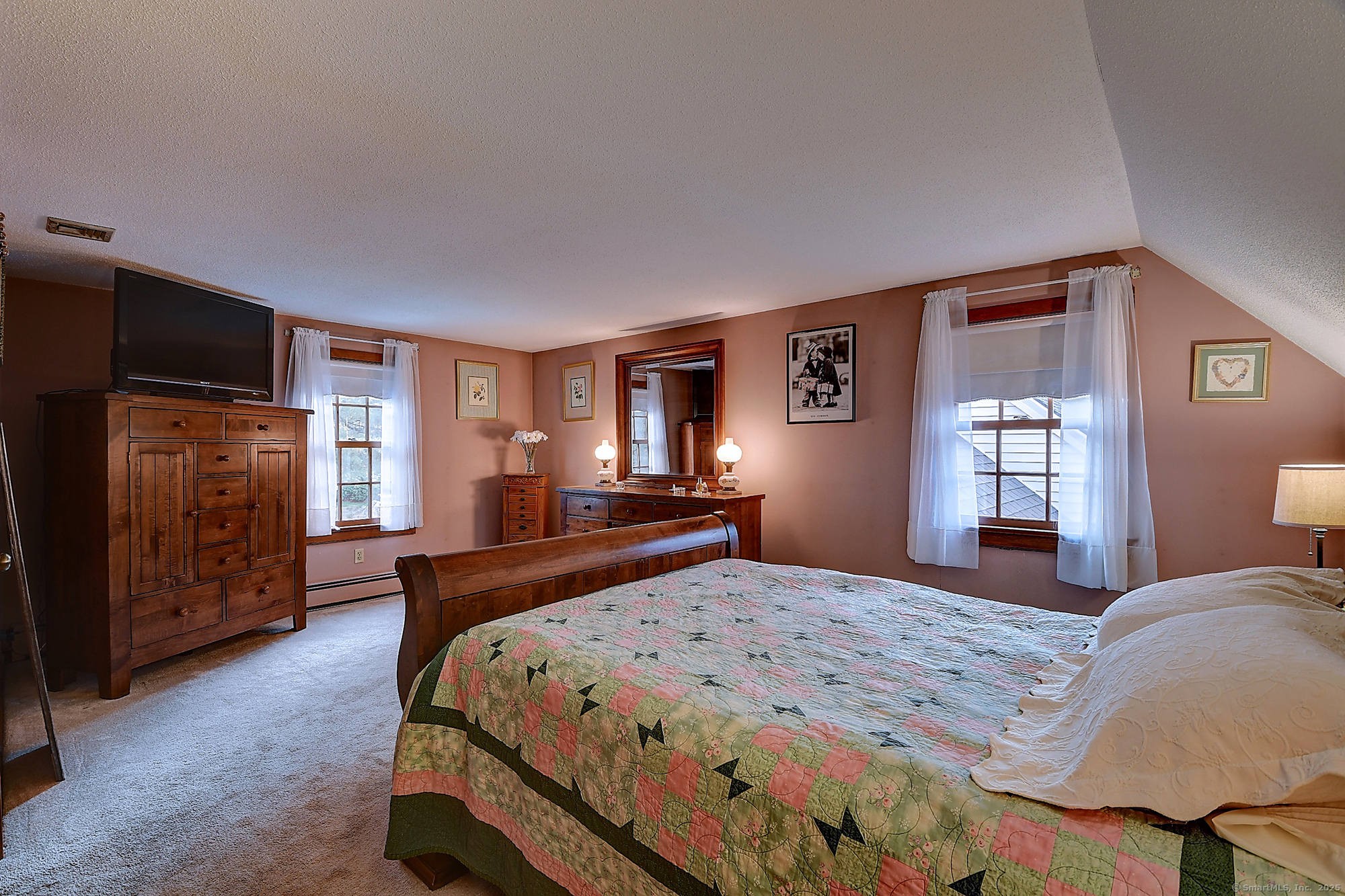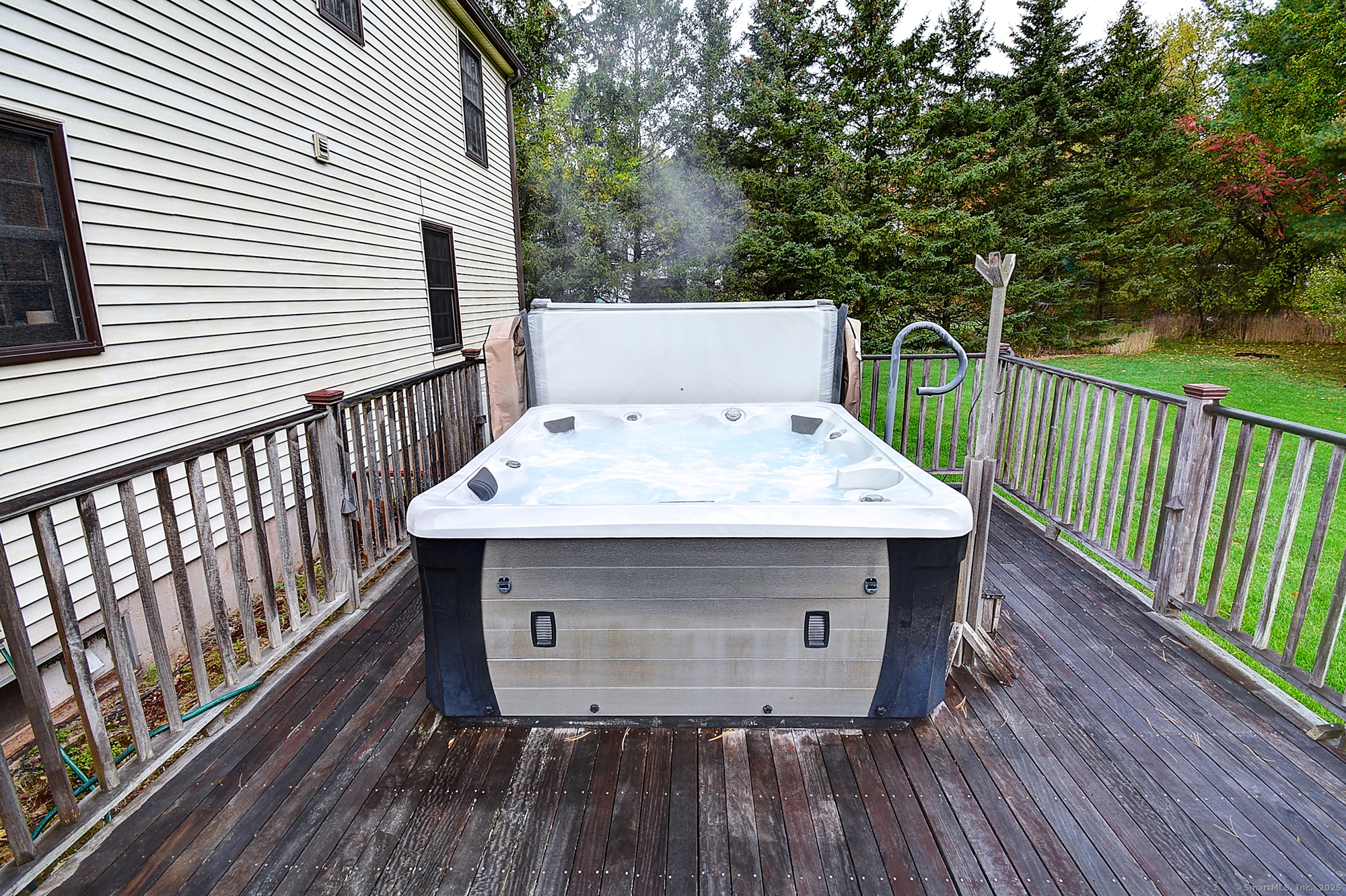 *Multiple Offers - Highest & Best by 10am Monday 10/27* Surrounded by the charm of a quaint New England town, 4 Blueberry Place fits perfectly into the scene of the seasons! Nestled on a flat lot in a peaceful cul-de-sac, this Saltbox Cape is a rare find. The main level offers a cozy Living Room, a Dining Room which is open to a spacious Kitchen with breakfast bar, and a Family Room with wood-burning Fireplace insert. The main level Bedroom and Full Bath provide comfort and functionality for all. Upstairs, you'll be delighted to find two additional spacious Bedrooms and a convenient second Full Bath with a double sink vanity. The lower level features a partially Finished Basement with bar area, offering a great space to enjoy game night. Appreciate year-round comfort with Central Air, and unwind in the Hot Tub set in your private backyard retreat! Additional amenities include an attached 2 Car Garage, Generator hookup, Irrigation system, Invisible dog fence, and a Shed for additional storage. Whether it's scarecrows, snowflakes, or sunflowers, your favorite seasons will be those you celebrate at home. *Multiple Offers - Highest & Best by 10am Monday 10/27*