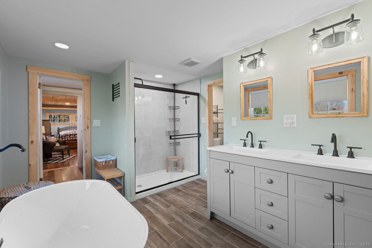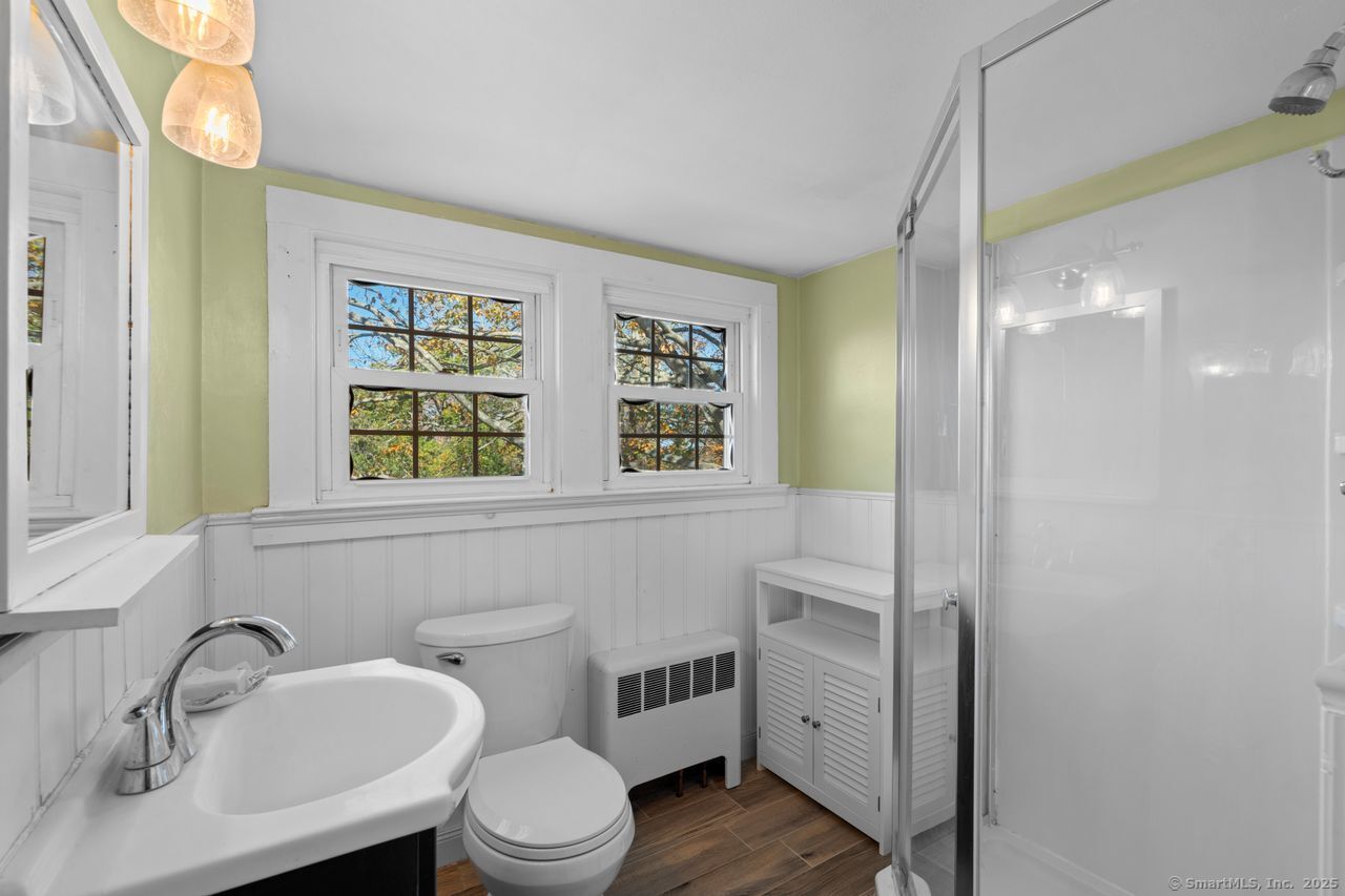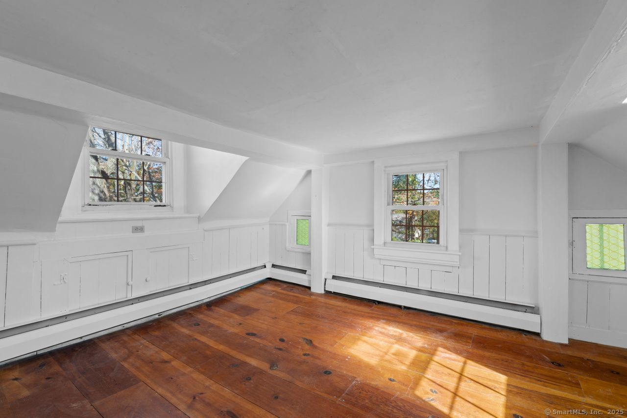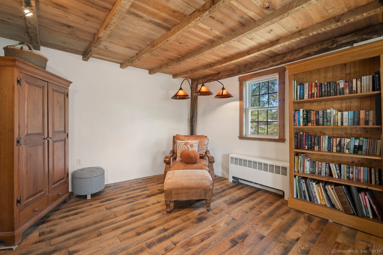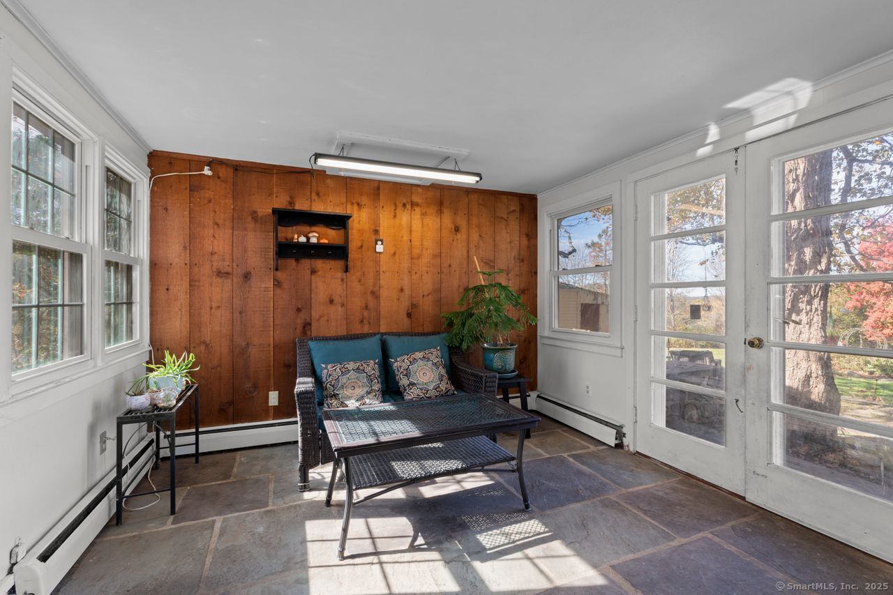 Prepare to be amazed! This circa 1740 Cape has been beautifully renovated and thoughtfully transformed while preserving all the warmth and charm that New Englanders cherish in an antique home. The central chimney anchors the home with three working fireplaces, including one with a wood stove. The kitchen features granite countertops, stainless steel appliances (including a gas range), a breakfast bar for casual meals, and a custom coffee bar topped with a concrete counter. The dining area showcases hardwood floors and its own working fireplace, creating the perfect setting for cozy gatherings. Both the living room and study boast hickory floors, exposed beams, and fireplaces that make each space feel inviting and comfortable. The first-floor primary suite includes a walk-in closet and a luxurious full bath with a soaking tub, double sinks, and a tiled shower. A half bath and sunroom complete the main level. Upstairs, you'll find two additional bedrooms, a full bath, and a laundry room, along with several hallway closets, including a cedar closet, for added storage. Set on 2.4 level, fenced acres, the property offers a stone patio, garden area, chicken coop, and pasture-a true countryside retreat that blends historic character with modern comfort.