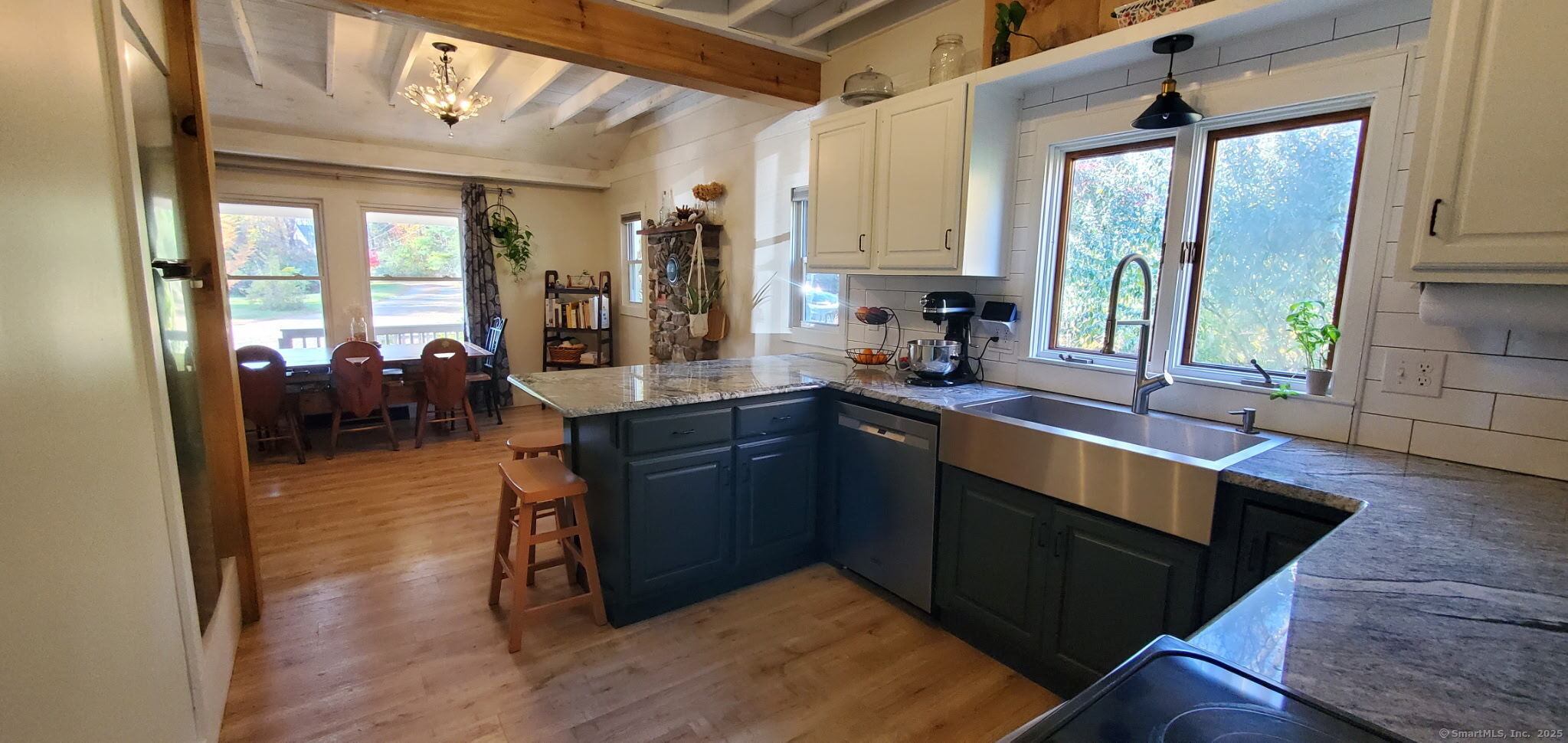 This Log sided, Cape/Colonial, home has had a complete renovation in the last 3 years. Starting with a 2022 complete addition including an oversized 2 car garage, this home features a new roof, new vinyl siding, exterior paint, new decking, new hybrid 80 gallon water heater and much more. The renovated kitchen with eating space features s/s appliances, along with granite counters, a large breakfast bar, pantry & subway tile backsplash along with exposed beams and vaulted ceiling. The large living room in the addition has a vaulted ceiling, plenty of light and a mini-split for heating & AC. The primary bedroom suite includes a complete wet room bathroom with jetted tub. There is an office/potential 4th bedroom as well on the first floor. On the second floor of the additional features 2 new bedrooms and a potential 1/2 bathroom. A walk-in attic over the garage has tons of finishable potential. The walk out basement features the second full bathroom, a rec room with heat, along with professionally installed water treatment system. 200 amp electrical, generator ready, new well pressure tank and much more. Additional photos to come but this is a must see home in a great location with privacy.