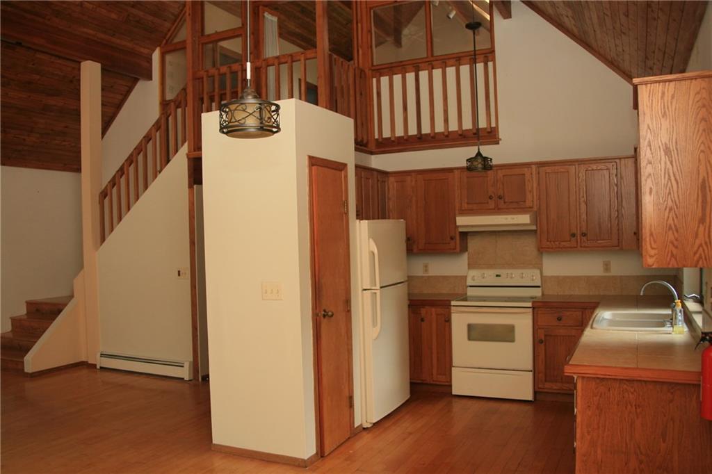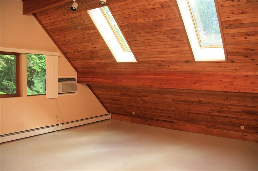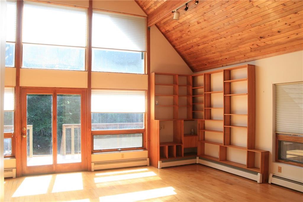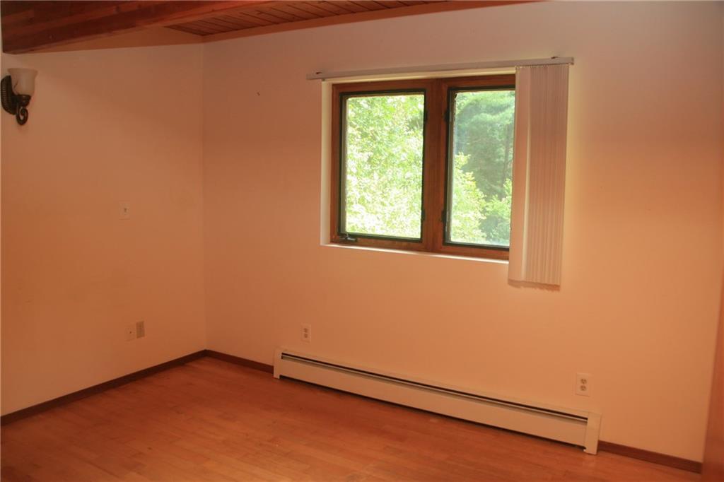 Private Chateau-Style home set back in the woods. This wonderful 4 bed, 2 bath cape features hardwood floors throughout almost every inch. Entering the property through the main door off of the wrap around deck with Trex decking, you enter the open and impressive living space. Living room to the left, dining area and kitchen to the right, the two-story windows and vaulted ceiling let in loads of light to highlight the impressive woodwork. Fully applianced kitchen, loads of built-ins in the living room, a fully renovated full bath, two spacious bedrooms and washer/dryer round out the reminder of the main level. Up the impressive staircase you'll find the master suite with full bath and walk-in closet. Downstairs you'll find the very large family room with hardwood floors and the passageway to the 4th bedroom with loft area. The utility room and 2 car garage complete the lower level. Minutes to UConn, ECSU, Windham Hospital and I-384 for easy commuting. Lawncare and snow removal included, Move-in Ready.