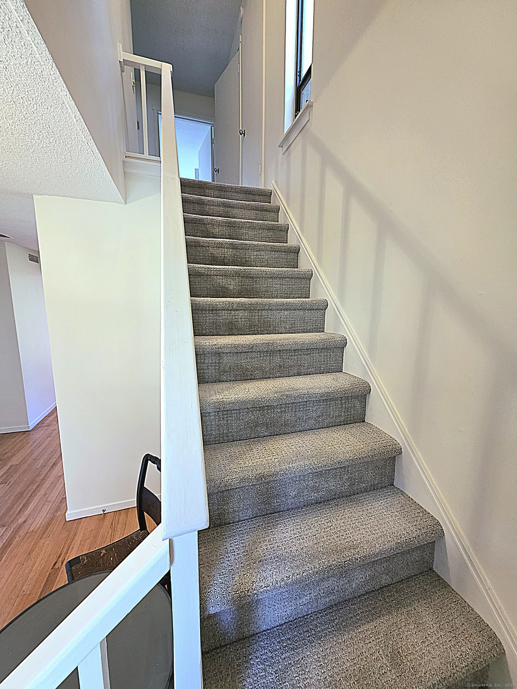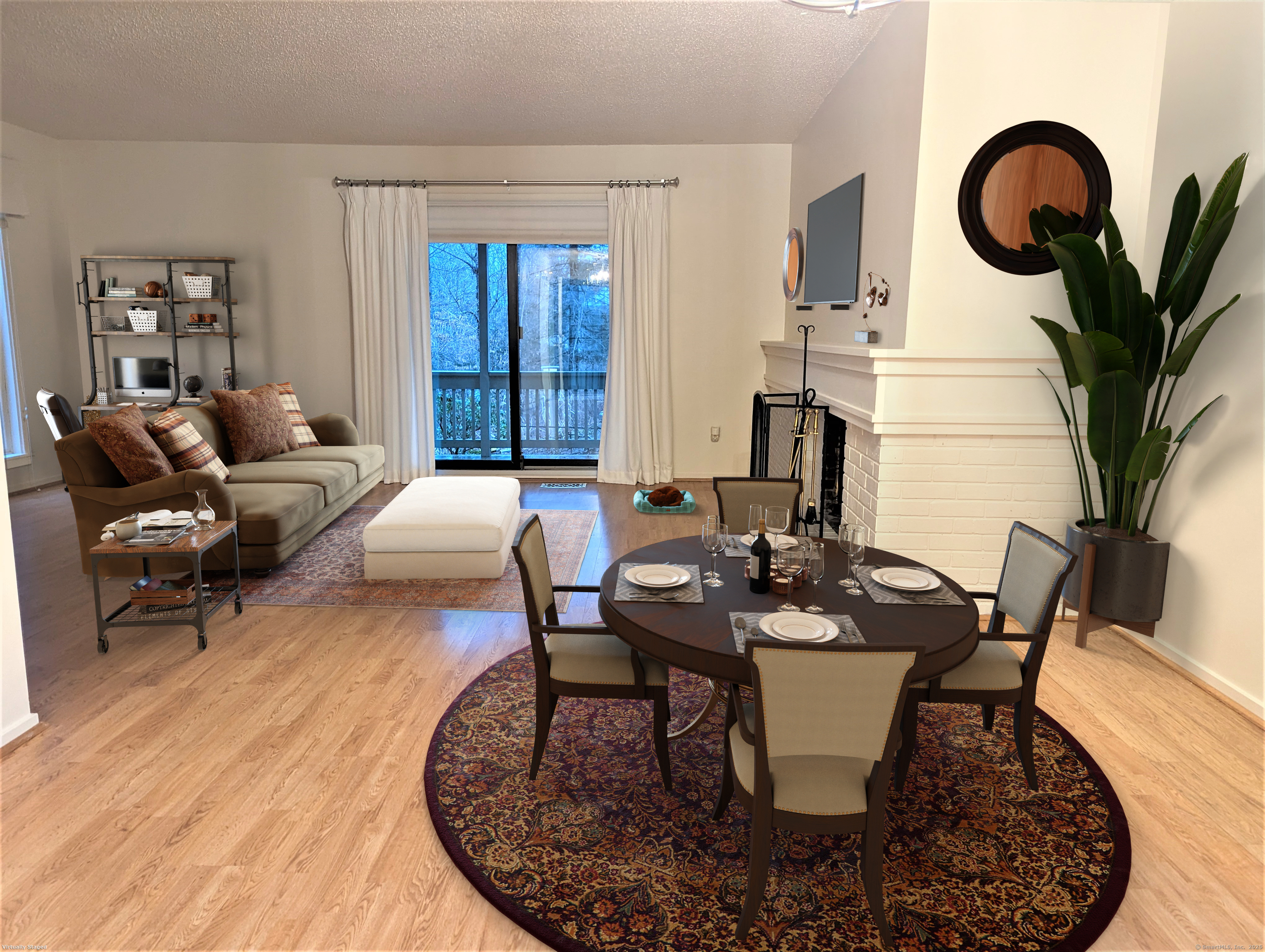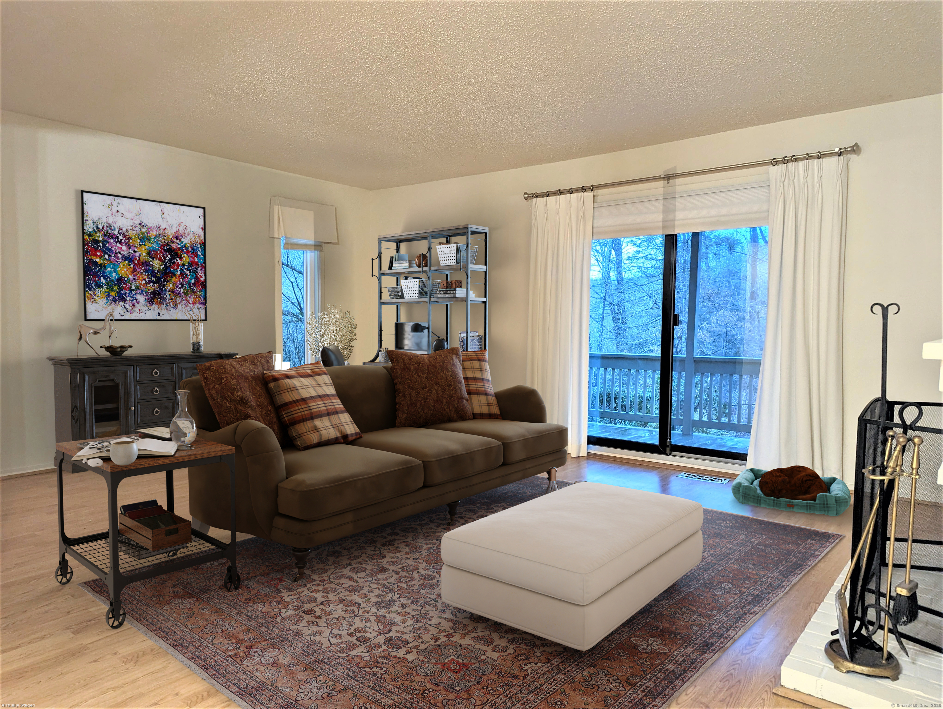 This bright and sunny New Englander style townhouse has a great location in Heritage Village with easy access in and out of the complex plus walking distance to most activity buildings and pools 1 and 2. While the condo has stairs, you also have your own private entrance, no one above or below you, and a real dining room that flows into the living room for easy entertaining. The 2 spacious bedrooms upstairs provide a quiet place to relax even if something's happening on the main level. Another popular feature of the New Englander is the double deck. The covered deck is accessible from the living room slider, while another deck above it, in the larger of the 2 bedrooms will feel like you're perched in a tree house; offering seasonal views of the golf course and a delightful place to relax. The powder room is tucked away for privacy while the wood burning fireplace provides a cozy place to curl up. Newly refinished hardwood floors on the main level. On the upstairs landing you'll find the 2 year old washer and dryer and an additional closet providing even more storage. Both bedrooms share the renovated full bath with a low step shower. NEW HEAT PUMP. End garage w/ storage locker. HOA includes Spectrum w/ premium channels & internet. 4 pools, clubs for all interests, tennis and pickleball courts and so much more here and in the nearby towns. Easy access to Route 84. 90 minutes to NYC, 2 hours to JFK. All residential buyers pay a one time fee of $5000 to HVF at closing.