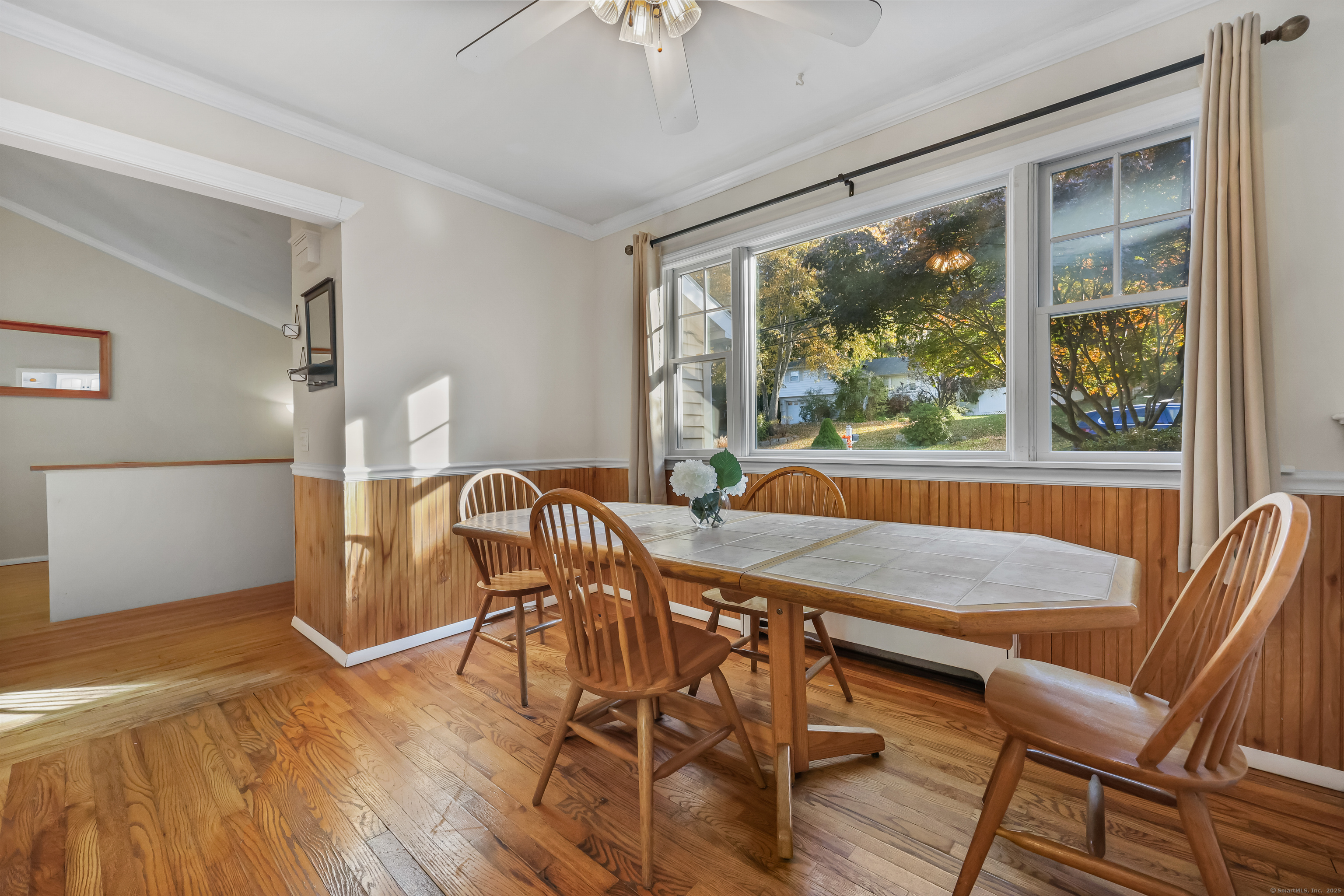 HIGHEST AND BEST OFFERS by 6 pm Tuesday, November 4th. Welcome to this gem of a home that has an incredible sense of balance. Located in the sought-after Mid-Ridges neighborhood, it has an inviting front yard, 3+ bdrms, 2 1/2 baths, a large deck with a hot tub and a flowing back yard. Entry is from a versatile front porch which leads into a large sunken Living Rm, great for family gatherings. It boasts a 12 ft ceiling, a gas fplc, and hdwd floors/crown moldings which are found throughout the home. The kitchen offers a breakfast bar, SS appliances and white cabinetry. Off both rooms is a sunlit Formal DR with a picture window and built ins. The UL includes 2 ample bdrms, a full bath, attic storage, and a Primary with an updated en-suite. The LL has multiple rooms including one with its own half bath that could be a 4th bdrm/office. Another room offers the same possibilities and there is a nook for a small gym. The FR is here as well with its own gas fplc. Through French doors is the deck, also perfect for family gatherings. The deck has a newer hot tub, and multiple canopies. The level back yard has a designated firepit area, fencing, and a shed. For those with a green thumb, there is a full-sun garden area. The bsmt includes a W/D, a workbench, storage and is generally a blank slate for future endeavors. A one car garage has dropdown stairs for extra storage. The electrical bill is greatly reduced by 48 Solar Panels. Estate Sale, being sold "as-is."