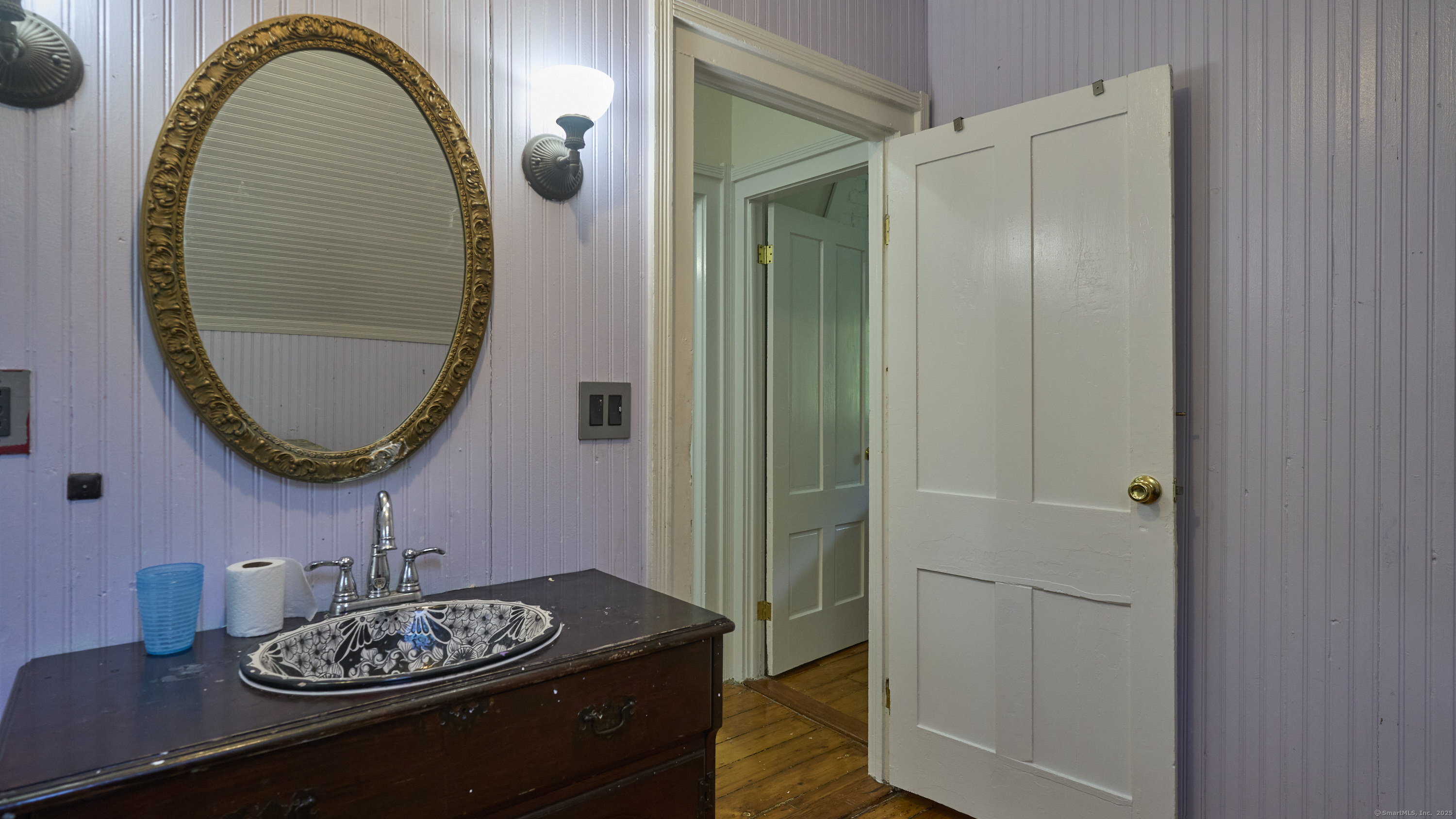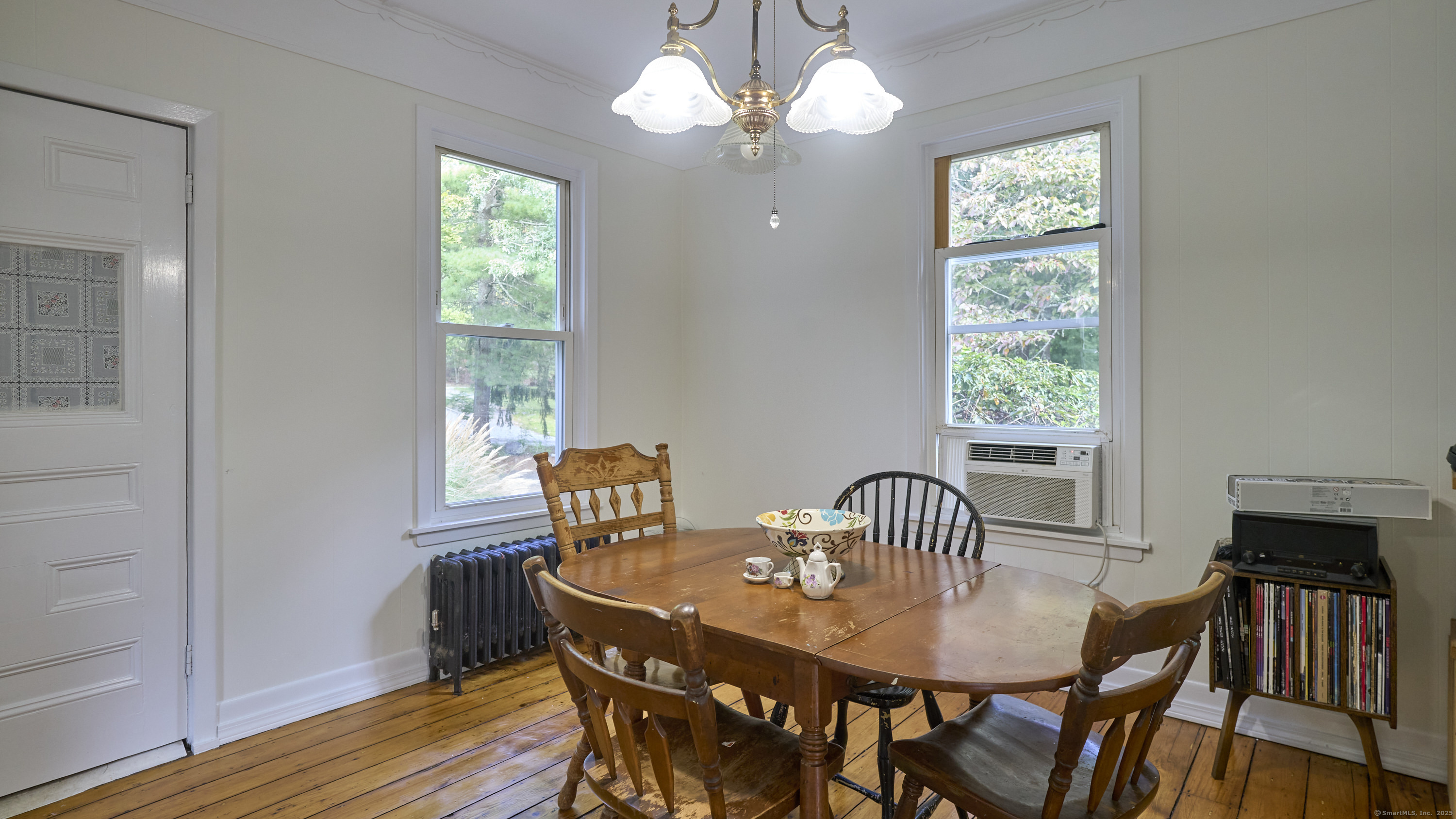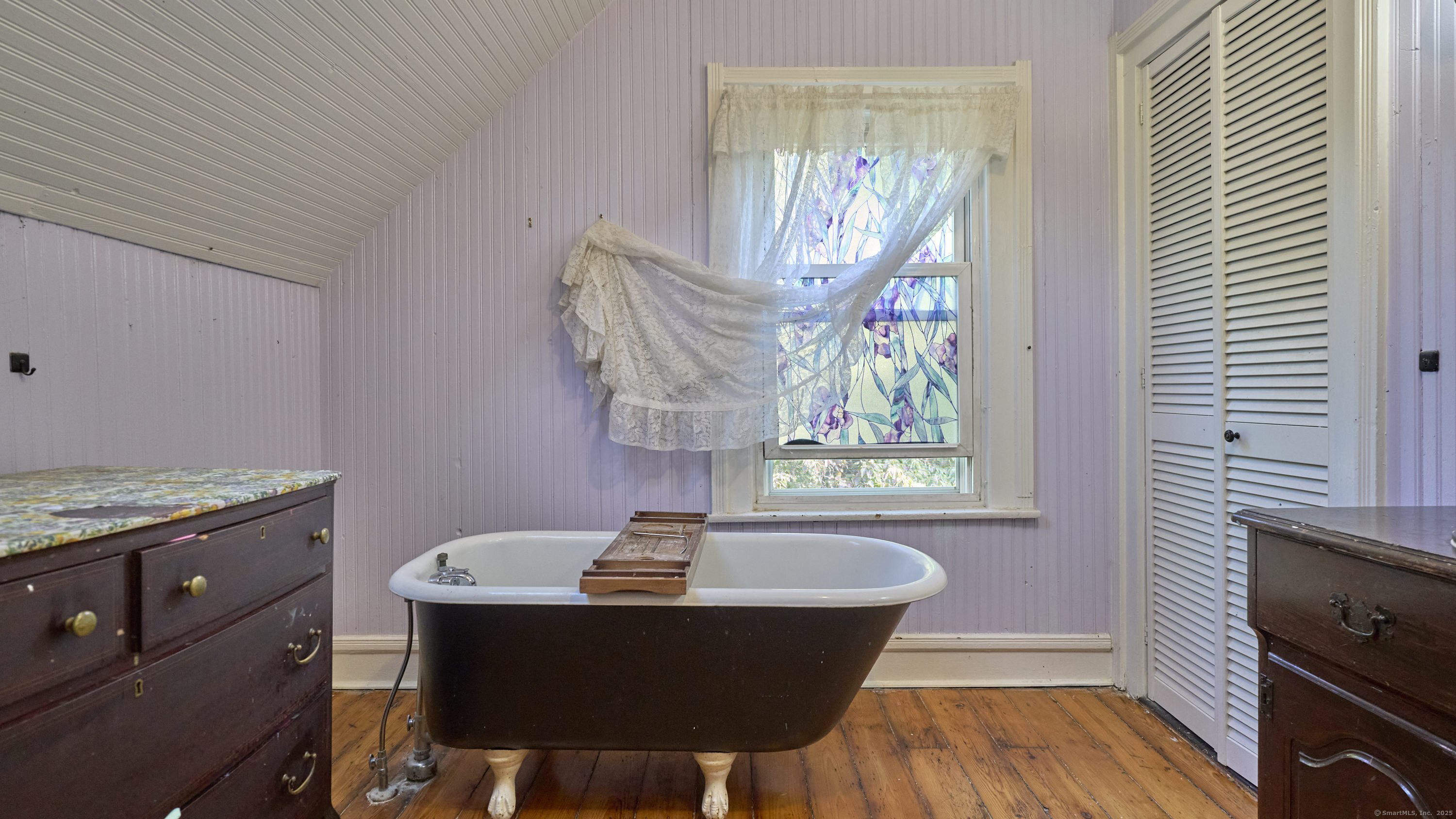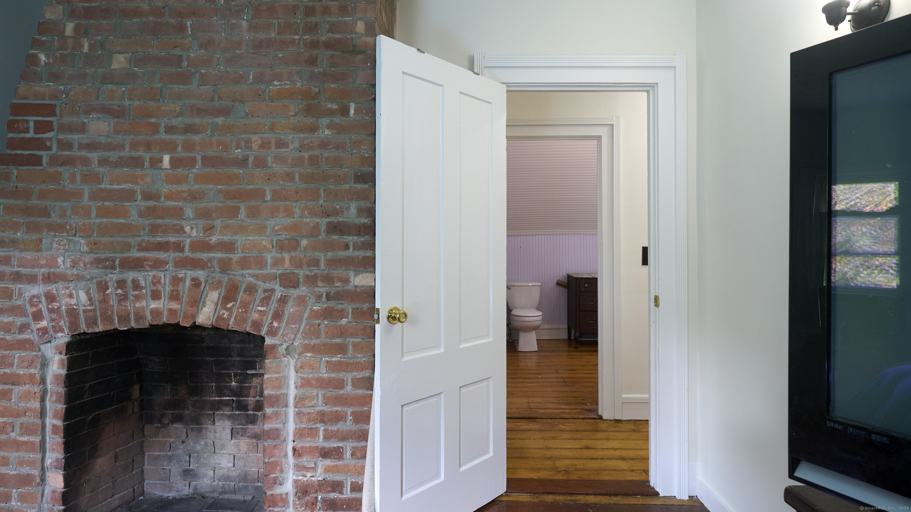 This farmhouse sits on an acre and a half of level land. Inside, hardwood floors run throughout, accompanied by wide trim and clean moldings that reflect the home's simple craftsmanship. On the main floor, you'll find a bright kitchen that opens to a spacious living area, where tall windows fill the rooms with natural light. Upstairs, you'll find bedrooms that continue the hardwood floors and feature details such as exposed brick, wide trim, and tall windows. Outside, the open yard offers a mix of sun and shade, suitable for gardens, projects, or quiet outdoor time. The property is located just minutes from downtown Norwich, Mohegan Park, and local shops, museums, and restaurants, combining privacy with convenient access to amenities