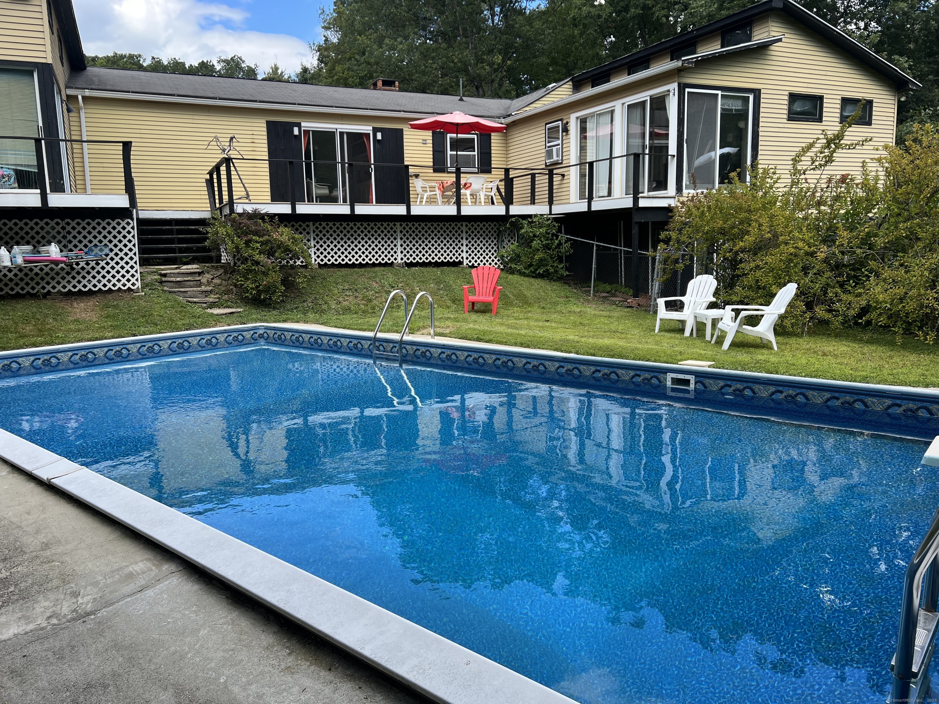 This 3-bed, 2.5-bath mid-century modern ranch style home sits on a private acre lot on a quiet dead-end street. Featuring 1,800 sq ft, two fireplaces, large windows, and a great layout, it's full of natural light and character. The partially finished basement offers extra space for entertaining or a potential in-law suite. Car enthusiasts will appreciate the oversized garage with a 25-foot bay, perfect for storage or a workshop. Enjoy summer in your in-ground pool and spacious backyard. Solid bones, well cared for, and ready for your updates - a perfect opportunity to make it your own!