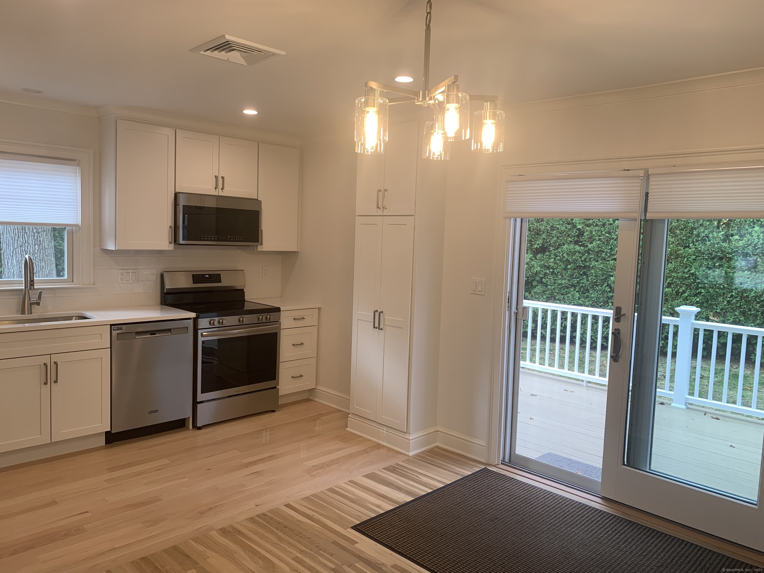Beautifully renovated inside and out. This home features extensive exterior upgrades, including a new irrigation system, masonry steps and walkway, and lush new landscaping with tall trees creating a park-like setting. Step inside to discover a sparkling, brand-new kitchen, elegant full and half baths, and a spacious lower-level family room-perfect for entertaining. Additional highlights include top-of-the-line window treatments, a new heating and central air conditioning system, and a fully updated electrical system. A new laundry area with built-in storage adds convenience, while the expansive, oversized deck offers the privacy and serenity of a two-acre estate. Truly a must-see property that blends modern luxury with natural beauty.