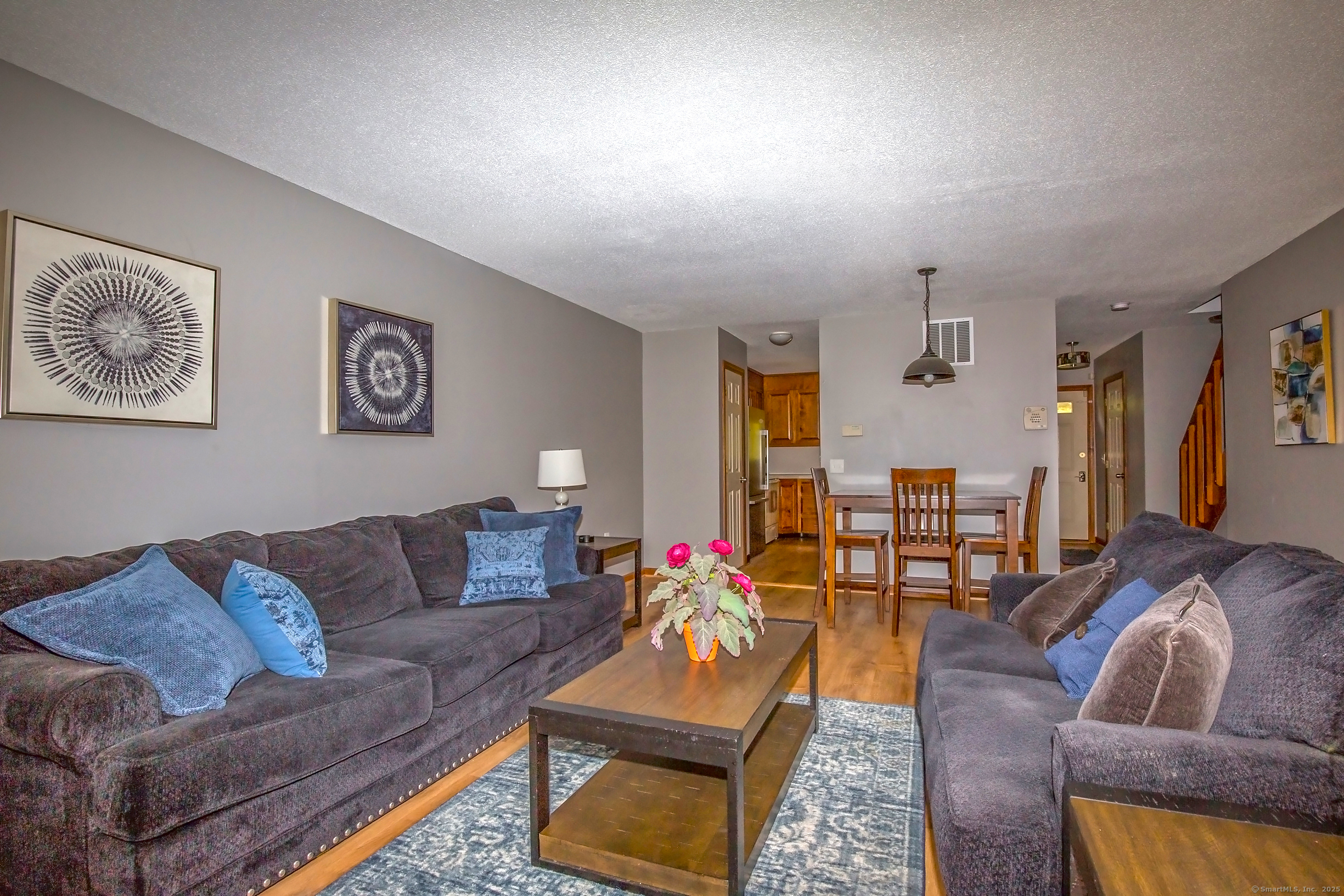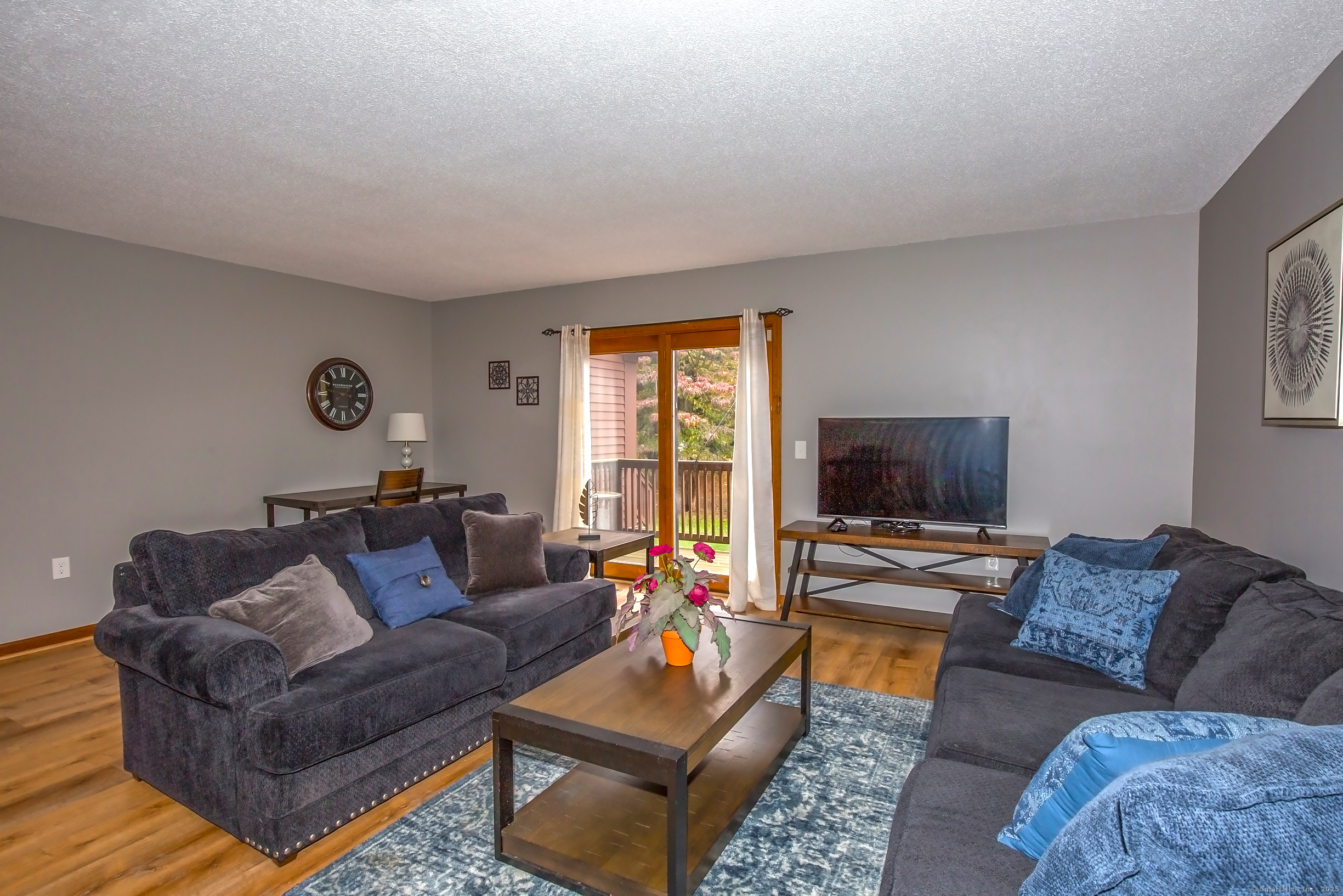 SUPER CONDO in much sought after CANDLEWOOD VILLAGE. Townhouse style unit with two large sized bedrooms and 2.5 Baths! Bright, open living room / dining area overlooks private DECK through FRENCH DOORS. The fully applianced kitchen is large enough for a small table and there is a pantry for extra storage! The primary bedroom offers double closets and a private full bath with a walk-in shower. The second floor also offers a second bedroom and a second full bath. Other special features include: a newer A/C unit, Newer flooring on the first floor, GAS Heat, a large basement area perfect for play, storage or possible additional living space! Outside you have your very own 1 car GARAGE with room for parking in front along with other designated parking for your visitors. Minutes from Highways, Shopping and restaurants --- this professionally managed complex a perfect place to call HOME! NOTE: Furnishings are negotiable. Pool table to be removed prior to closing.