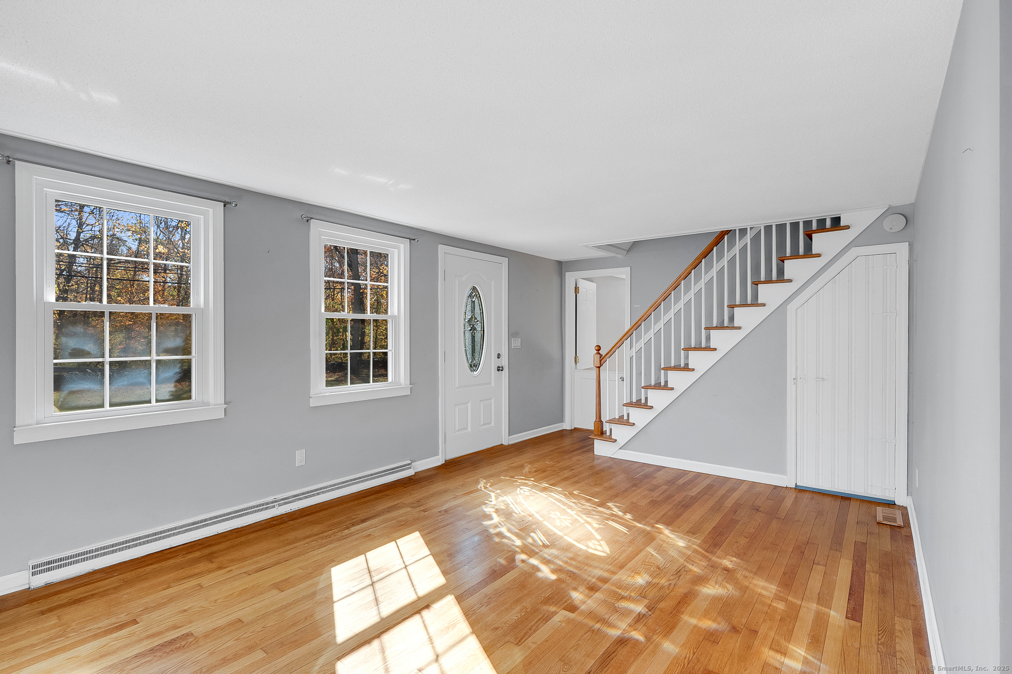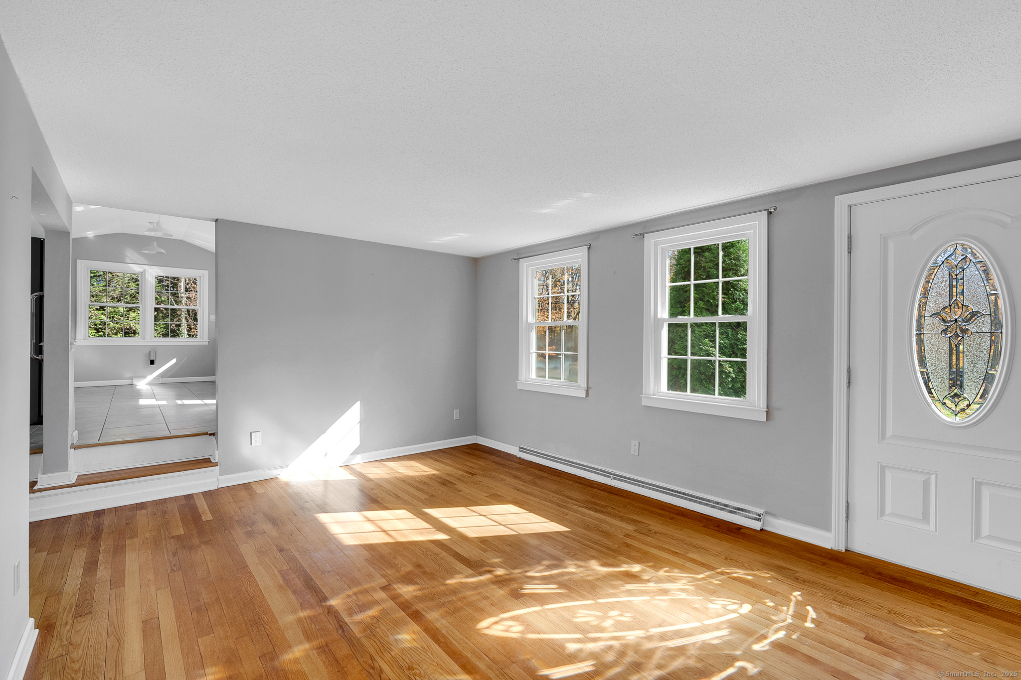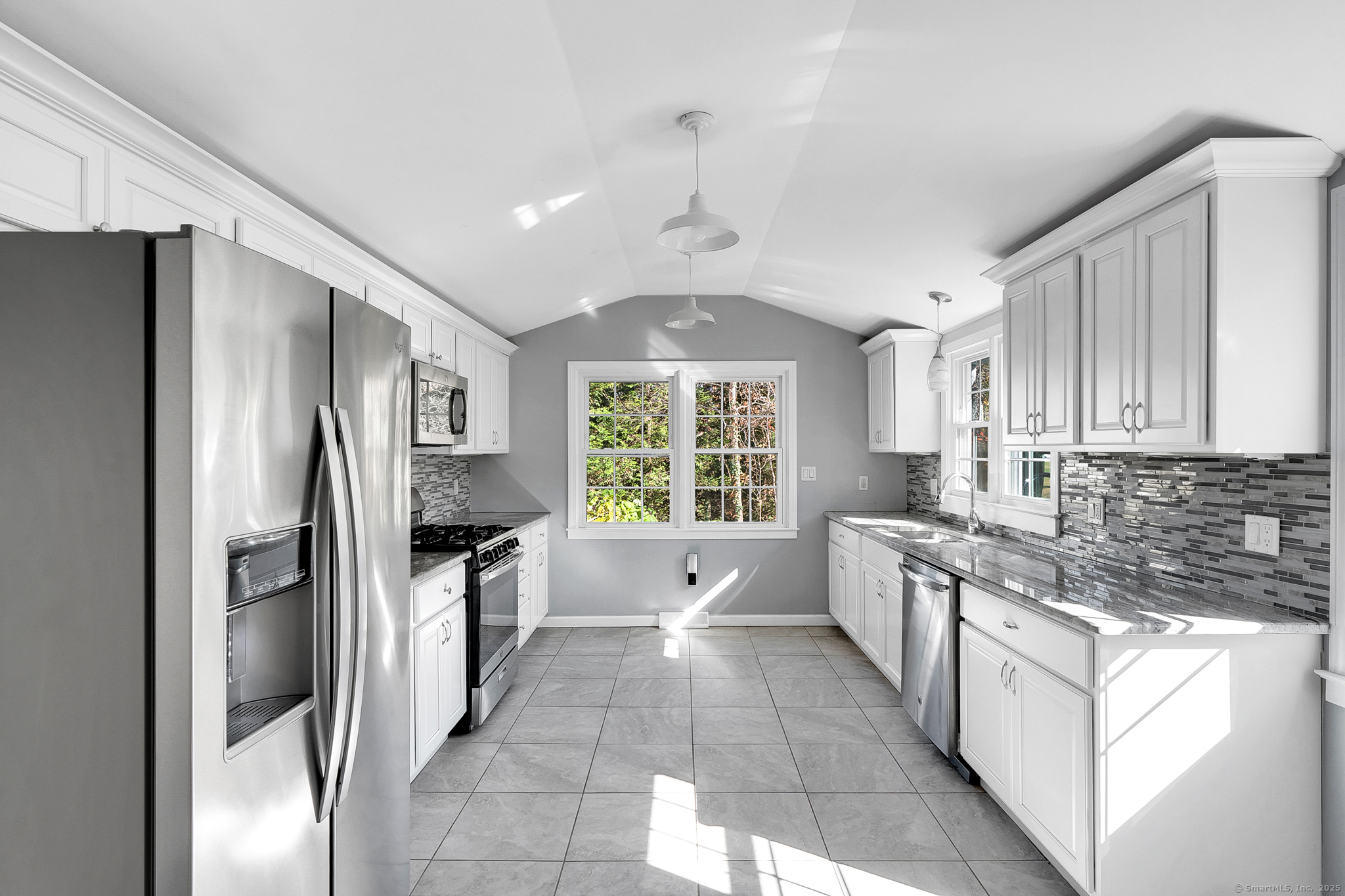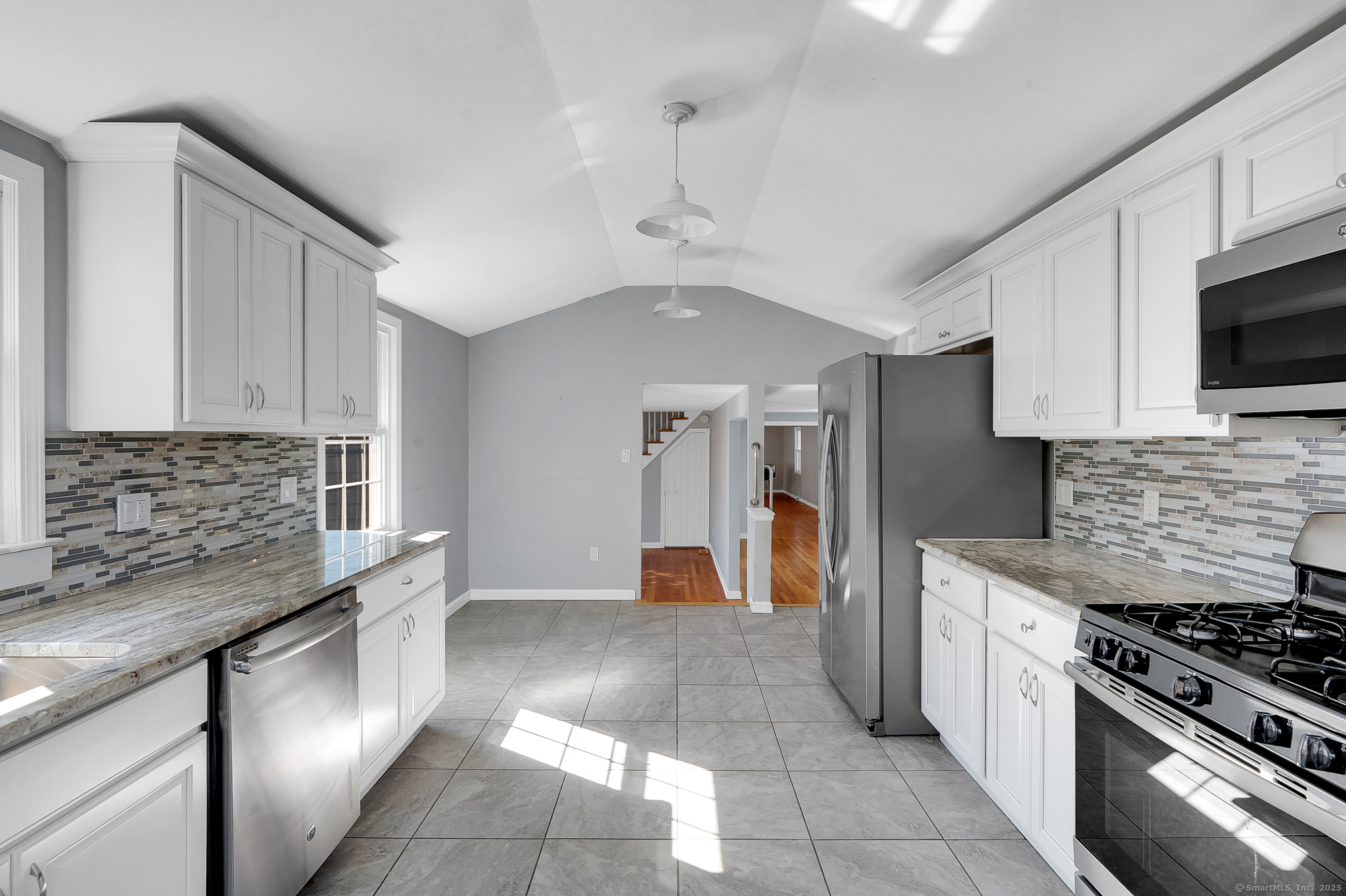 Welcome to this beautifully maintained home located in the charming town of Northford! This deceptively spacious 3-bedroom, 2.1-bathroom residence offers an abundance of living space and generously sized rooms throughout-perfect for today's lifestyle needs. Step inside to find a convenient first-floor mudroom/laundry area that leads into a stunning kitchen featuring vaulted ceilings, upgraded white cabinetry, granite countertops, and elegant tile flooring. Adjacent to the kitchen are formal living and dining rooms, both filled with natural light and showcasing gleaming hardwood floors. An oversized family room completes the main level, offering the ideal space for relaxing or entertaining. Upstairs, you'll find three well-appointed bedrooms and two full bathrooms, including a spacious primary suite with an impressively large walk-in closet. Situated on a level 0.81-acre lot, the property also includes a detached two-car garage, offering ample storage and parking. Additional upgrades made within the past 6-7 years include a new driveway, roof, gutters, basement system, and patio-providing peace of mind for years to come. Enjoy the benefits of Wallingford Electric! Don't miss the opportunity to make this exceptional home yours!