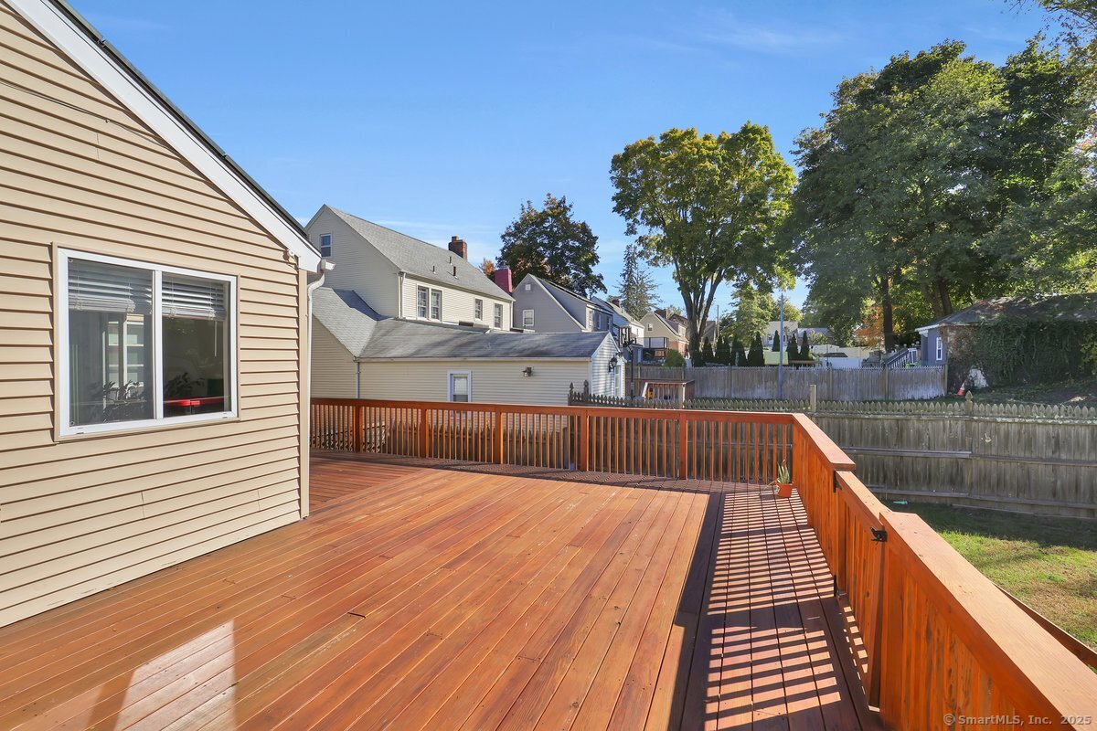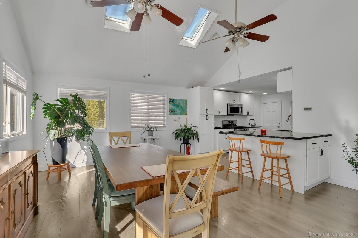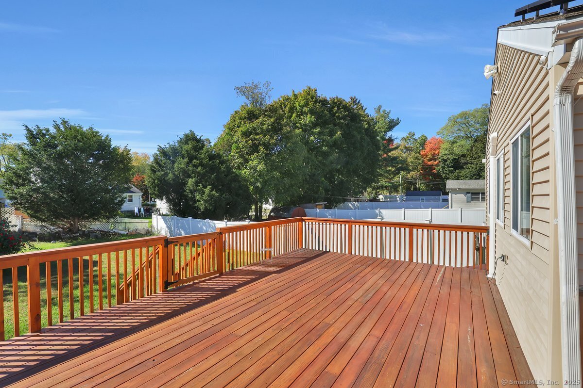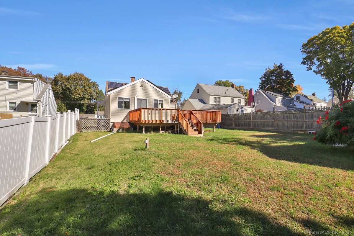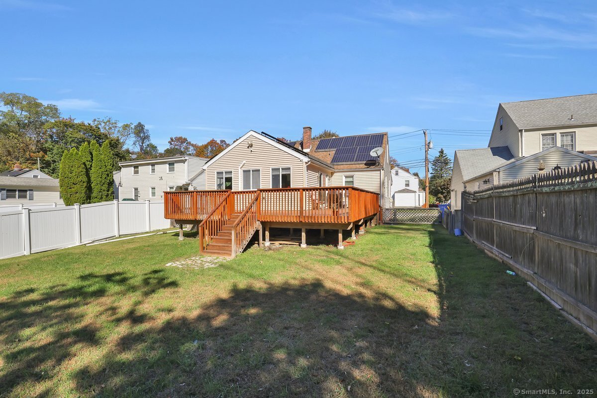 Welcome to 21 Roosevelt Street! This beautifully maintained Cape Cod home blends comfort, efficiency, and modern charm. Enjoy an open-concept layout filled with natural light, a newly updated kitchen with white cabinetry, granite countertops, and stainless-steel appliances. Home offers two full bathrooms, there's a discrepancy in the town record: the second bathroom in the basement is listed as a half bath on tax records. Tax records reflect two bedrooms; however, the finished and heated attic on the upper level can be used as a potential third bedroom, home office, or playroom. The dining area features cathedral ceilings and skylights, creating a bright and airy feel. Energy-efficient solar panels help reduce utility costs. Outside, a fenced yard and large deck offer the perfect space for gatherings or relaxation. Conveniently located near restaurants, shopping, and major highways, this move-in-ready Hamden gem has it all!