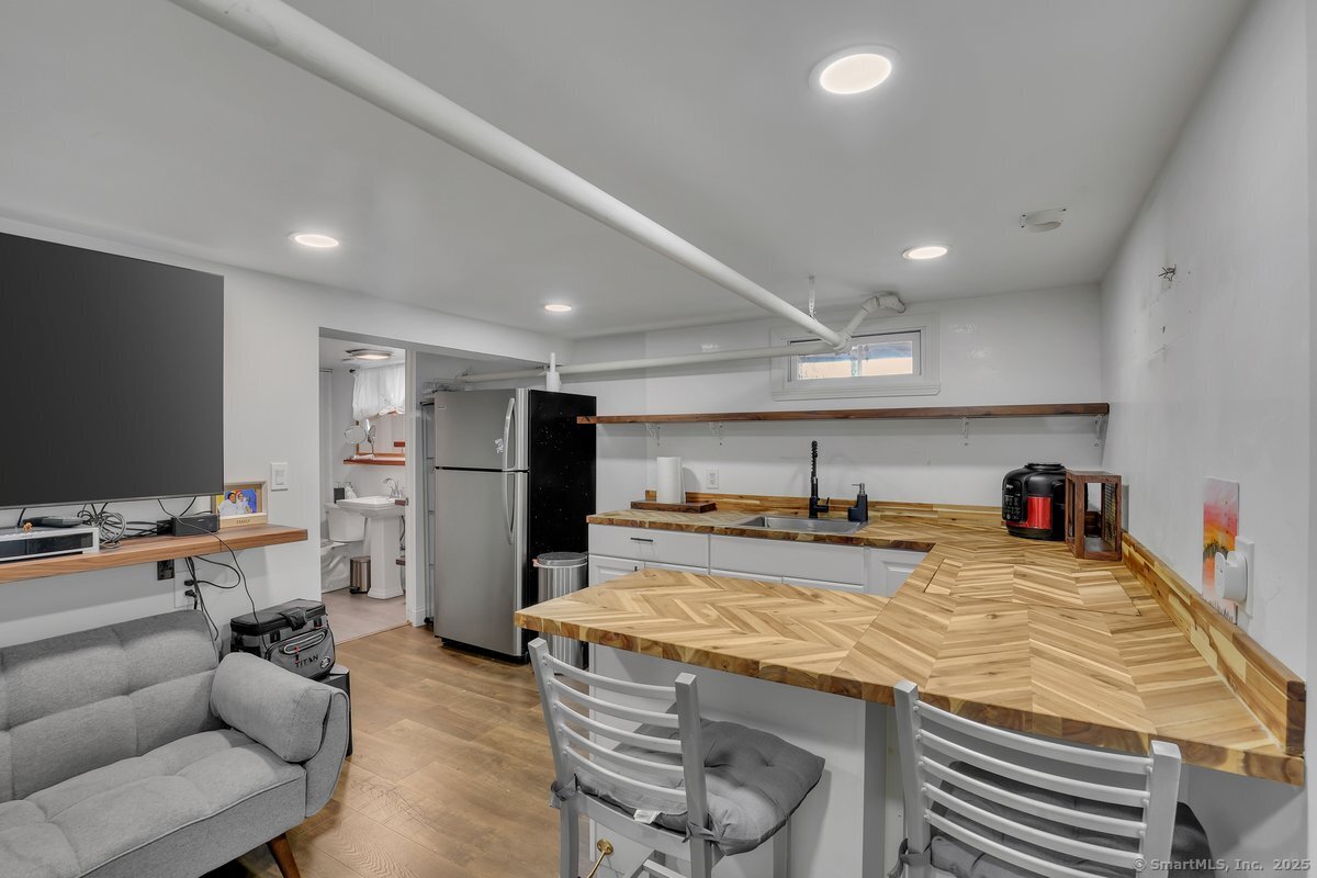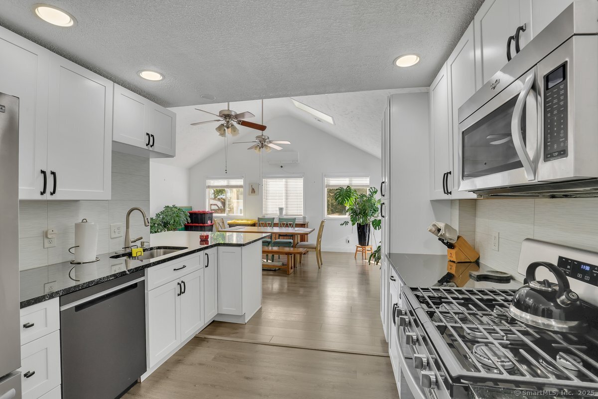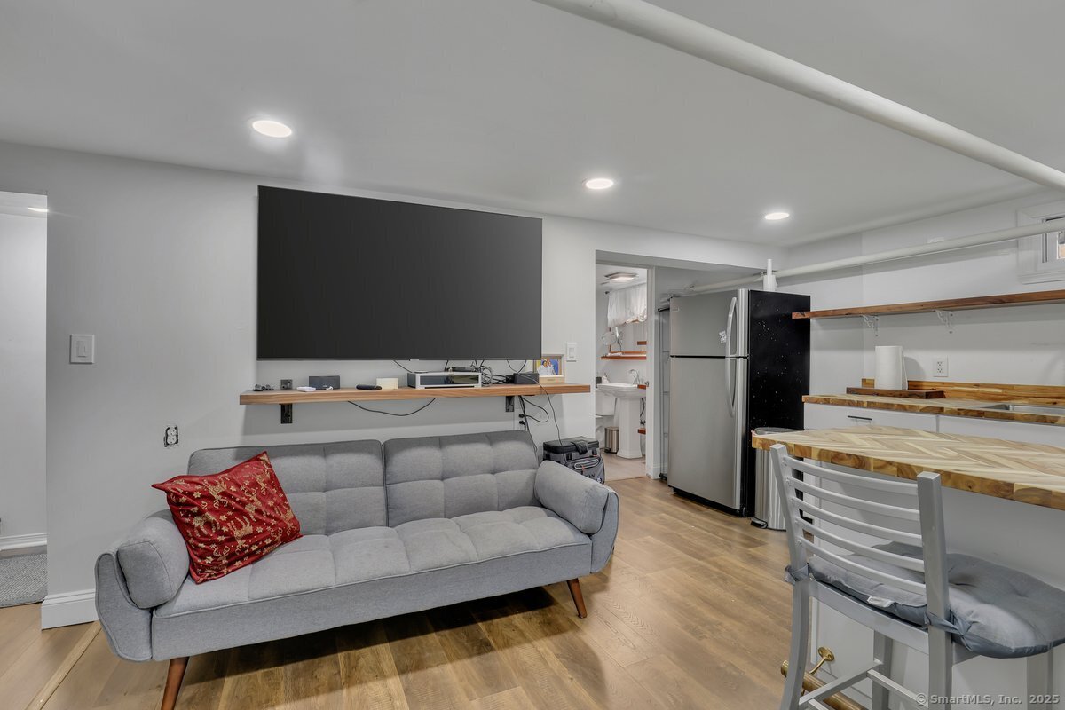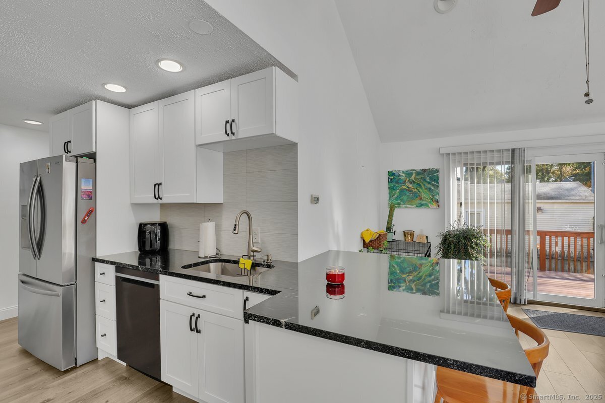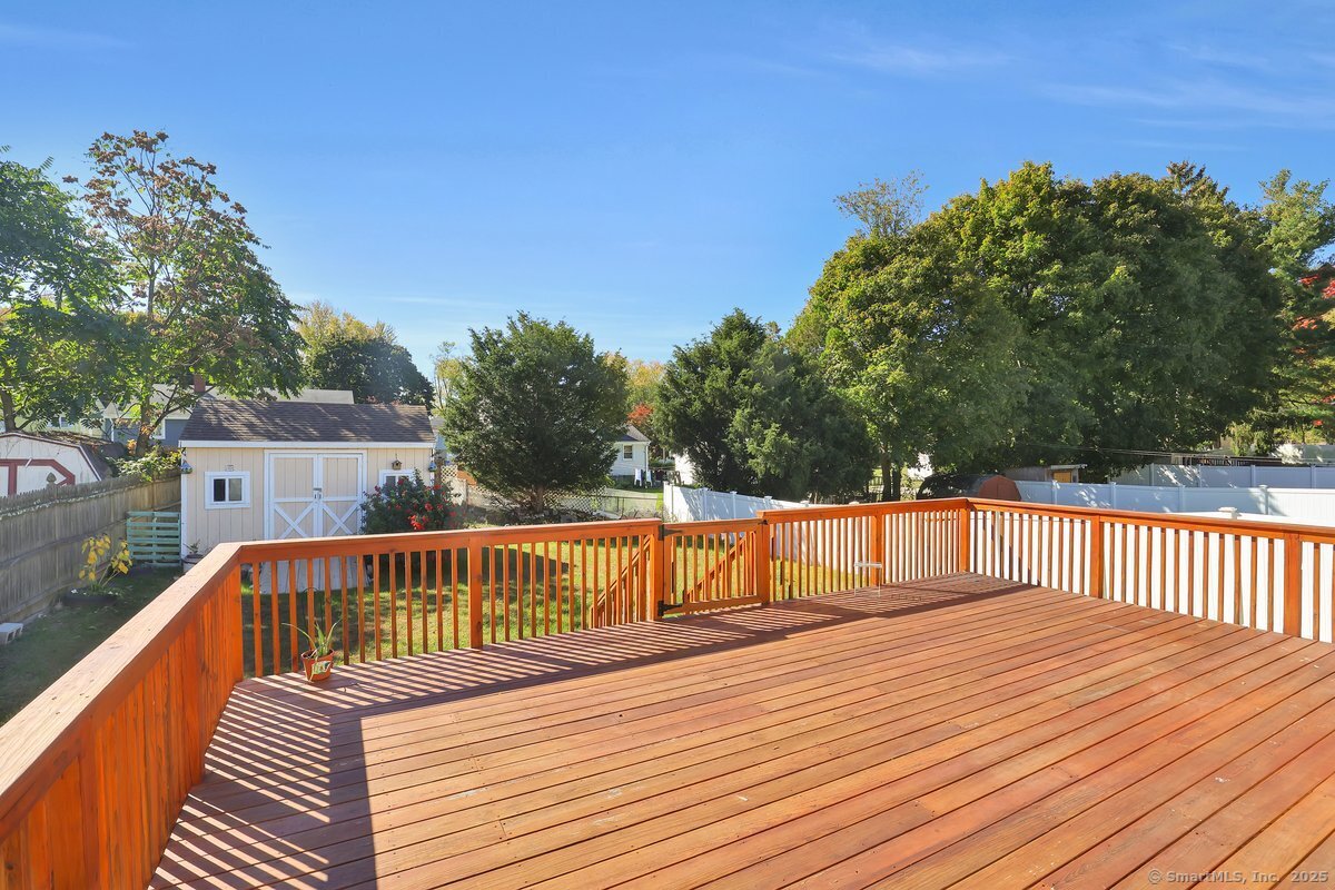 Welcome to 21 Roosevelt Street! This beautifully maintained Cape Cod home blends comfort, efficiency, and modern charm. Enjoy an open-concept layout filled with natural light, a newly updated kitchen with white cabinetry, granite countertops, and stainless-steel appliances. Home offers two full bathrooms, there's a discrepancy in the town record: the second bathroom in the basement is listed as a half bath on tax records. Tax records reflect two bedrooms; however, the finished and heated attic on the upper level can be used as a potential third bedroom, home office, or playroom. The dining area features cathedral ceilings and skylights, creating a bright and airy feel. Energy-efficient solar panels help reduce utility costs. Outside, a fenced yard and large deck offer the perfect space for gatherings or relaxation. Conveniently located near restaurants, shopping, and major highways, this move-in-ready Hamden gem has it all!