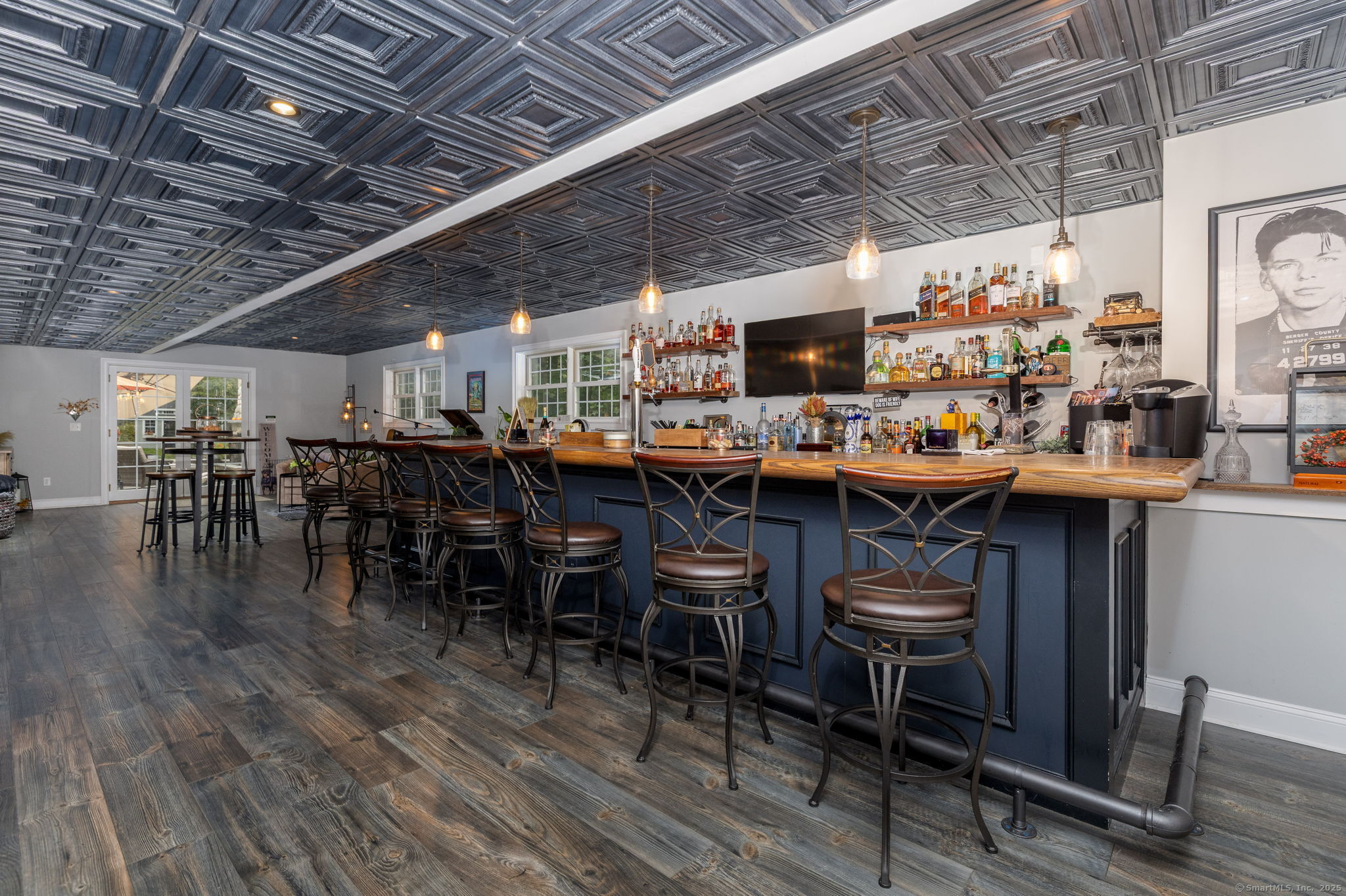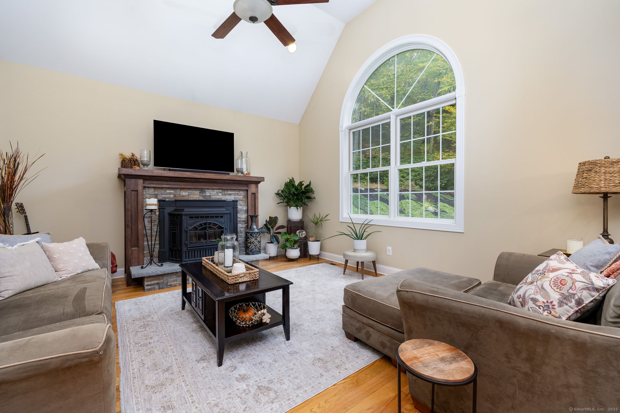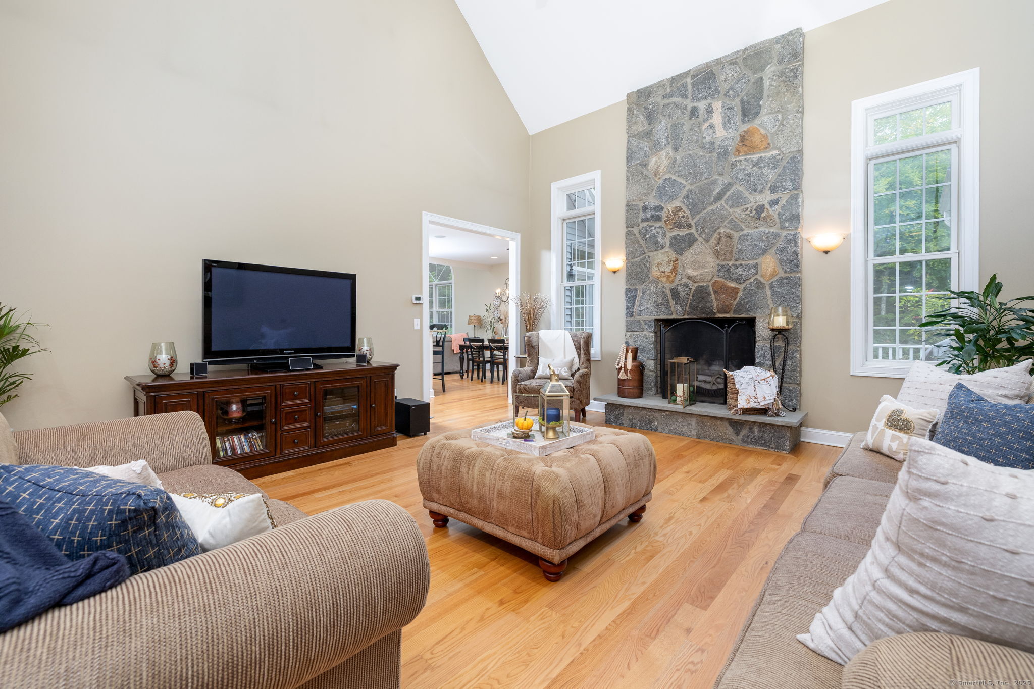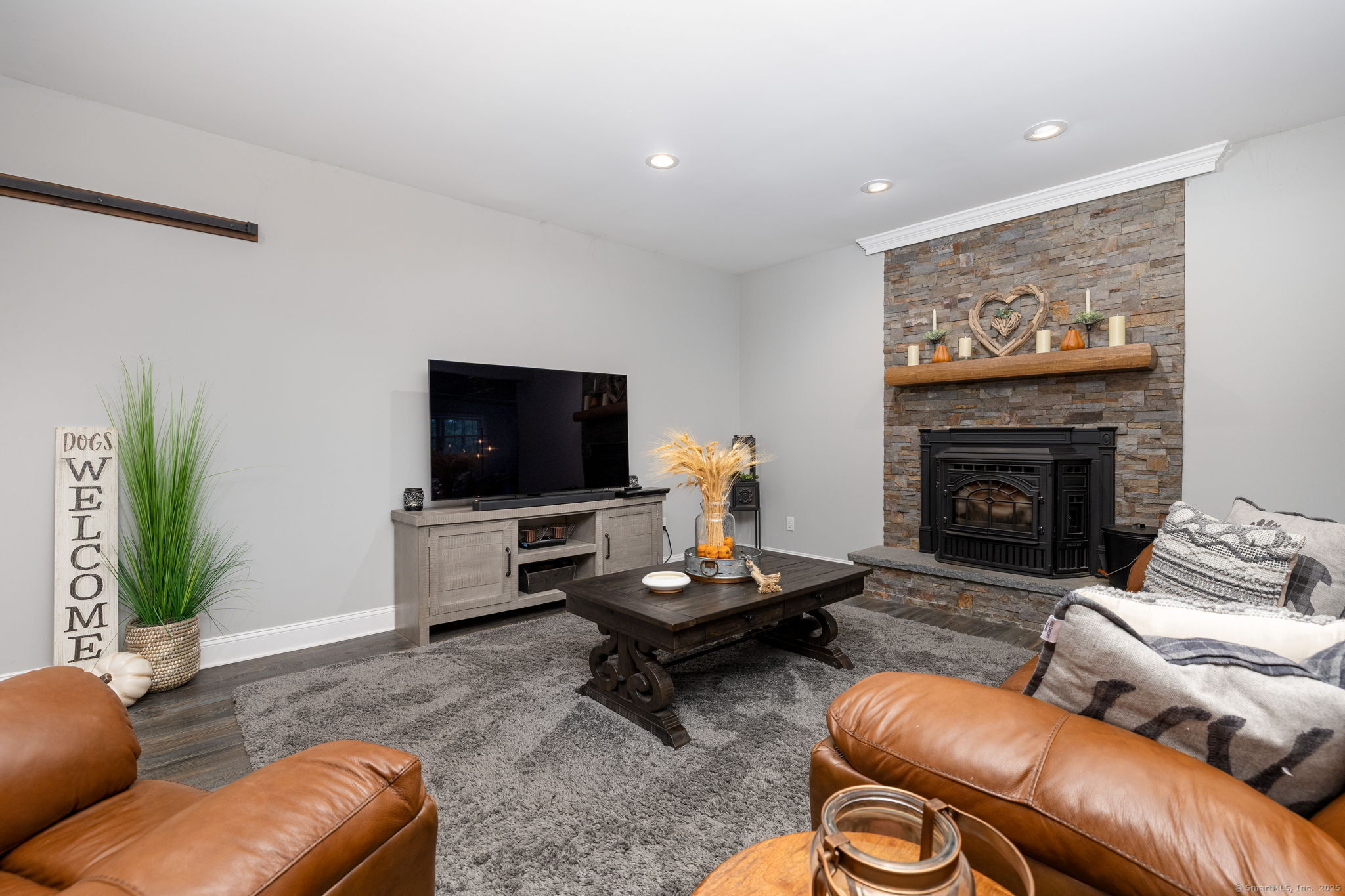 Welcome Home. Discover this beautifully designed Frank Betz residence, thoughtfully customized with a natural stone veneer facade and nestled amid serene, landscaped grounds. Every detail of this home reflects warmth, craftsmanship and modern energy efficiency. Step into the great room where 18 foot vaulted ceilings and a floor to ceiling granite stone fireplace create a breathtaking focal point for gatherings. Family room features 14 foot vaulted ceilings and a Vermont Casting pellet stove offering a cozy retreat for everyday living. Gourmet kitchen featuring KraftMaid cabinetry, granite counter tops and an inviting dining area. Spacious dining room with well-appointed crown molding and chair rail. A nice size additional first floor room for office or den. Primary suite includes a tray ceiling while the primary bath showcases 12 foot vaulted ceilings and a whirlpool tub for ultimate relaxation. Two welcoming bedrooms featuring wood floors and a Jack and Jill bathroom. Unfinished second level rooms: framed, rough electrical, plumbing and heat. Perfect for potential in-law or additional living. Lower level palatial recreation room with stunning wet bar, beautiful wall to ceiling pellet stove surround leading to an outdoor retreat which features multiple spaces including 7x16 foot fieldstone fireplace with a bluestone patio, large deck and an additional 16x16 patio including a hot tub. Energy efficiency featuring geothermal solar panels and tankless hot water heater.