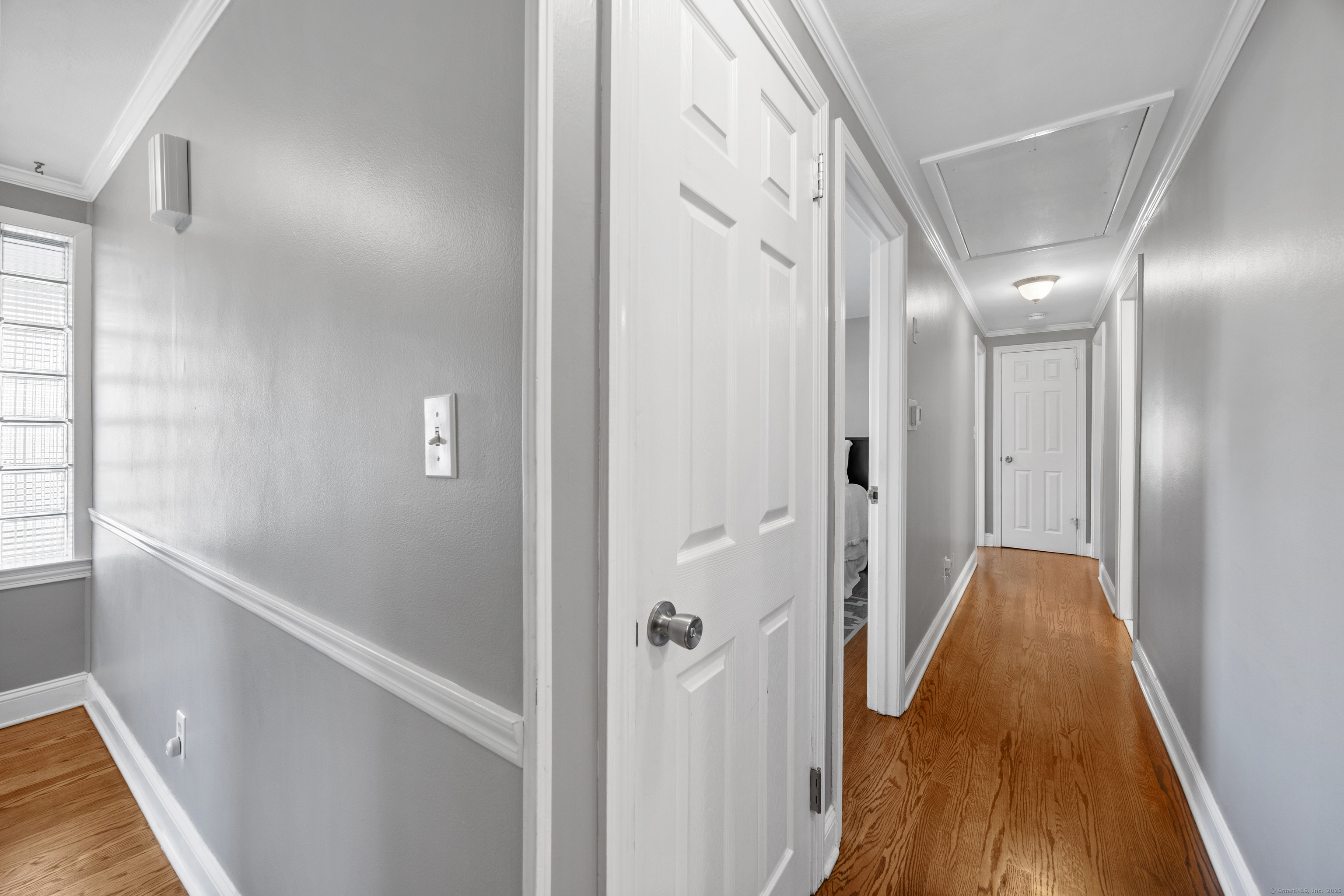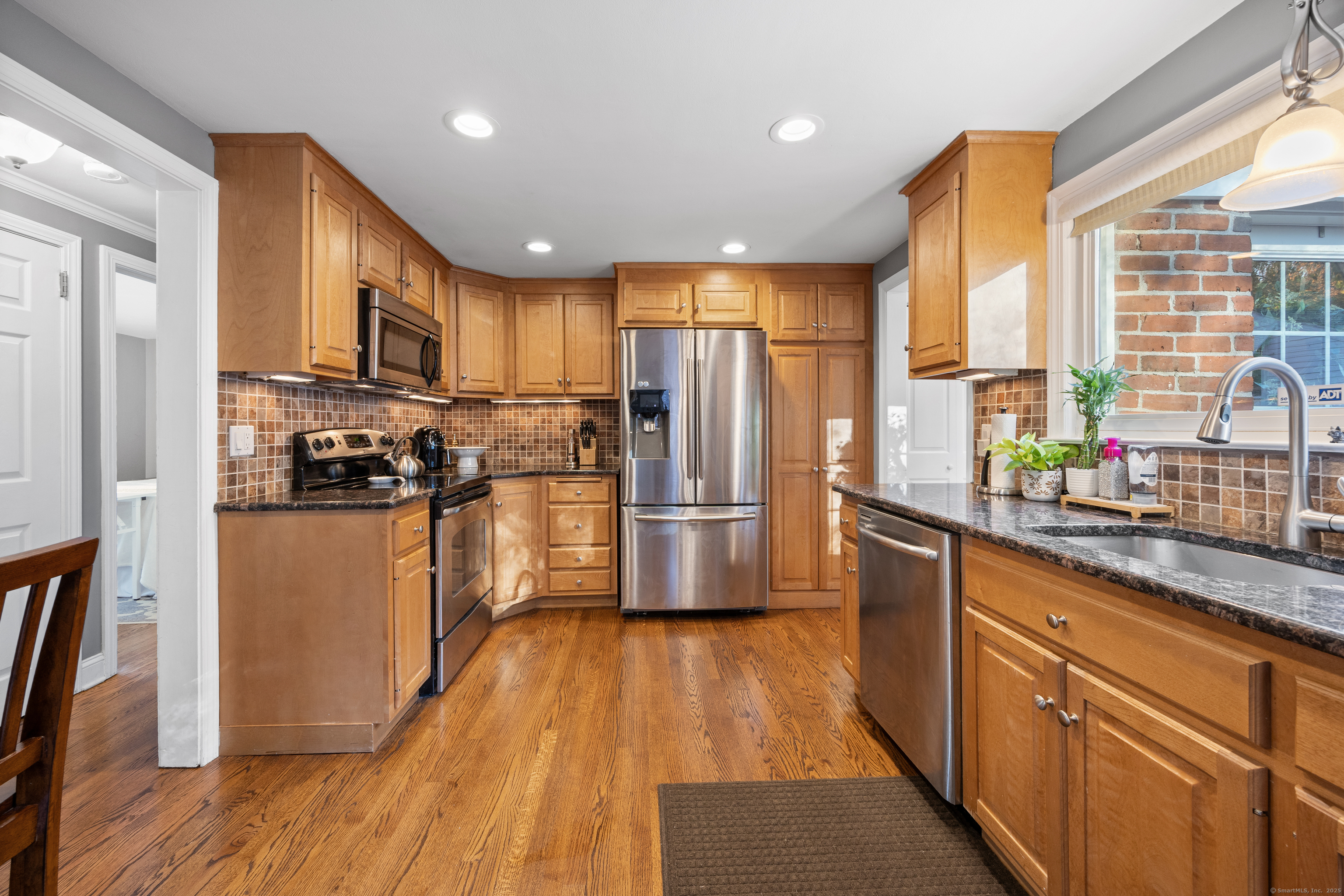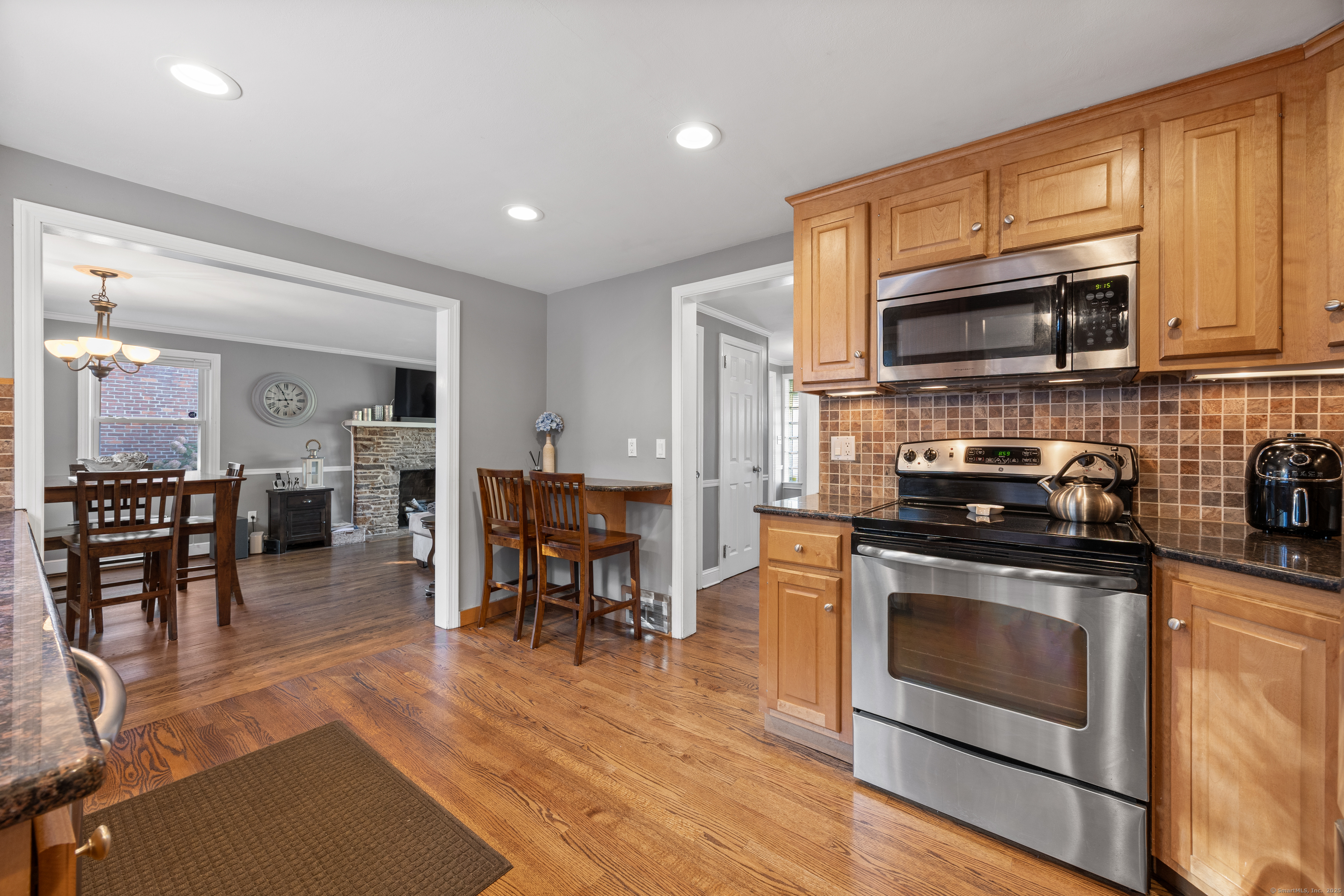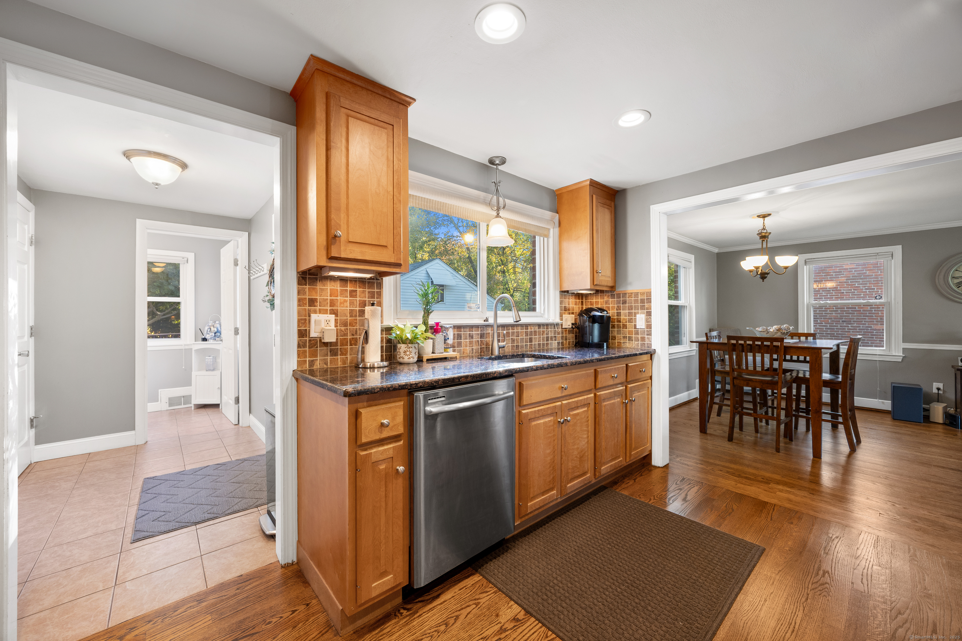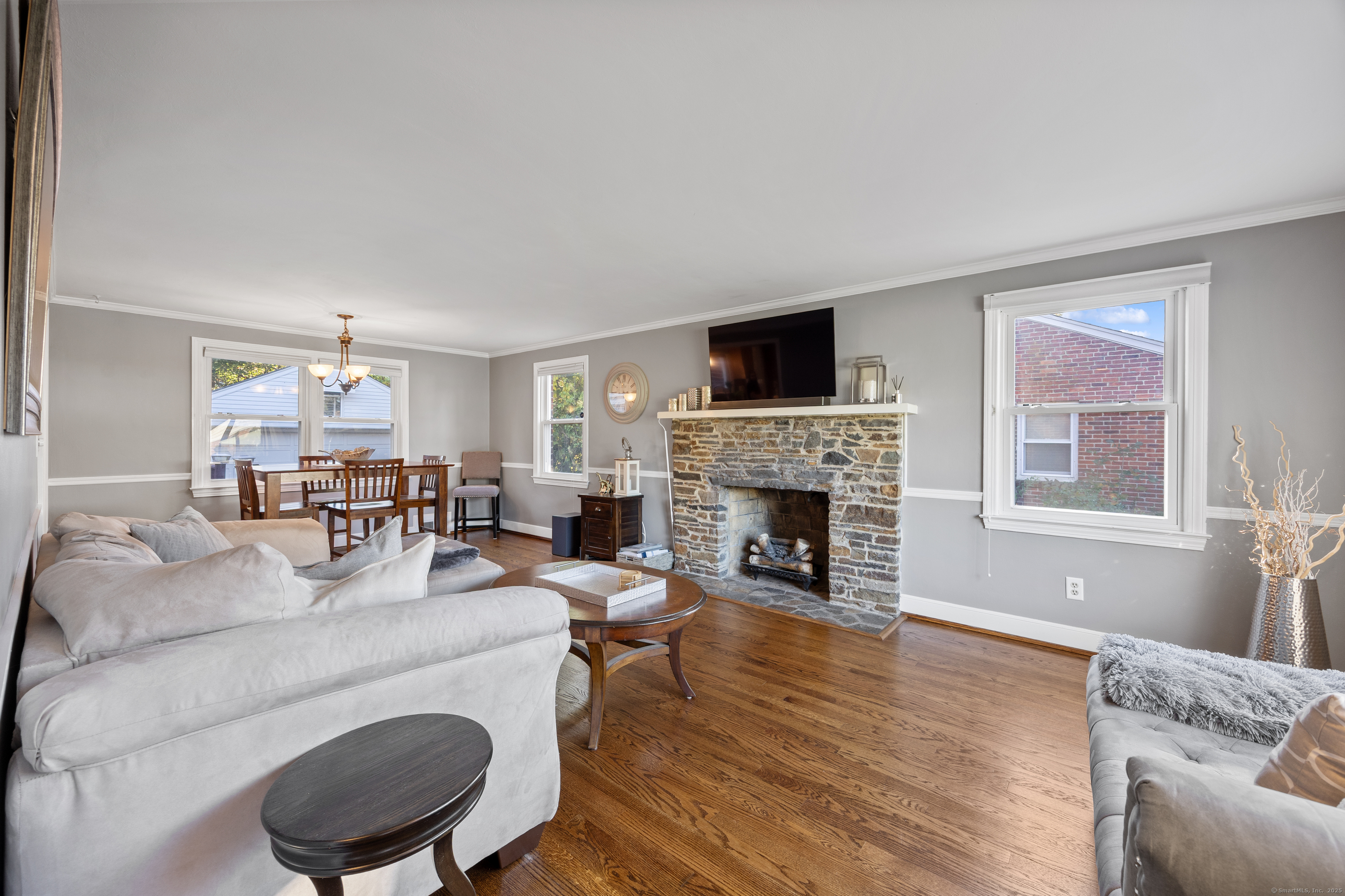 Nestled in the heart of West Hartford, this 3-bedroom, 1.5-bath brick ranch gem sits in a quiet neighborhood on the lower side of Fairwood Farms Drive. Step inside to a warm and inviting living/dining room combo with a wood-burning fireplace and gleaming hardwood floors throughout. The kitchen features granite countertops, recessed lighting, stainless steel appliances and a breakfast bar. Off the kitchen is a first floor laundry which leads to the updated half bath. Through the hallway you will find 3 ample sized bedrooms and an updated full bath with a double vanity. The primary bedroom contains 2 closets with plenty of storage space. Recent upgrades include a new roof, driveway, water heater, front and back entry doors, conversion to gas with new HVAC and furnace, and paver walkway. A beautifully landscaped level yard, a large back deck perfect for entertaining, and an oversized detached two-car garage for parking and storage complete the home. With easy access to I-84 and just minutes to West Hartford Center, Blue Back Square, West Farms Mall, and UConn Health, this move-in-ready home truly has it all! **Highest & Best offers by 7pm, Sunday 10/26**