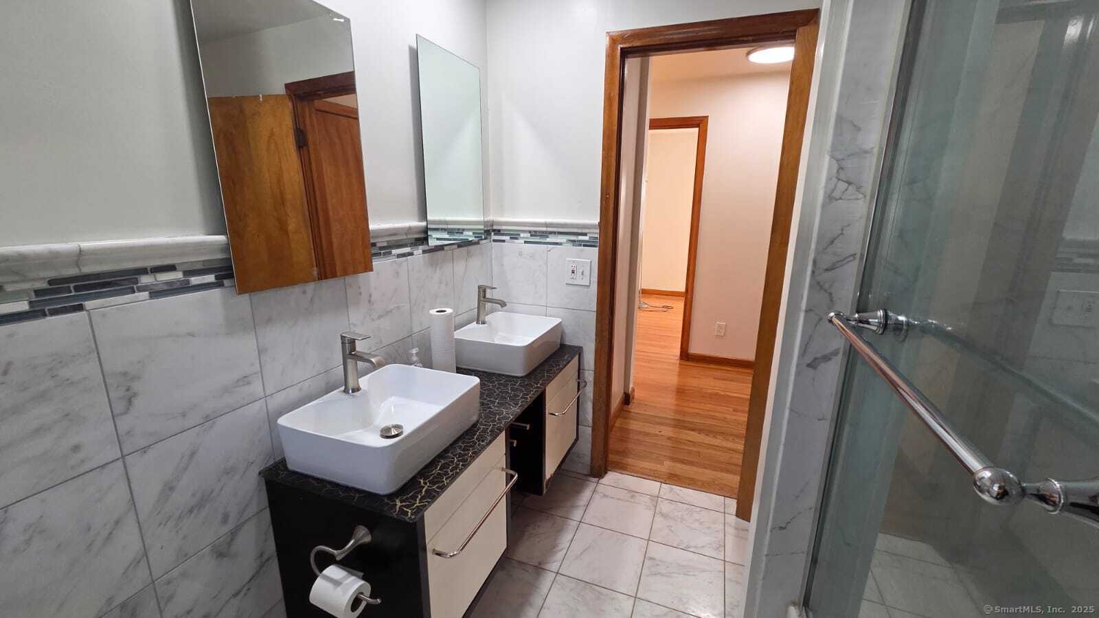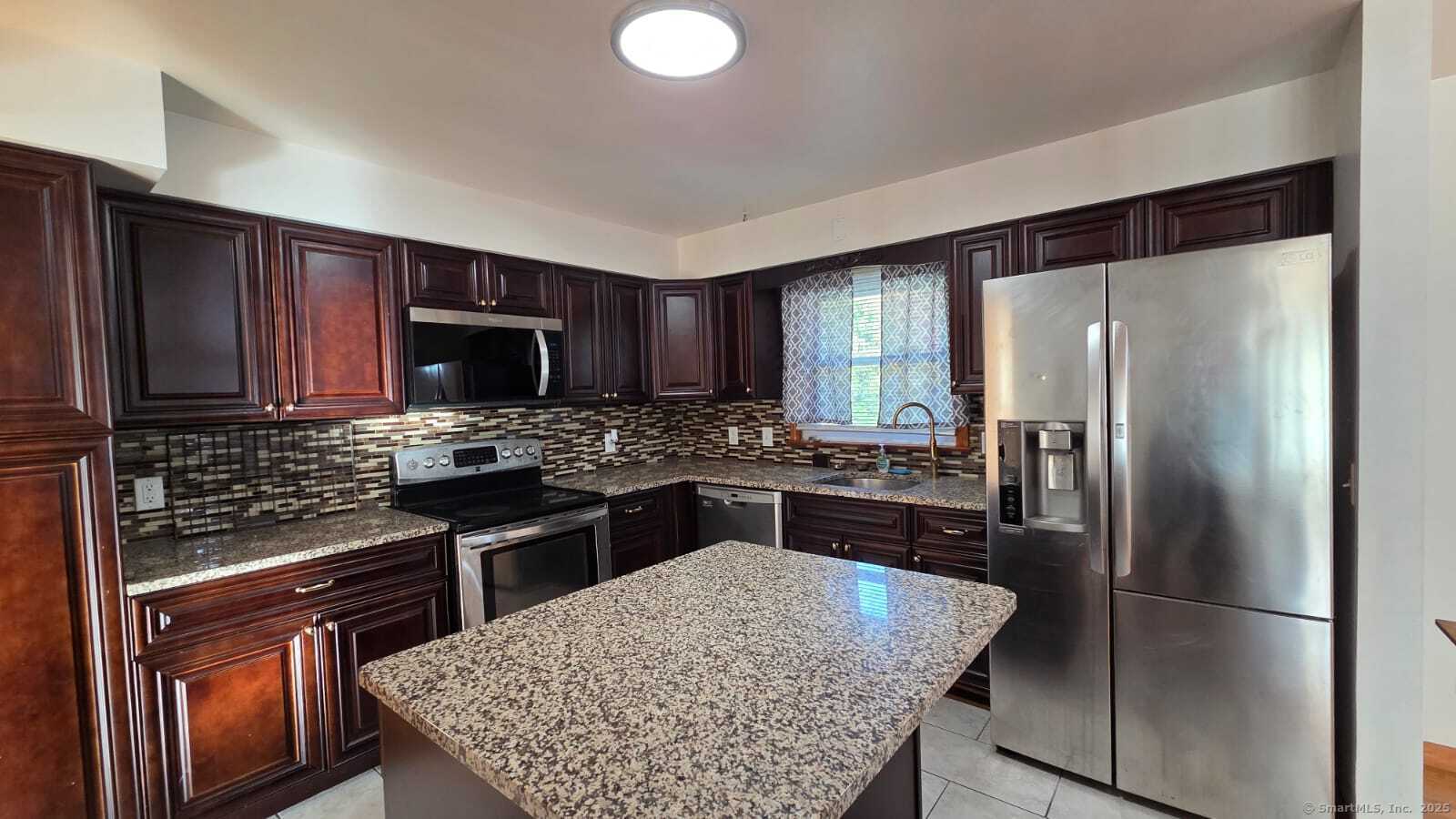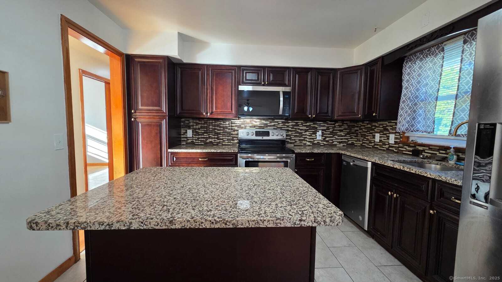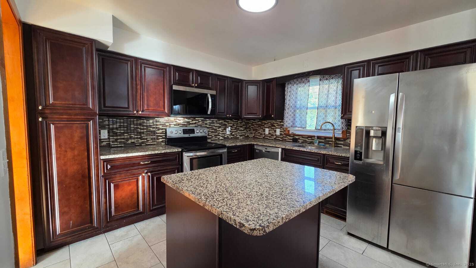 Beautiful and recently renovated Raised Ranch home in Hamden, CT. This spacious property offers 5 bedrooms and an in-law apartment on the lower level connected to the main house, complete with its own kitchen and living area. Features include central air, HVAC system, solar panels, fenced backyard with deck, laundry room, and attached garage. Perfect for a large family seeking comfort, space, and modern efficiency.