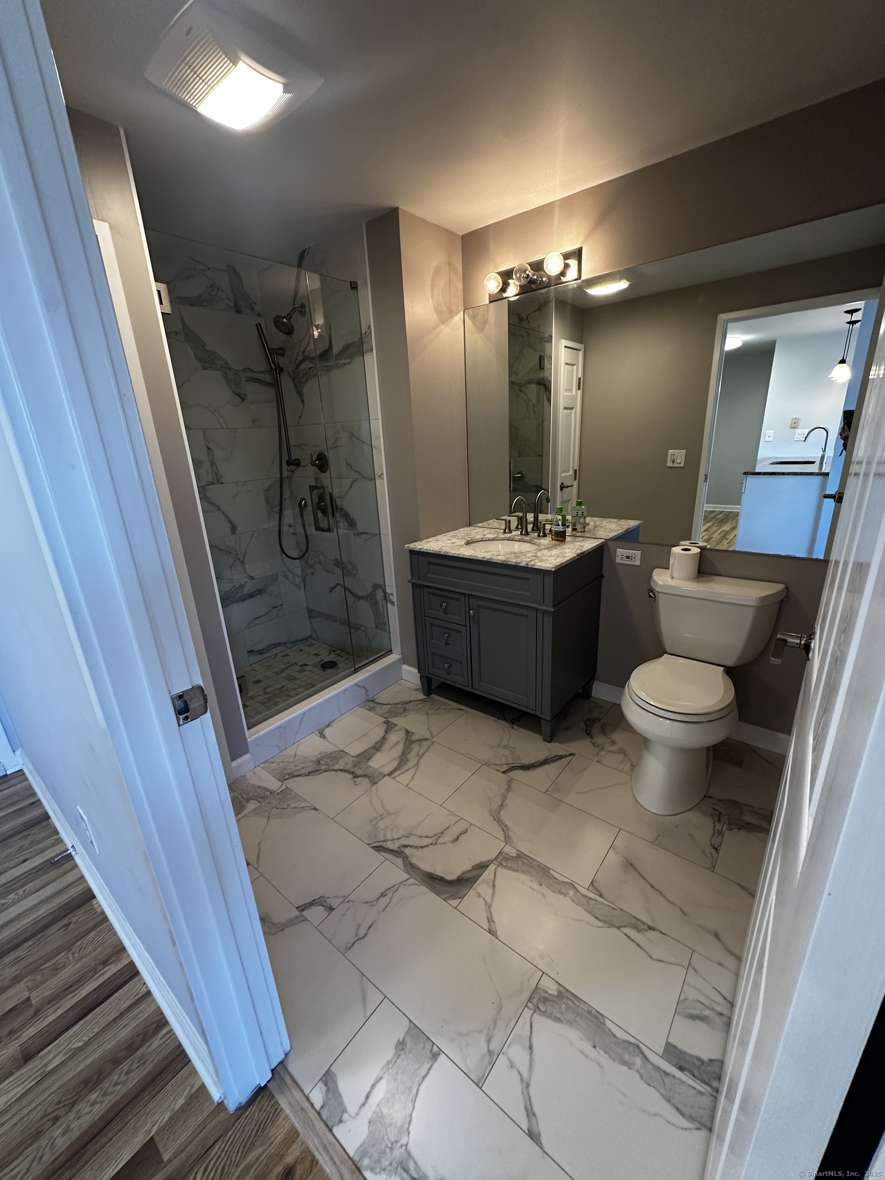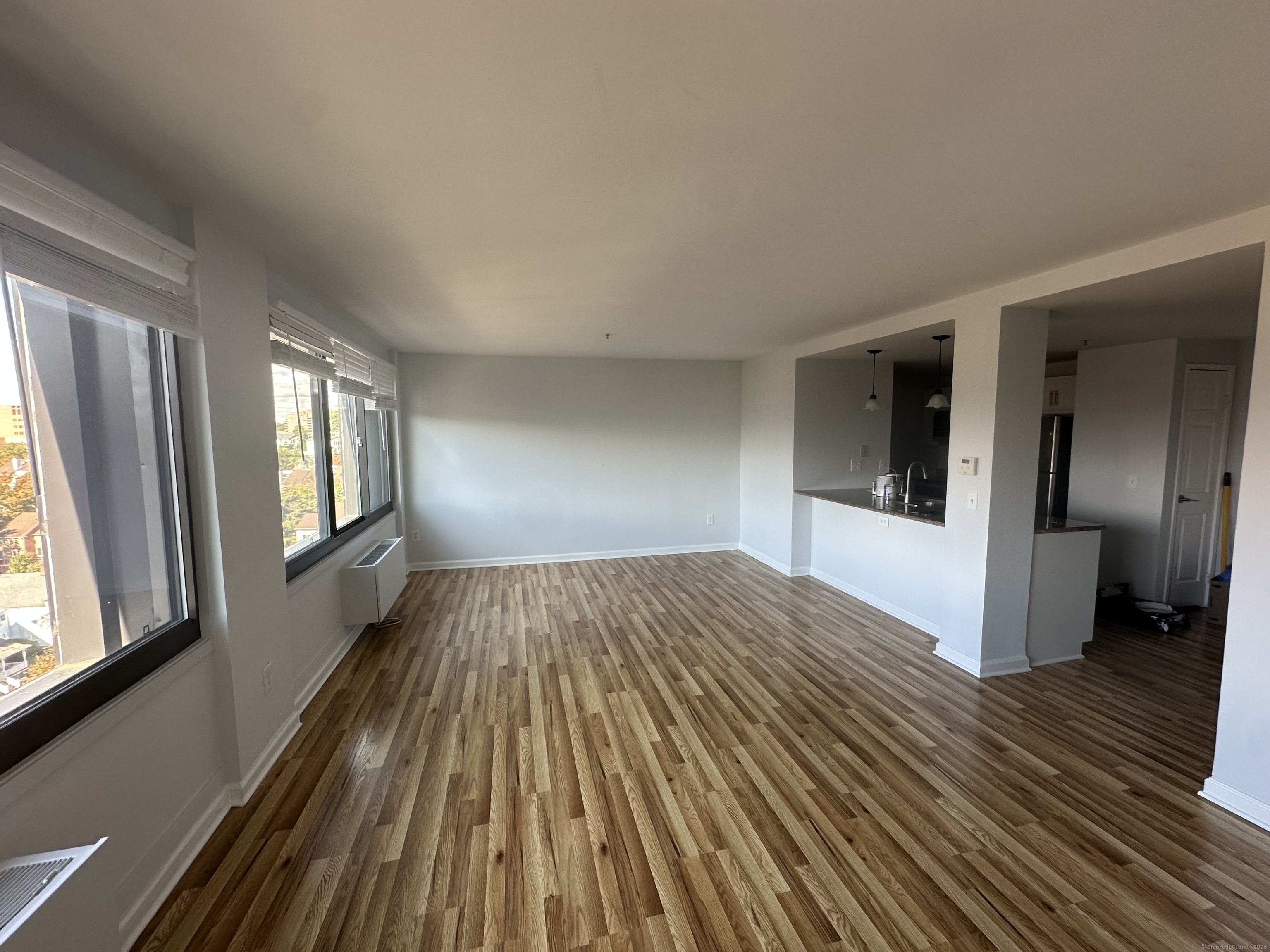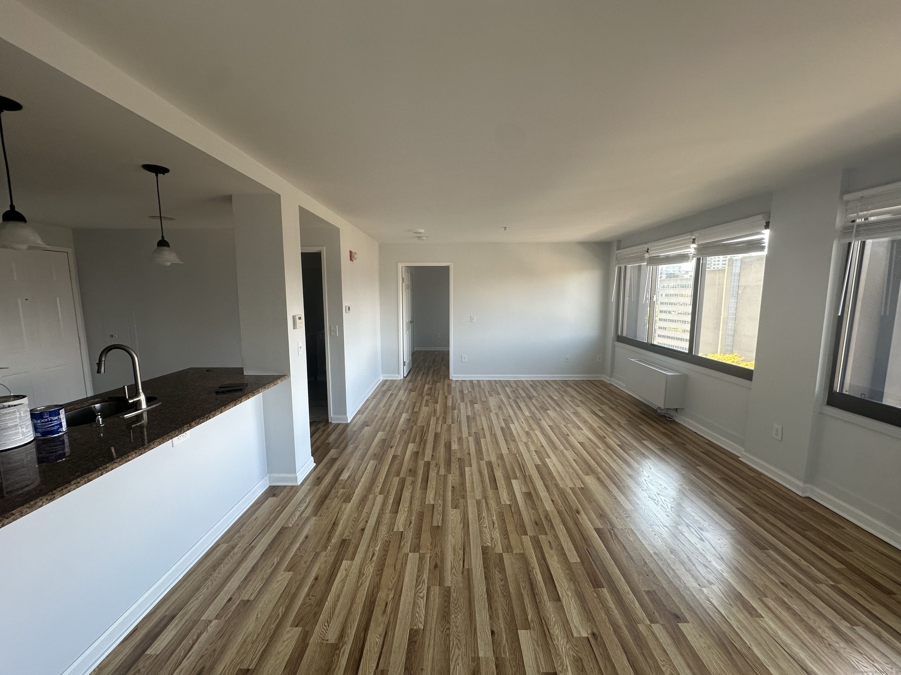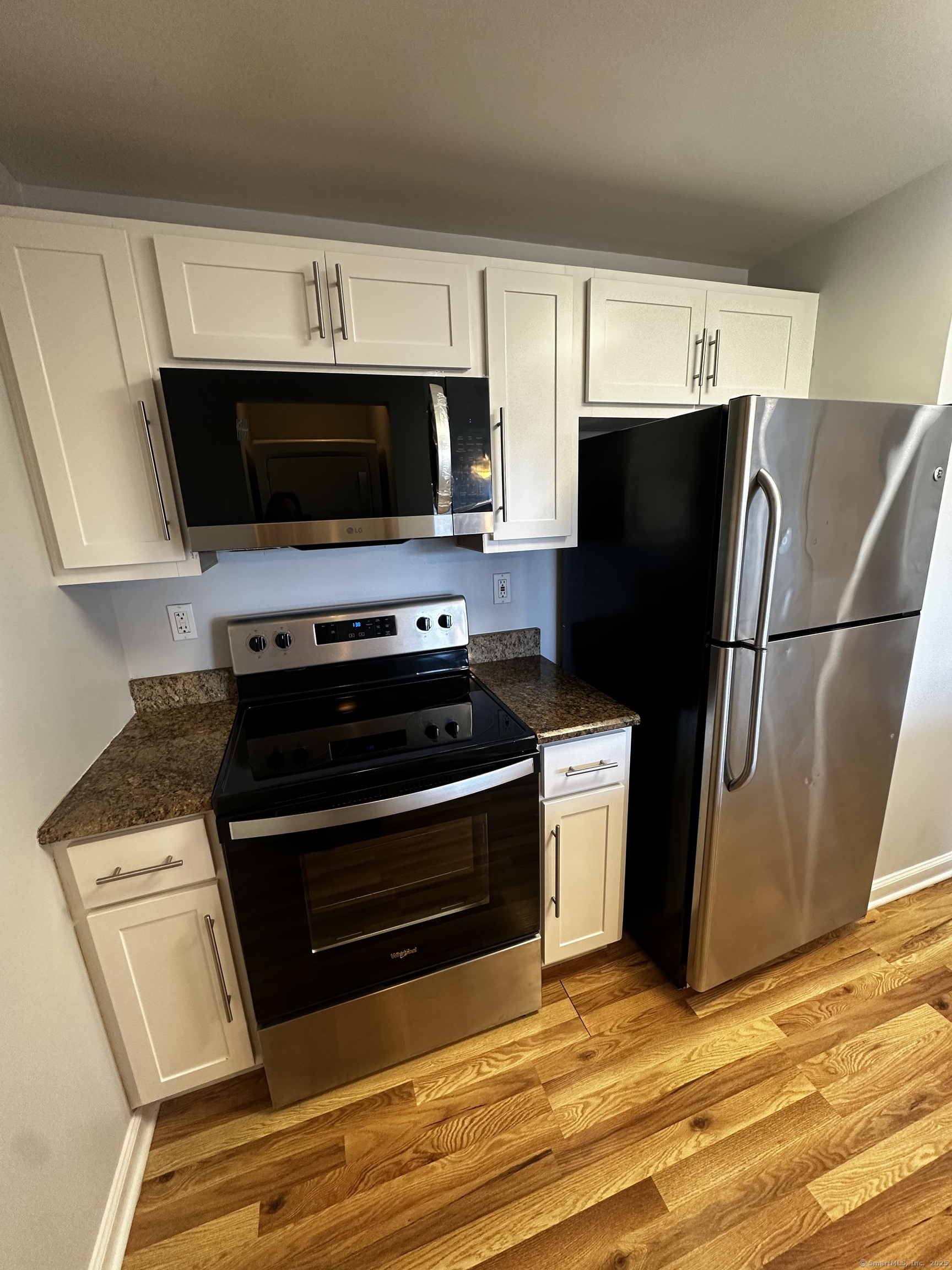 Wonderfully updated and beautiful one bedroom rental with city views and sunsets. Walk to downtown Stamford and train in minutes. Washer and dryer is located in the unit. Wood flooring throughout, updated kitchen and bath and freshly painted. Living room and dining room combo. Walk-in shower. There is a gym in the building for the tenants use. One reserved parking space. Enjoy the common area outdoor patio space with grill and tables in warmer weather. Truly a clean unit! $200 Refundable move-in and move-out security and is reserved w/management company. Moves to take place M-F 9-5 only.