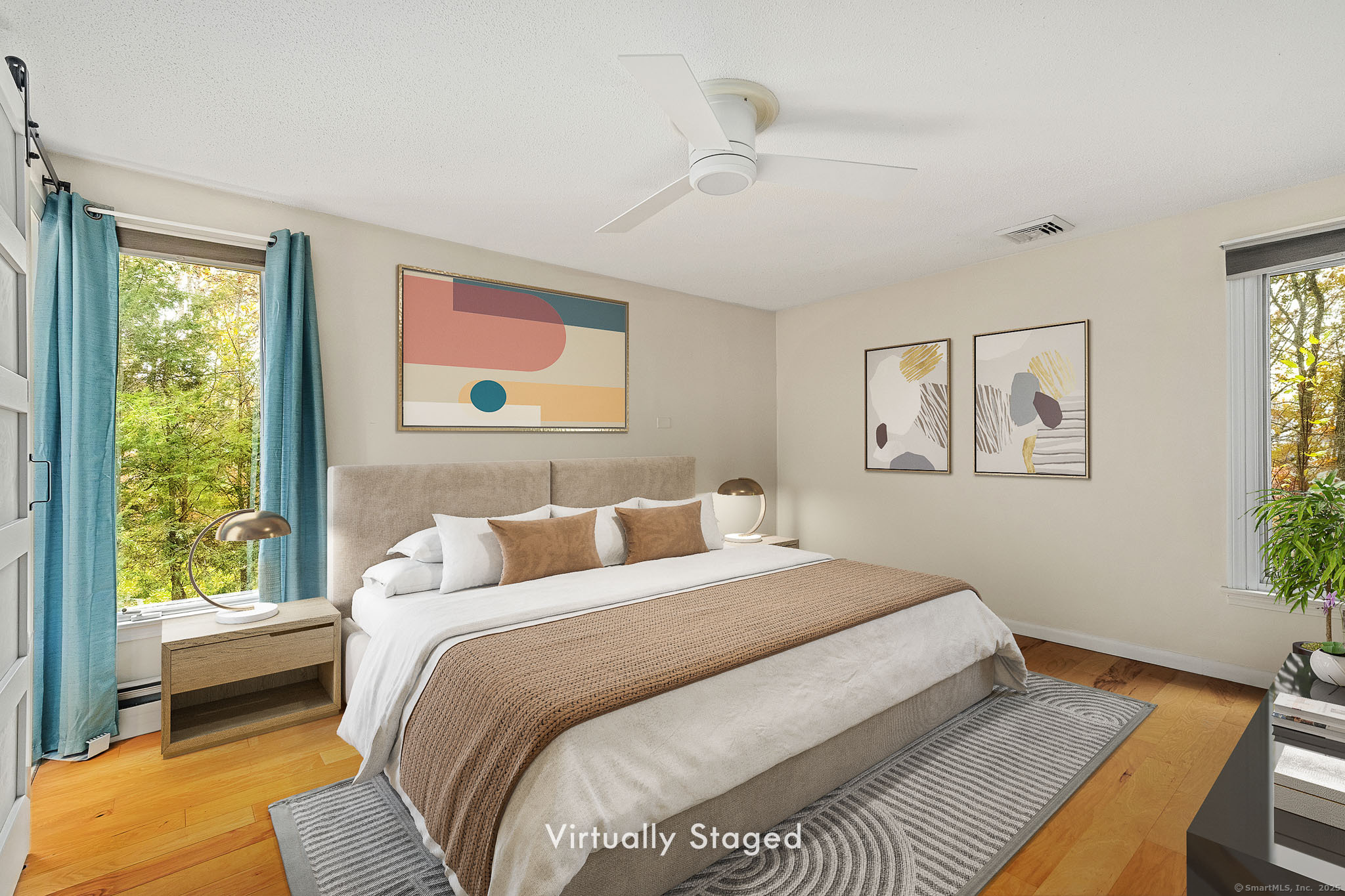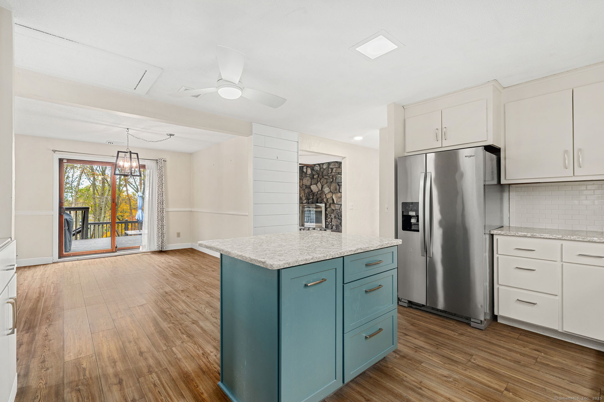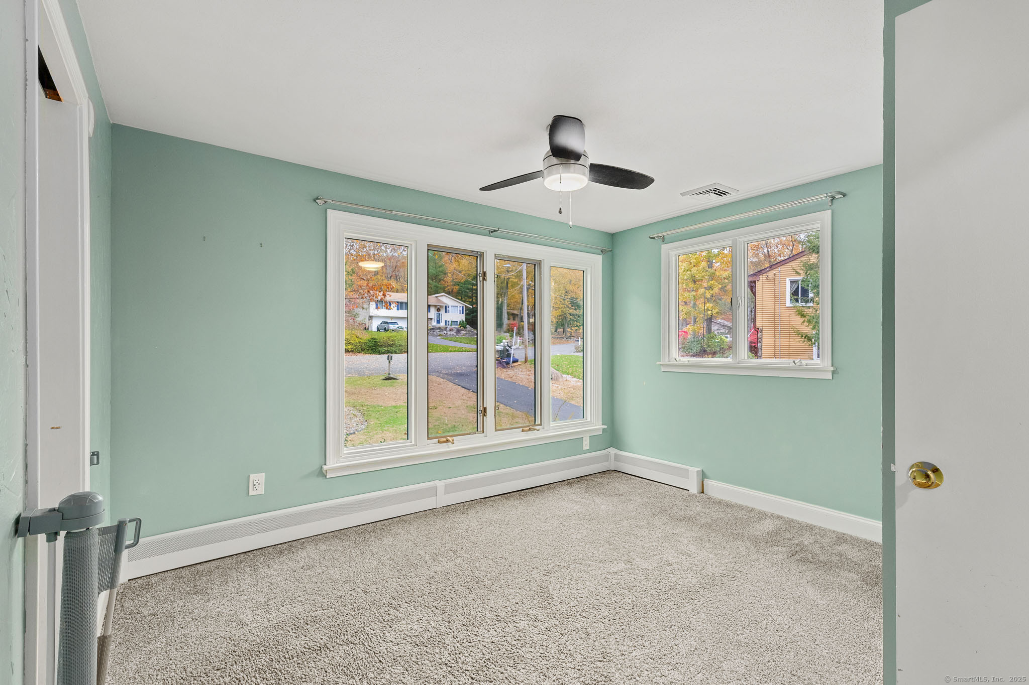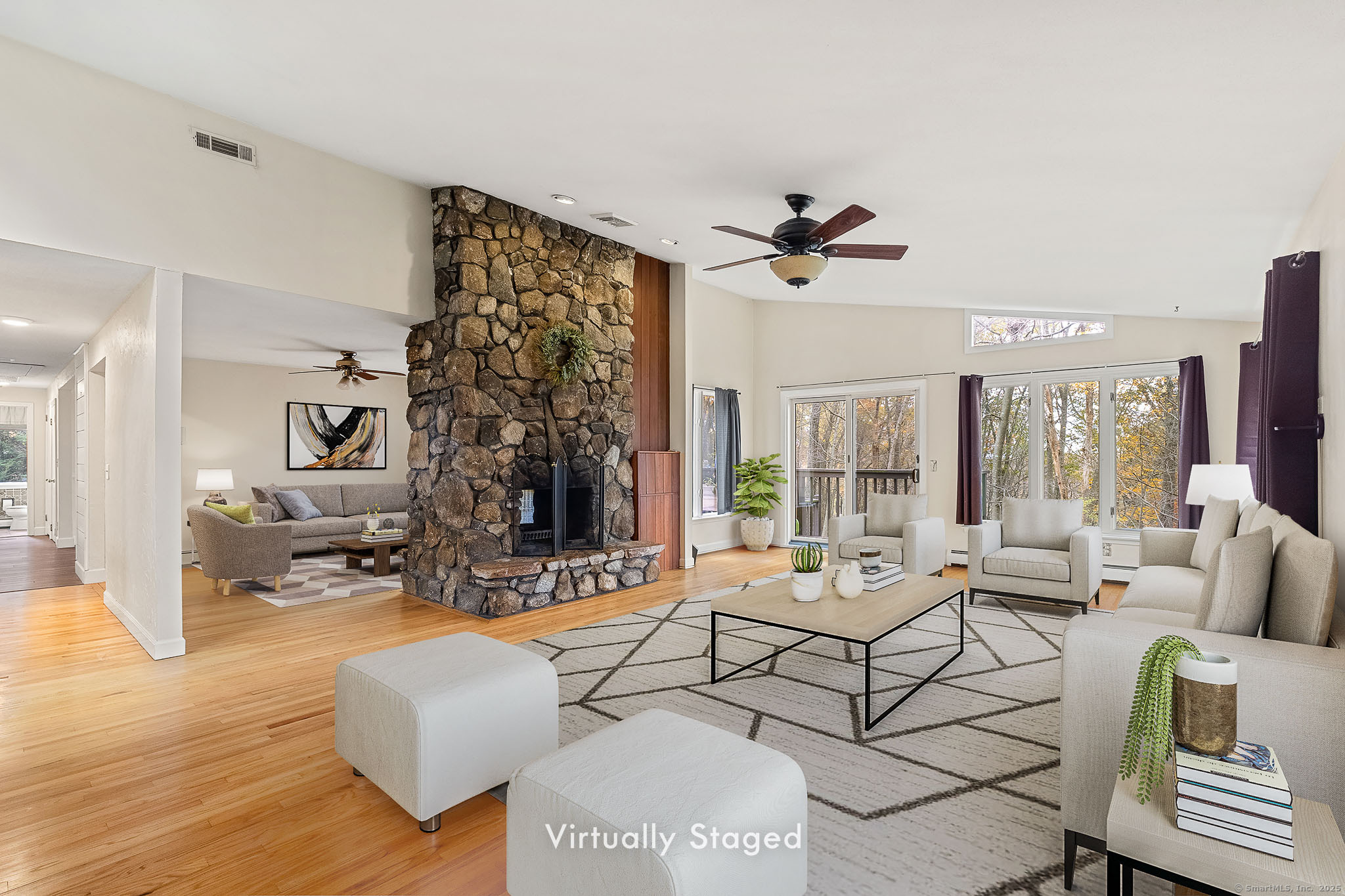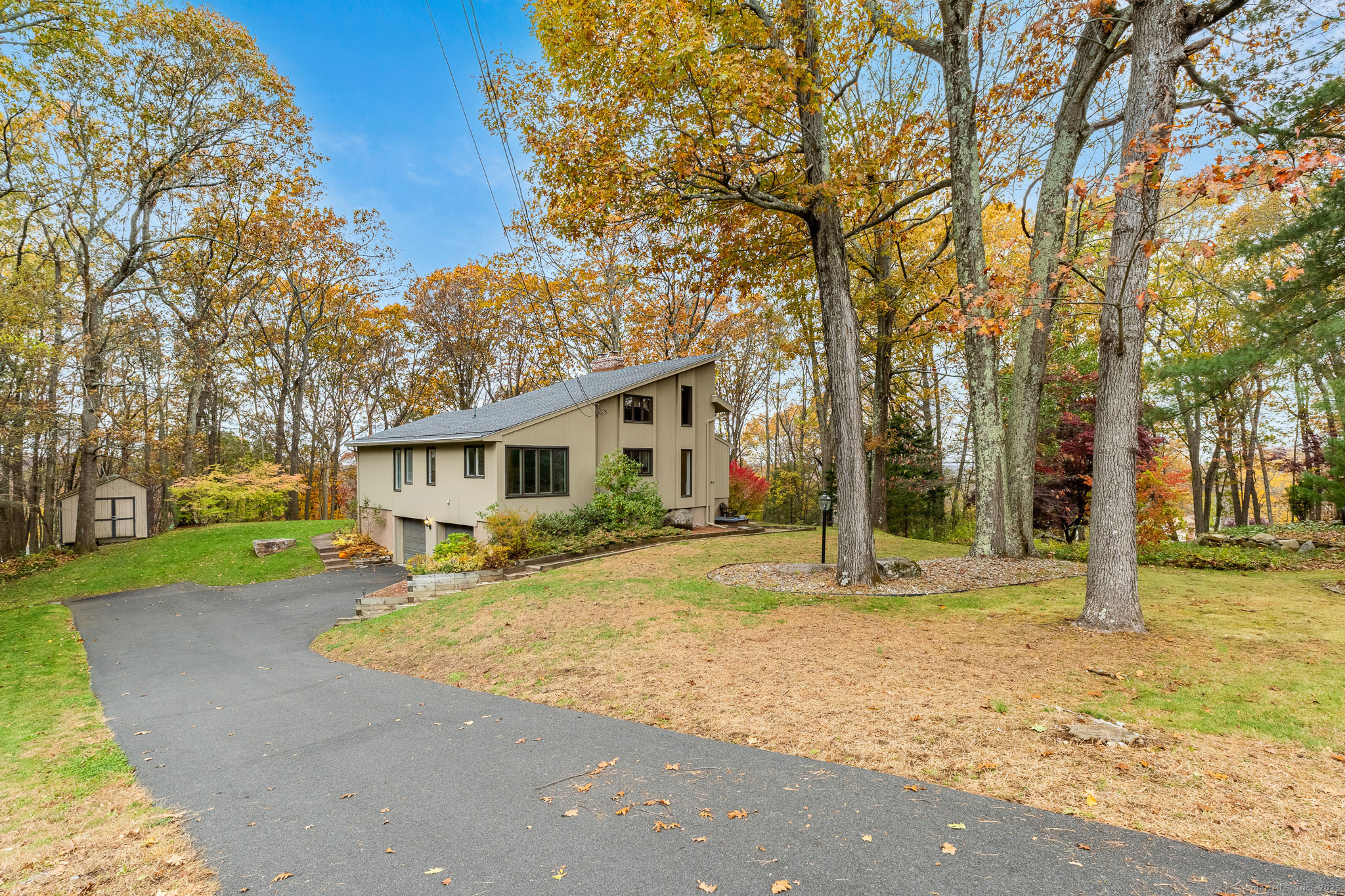 Welcome to this well-maintained 3-bedroom, 2.5-bath home on a lightly wooded corner lot in Vernon. Situated on a quiet street with a distant mountain view from the living area, this home features an under-house double garage and a spacious layout designed for comfortable everyday living. The main level offers a generous living room with oversized windows and a slider that opens to a back wooden two-level deck overlooking the backyard. A stone-accented fireplace serves as a focal point, adding warmth and character. The adjacent sitting and dining areas both open via sliders to the deck, providing excellent natural light and seamless indoor-outdoor flow. The kitchen features ample cabinetry and a center island for added workspace. On the main floor the primary bedroom includes its own full bath. There's also a versatile extra room currently used as an office, plus a convenient half bath. The lower level (basement) offers two good-sized bedrooms, a full bath, and direct access to the under-house double garage. Outside, the two-level deck overlooks a peaceful backyard-ideal for relaxation or entertaining-and a storage shed provides space for tools or outdoor equipment. Located just minutes from I-84, this home offers quick access to shopping, restaurants, schools, and local amenities along Hartford Turnpike and Talcottville Road.