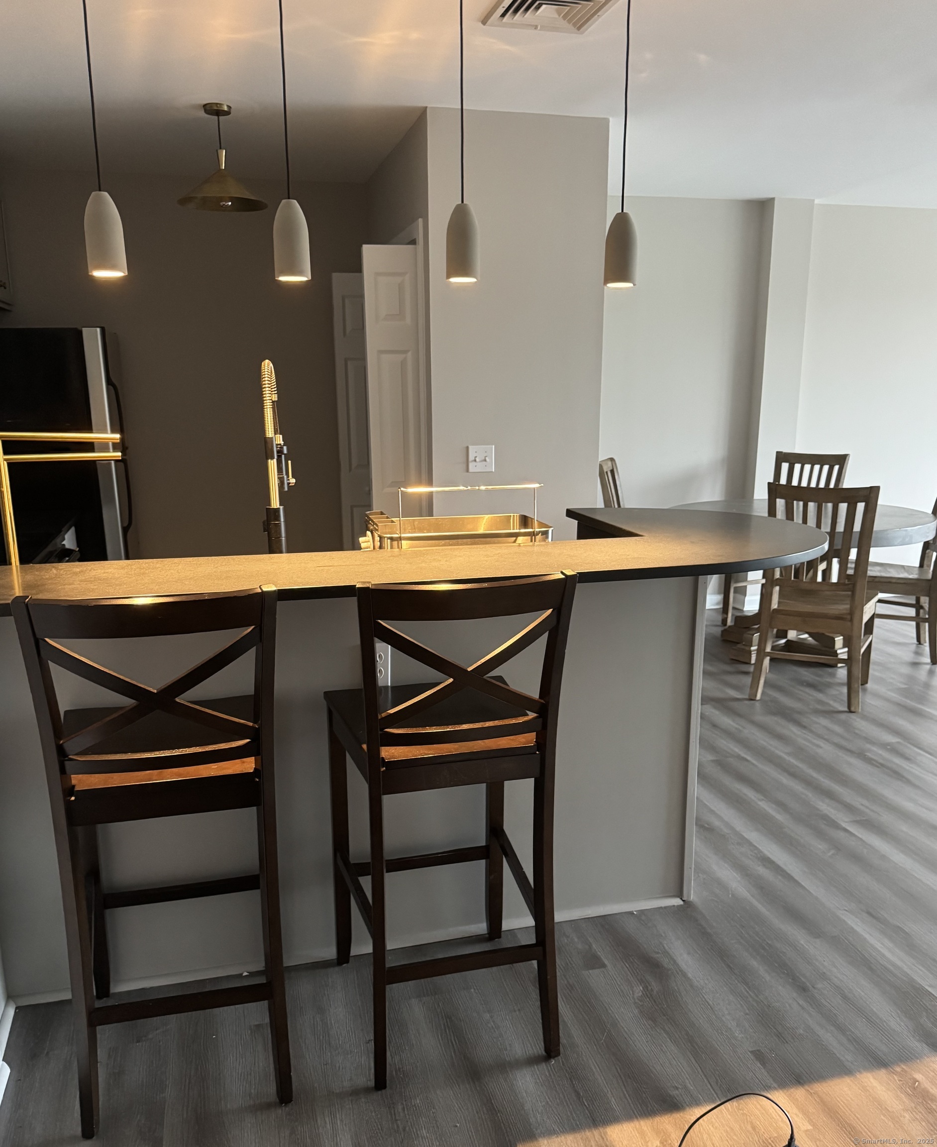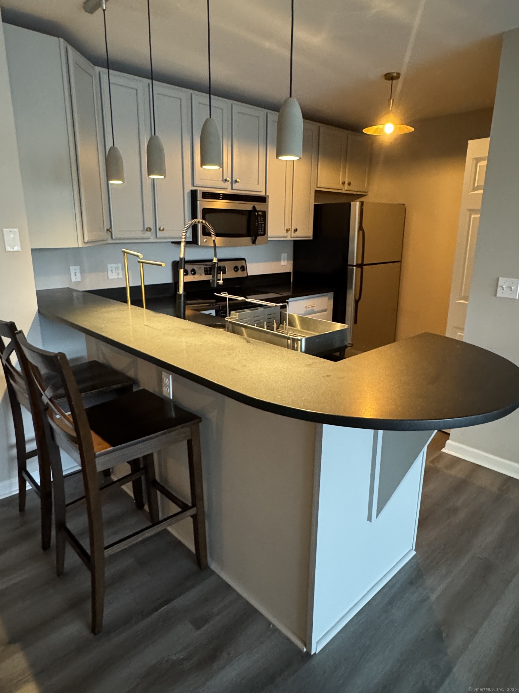 Beautiful renovated 1 BR, 1.5 bath apartment. Gas fireplace fully applianced unit. Stove, refrigerator, microwave, dishwasher, washer and dryer. Central location close to 95, the Merritt, Milford train station, shopping, groceries and mall. Private unit above Shoreline Dental Care in rear of building. Owner agent.