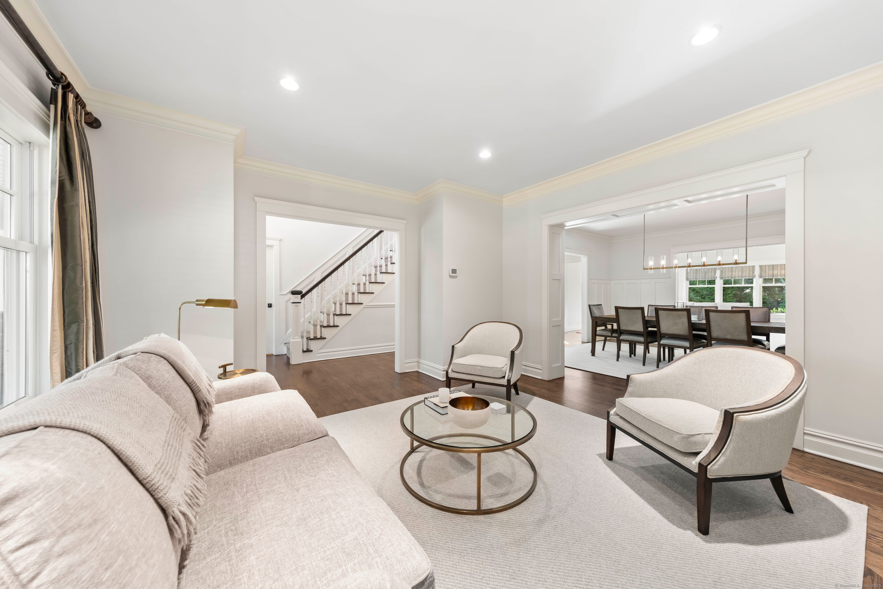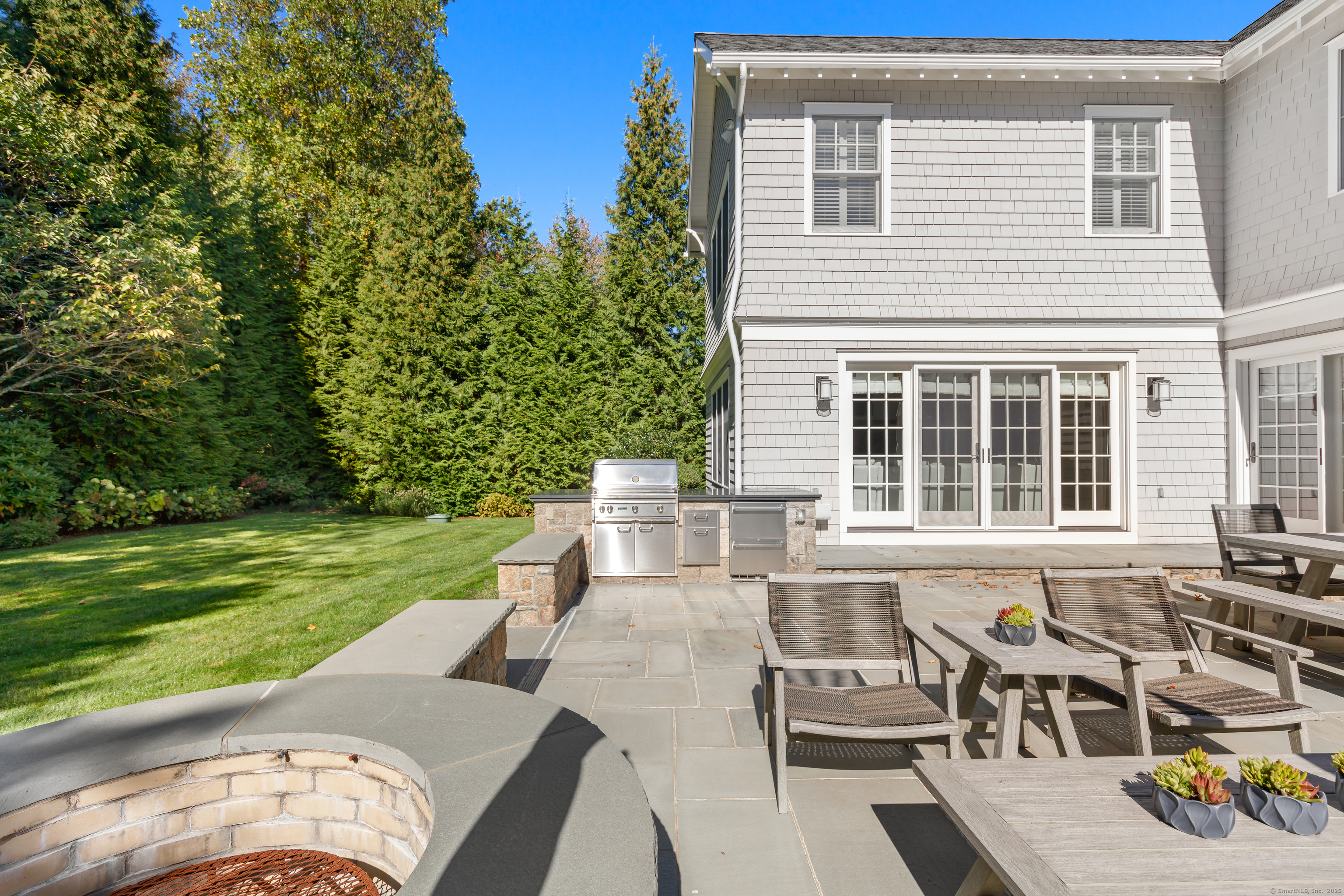 Nestled on a beautifully landscaped 0.35-acre lot, this stunning 5-bedroom, 5.5-bathroom home boasts 5,356 square feet of meticulously crafted living space that seamlessly combines sophistication with everyday comfort. Upon entering, you'll find expansive, sunlit interiors and a layout tailored to modern living. The home's core is designed for both leisurely living and grand entertaining, smoothly transitioning from formal rooms to casual gatherings. Key features include a state-of-the-art media room perfect for movie nights and game days, a fully equipped exercise room, and a private sauna and steam shower in the finished lower level. On the second floor, a spacious great room is perfect for play, hobbies, or relaxing with friends. The third floor offers a dedicated home office and a versatile fifth bedroom, ideal for guests, an au pair, or remote work. Outside, enjoy your private retreat. The professionally landscaped backyard is designed for memorable entertaining, featuring a bluestone patio, cozy firepit, built-in grill, and outdoor TV, making it perfect for hosting gatherings year-round. Hot tub is as is.