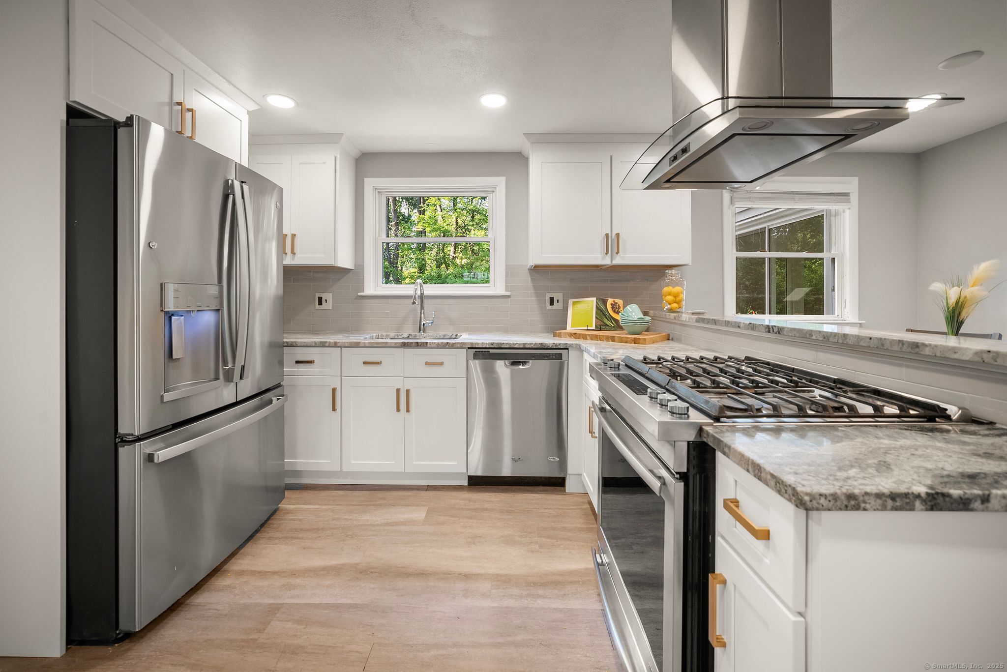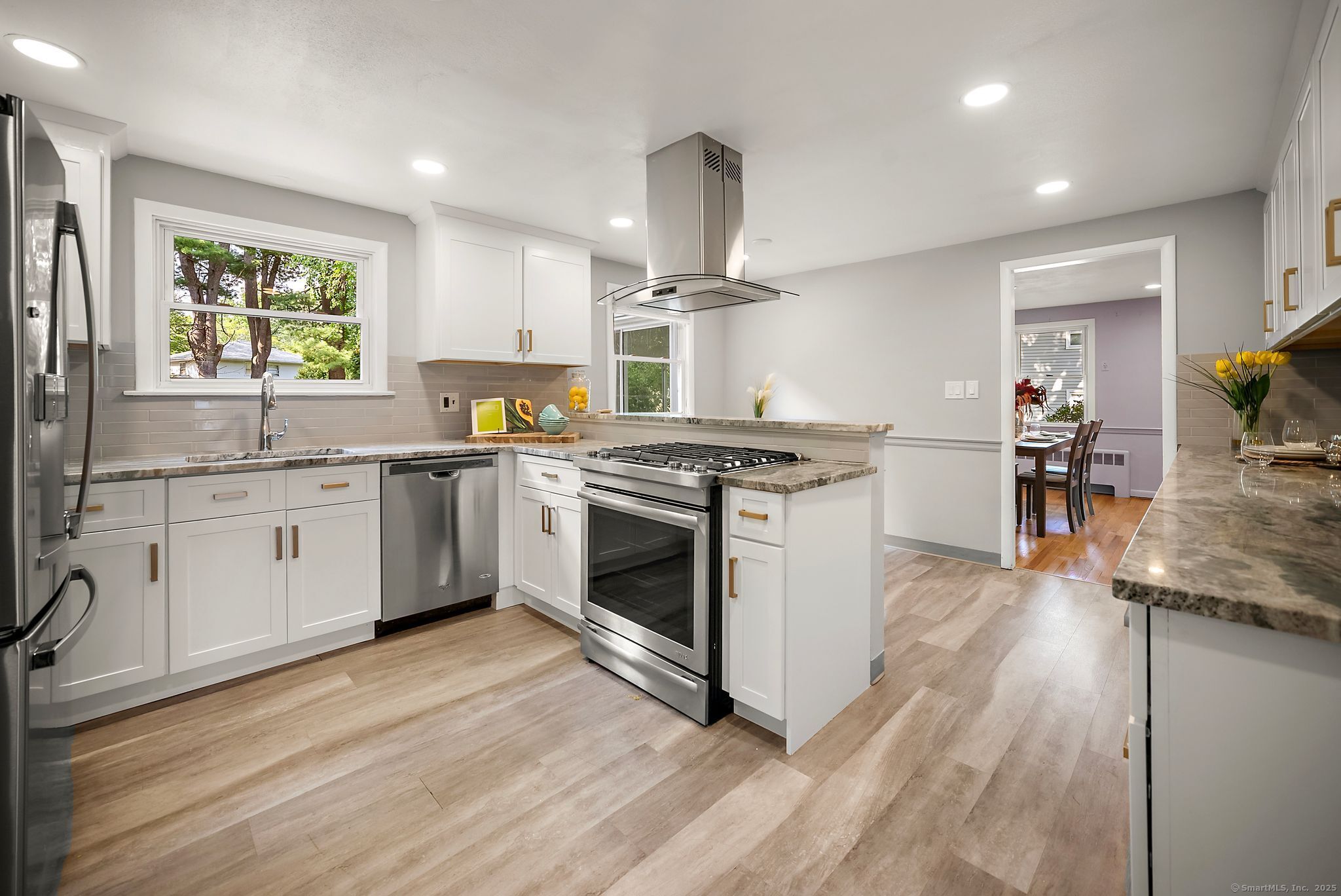 Welcome to 8 Tanglewood Road, available for rent in sought-after West Hartford! Just steps away from King Philip Middle School and minutes to Bishops Corner, the location can't be beat. The heart of the home is a stunning, newly renovated eat-in kitchen featuring granite countertops, stainless steel appliances, a stylish tile backsplash, and crisp white shaker cabinets. The formal living room with wood-burning fireplace and bay window, spacious dining room, flexible office/playroom with built-ins, laundry room, and half bathroom complete the first floor.Upstairs, enjoy newly refinished hardwood floors and a refreshed primary suite with an updated bathroom boasting a tile shower and a modern vanity. There are three additional spacious bedrooms and an updated full bathroom, along with built-ins and a walk-in hall closet. Much of the home has been freshly painted, creating a light and inviting atmosphere throughout.A finished basement adds flexible living space perfect for a family room, office, or gym. Solar panels offer built-in value by providing predictable energy savings and protection against rising utility costs.Move right in and enjoy comfort, style, and convenience in one of West Hartford's most desirable neighborhoods!