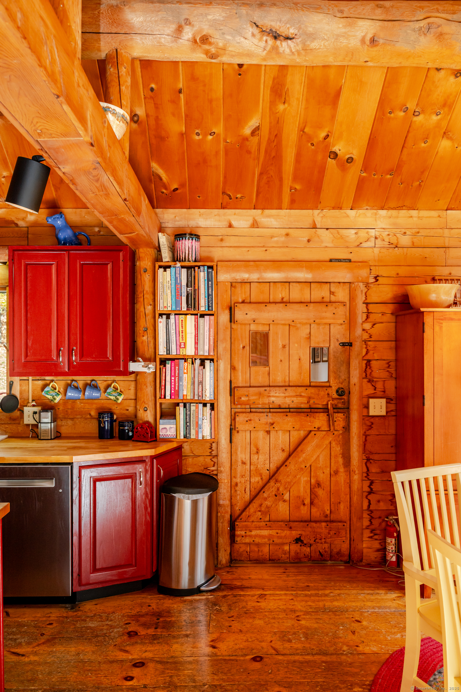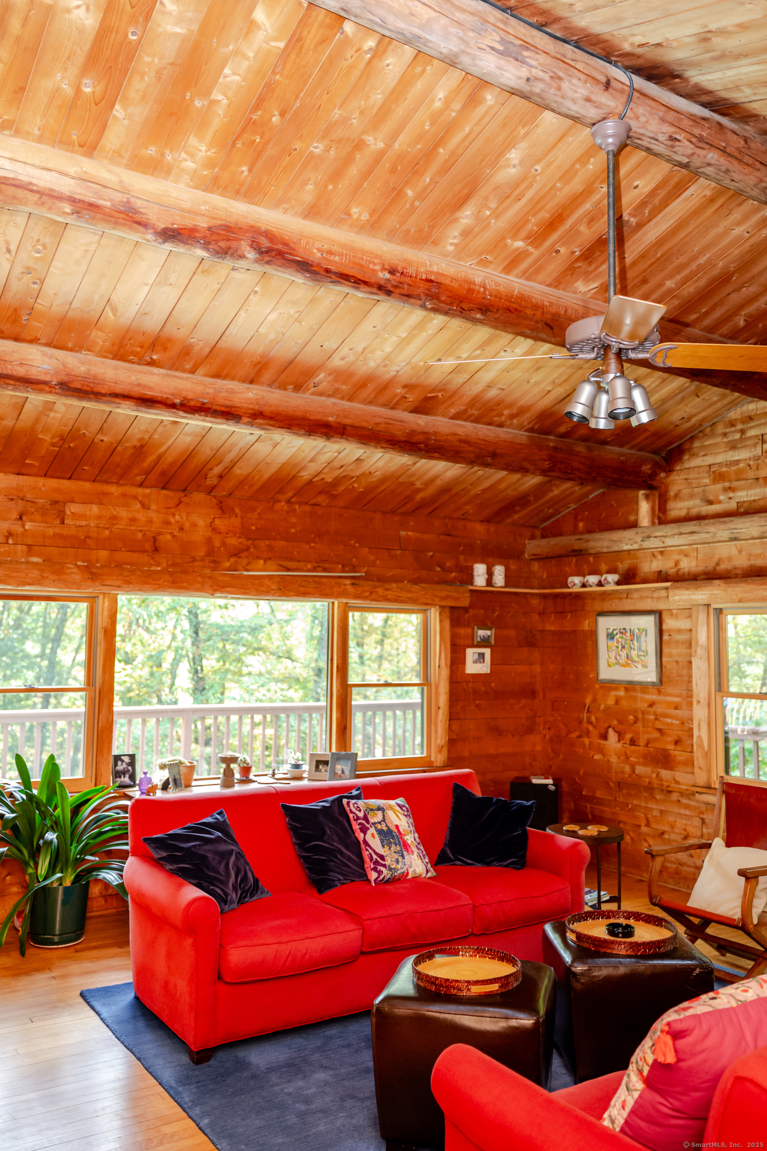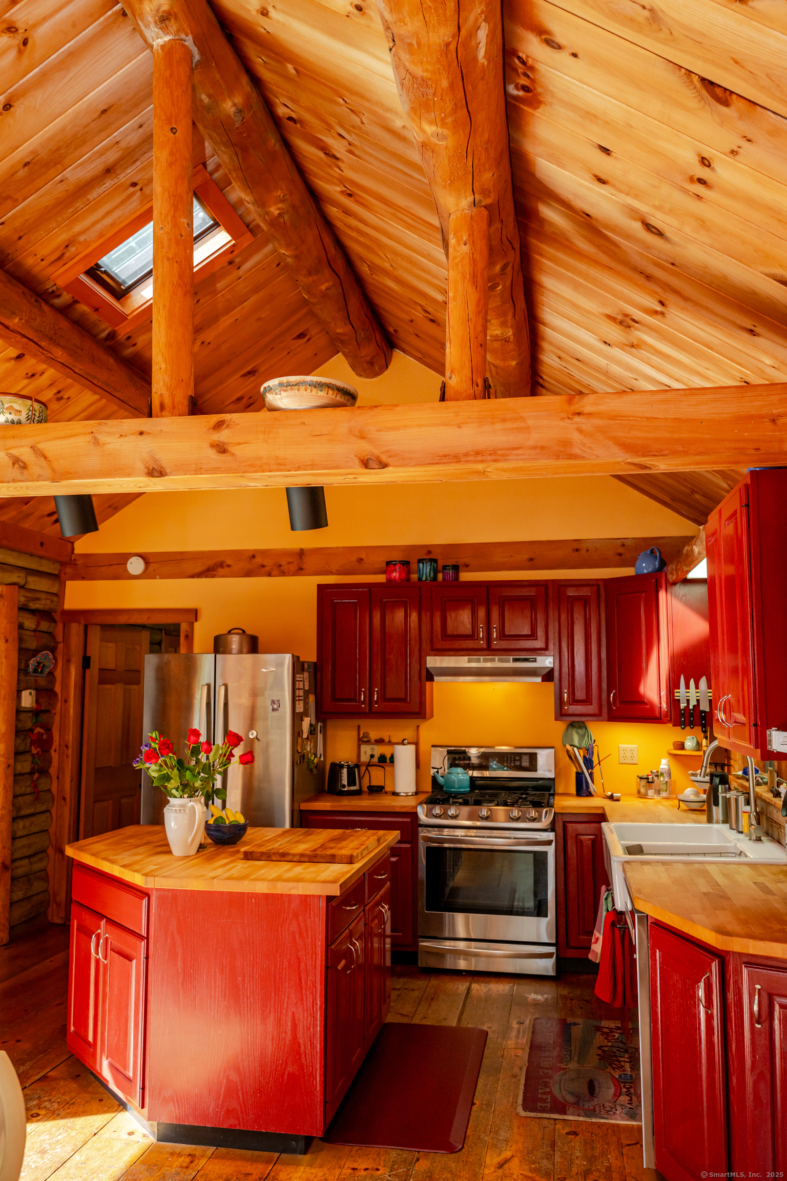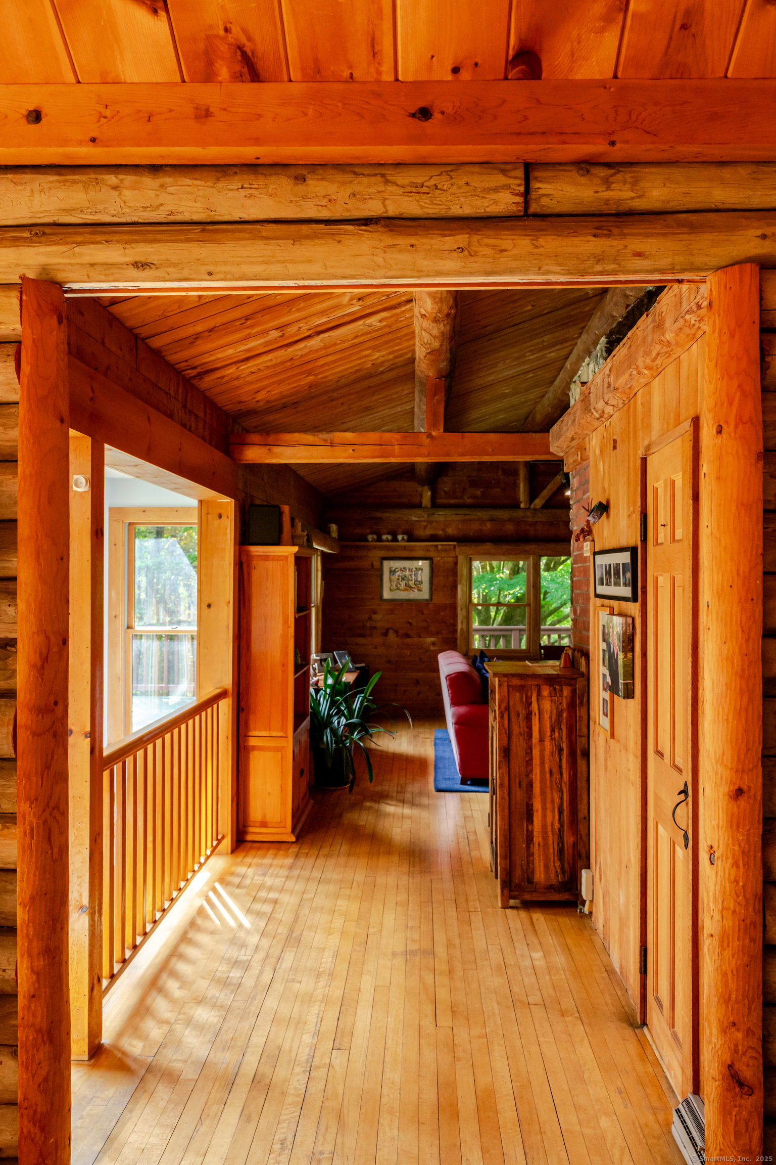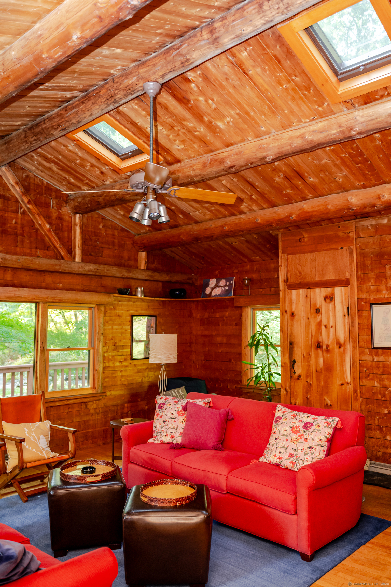 Don't be fooled by first glances, When you pull into the driveway you will see a sweet log home in a peaceful and private landscape, what you don't see is the large newer thoughtful Architect designed addition on the north side of the house. This is the heart of Sherman, a short walk to the store, school, park and library. Charm and character through out ! There is a country kitchen with lots of light, it is a joyful space to create and dine in. The great room, also filled with light, has a soaring stone fireplace. The screen sun porch is the perfect place for a lazy summer nap and for warm weather entertaining. There is a mud room/coat area tucked behind the great room. The large master has an ensuite bath and walk in closet decked out with drawers and shelving. The second bedroom also has an ensuite bathroom. And the third bedroom has a door directly into a bathroom.The basement is HUGE, lots of room for storage and a workshop. The seasonal mountain views are inspiring!
