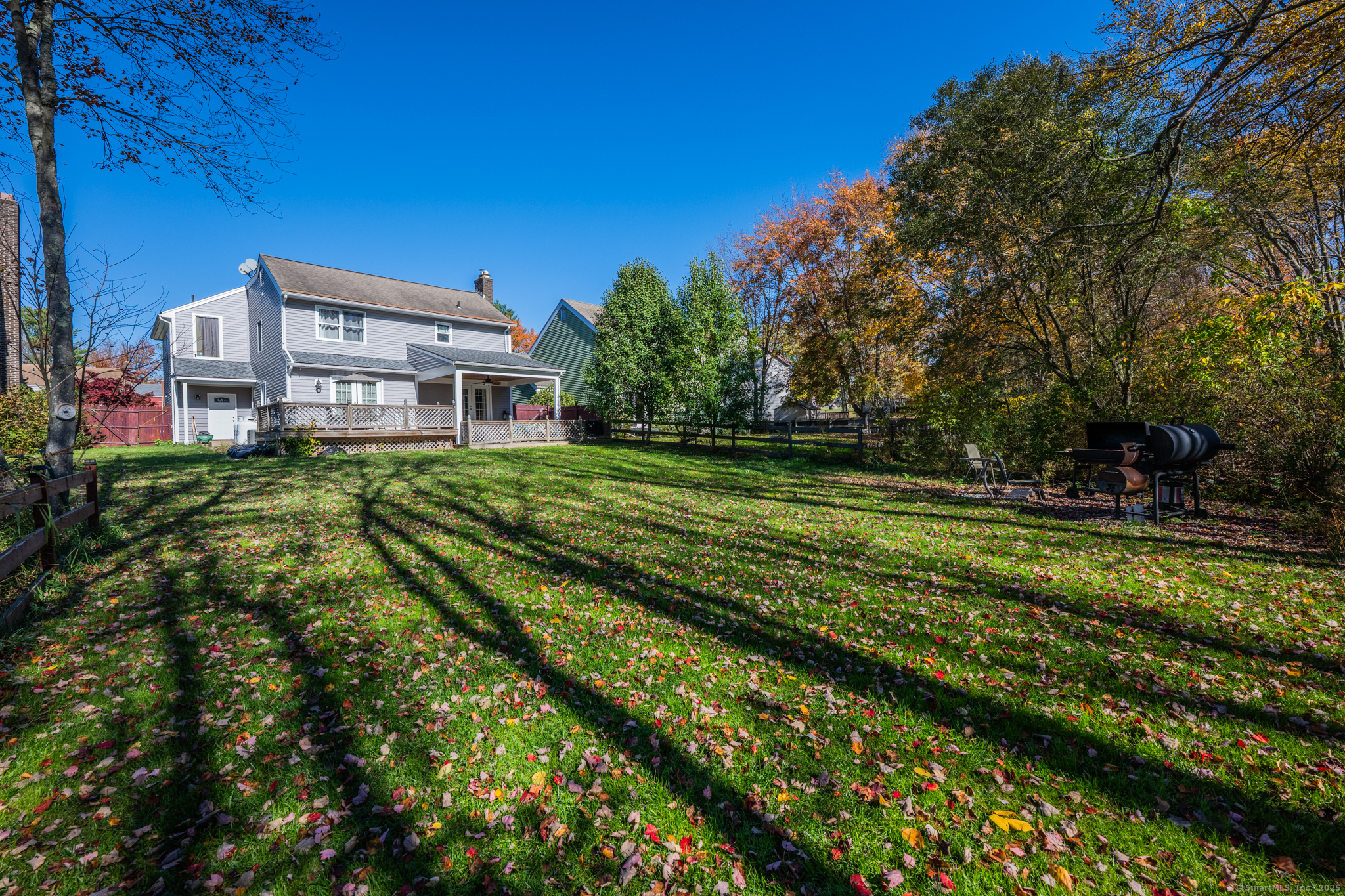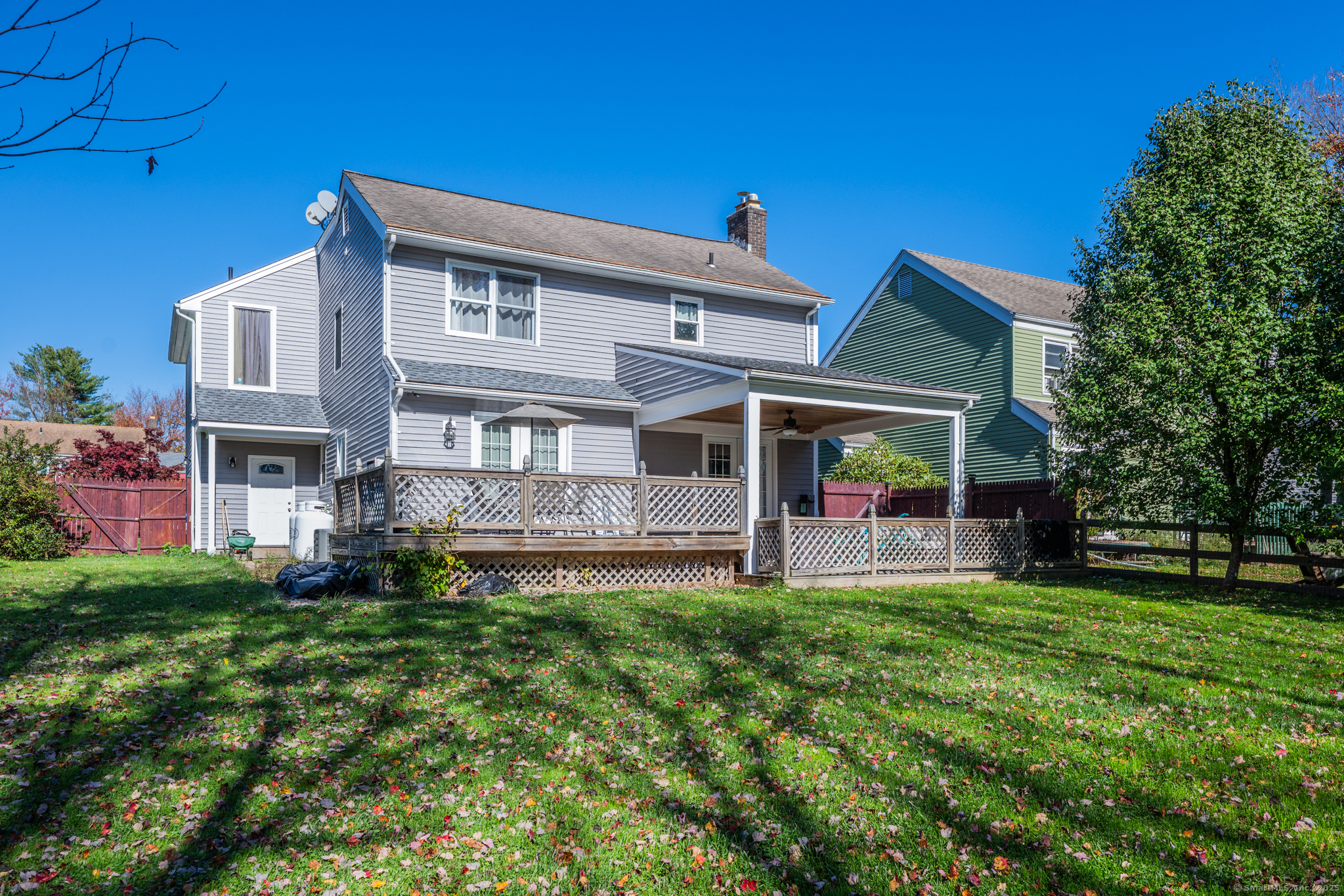 Just in time to enjoy all the holidays with family and friends in this spacious 3 bed, 2.5 bath Colonial with just over 2,000 sqft located on a desirable cul-de-sac. All your guests will be in awe when they enter the beautiful foyer with vaulted ceiling that leads to the open concept kitchen and dining room. The center island provides extra cabinet and counter space and makes cooking for guests a breeze with easy access to the back deck during the outdoor seasons. Granite counters, timeless subway tile backsplash and stainless steel appliances make this kitchen shine. Gleaming hardwood floors throughout and lots of natural light flow into the living room with wood burning fireplace and walkout to the covered portion of the large deck overlooking the level, treed backyard. A half bath and 2 car attached garage complete the main level. Upstairs features a stunning master bedroom with cathedral ceiling, sitting nook, his and hers closets and a dedicated bathroom with stand up shower and separate tub. 2 other spacious bedrooms and a second full bath complete the upper level. What can you do with the partially finished basement? Office, man cave, study, playroom...bring your ideas! Additional features include a built in generator hookup for convenience if power goes out, vinyl double pane windows, propane heat for easy maintenance, and even a park that is for the neighborhood residents only.