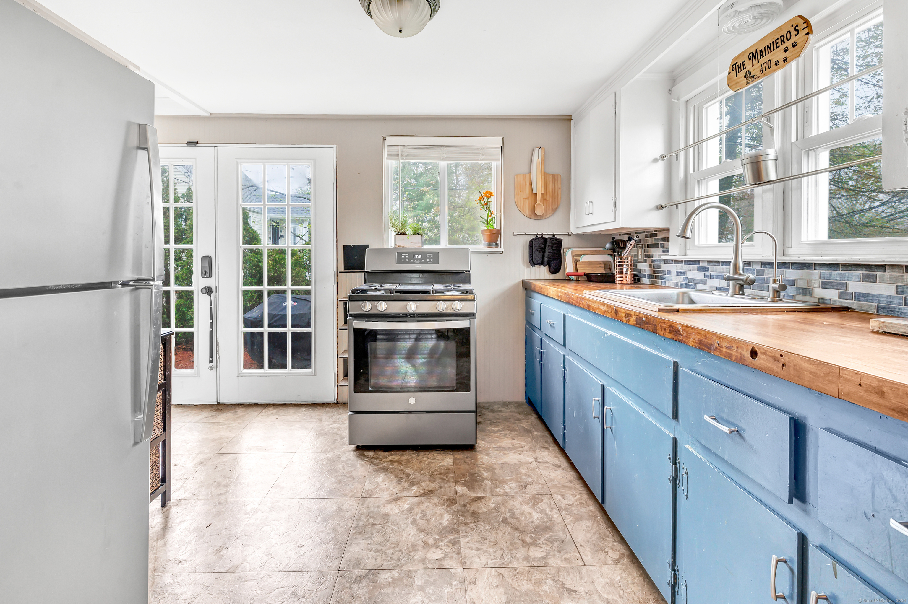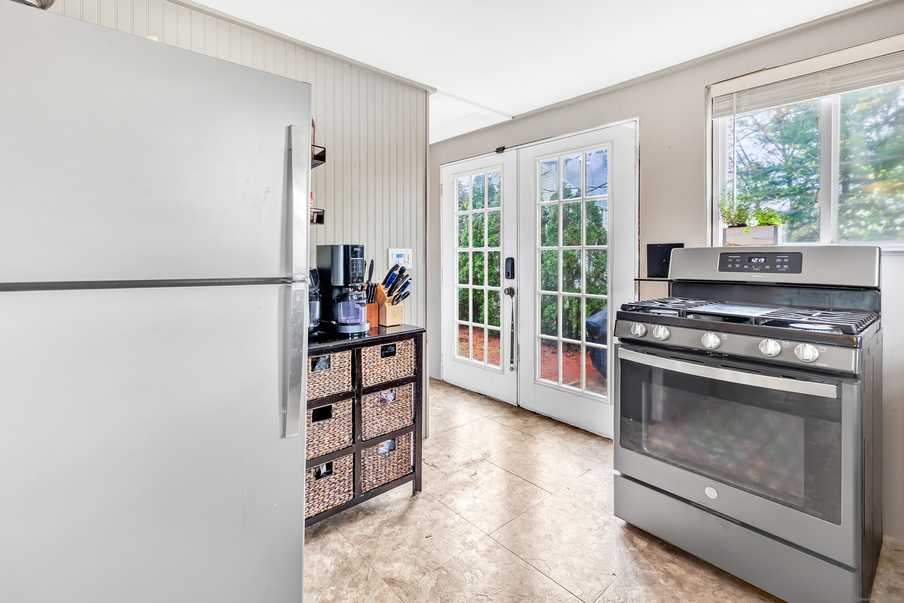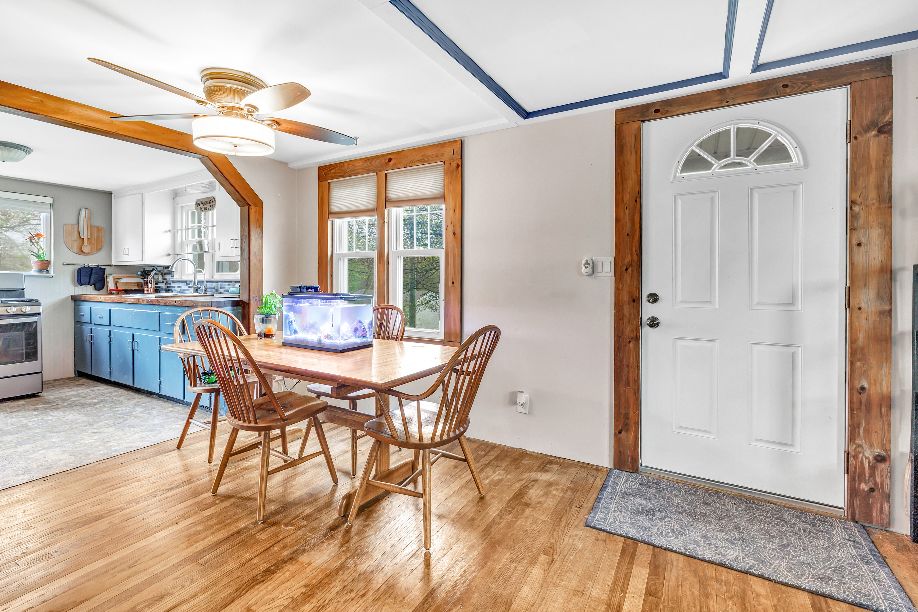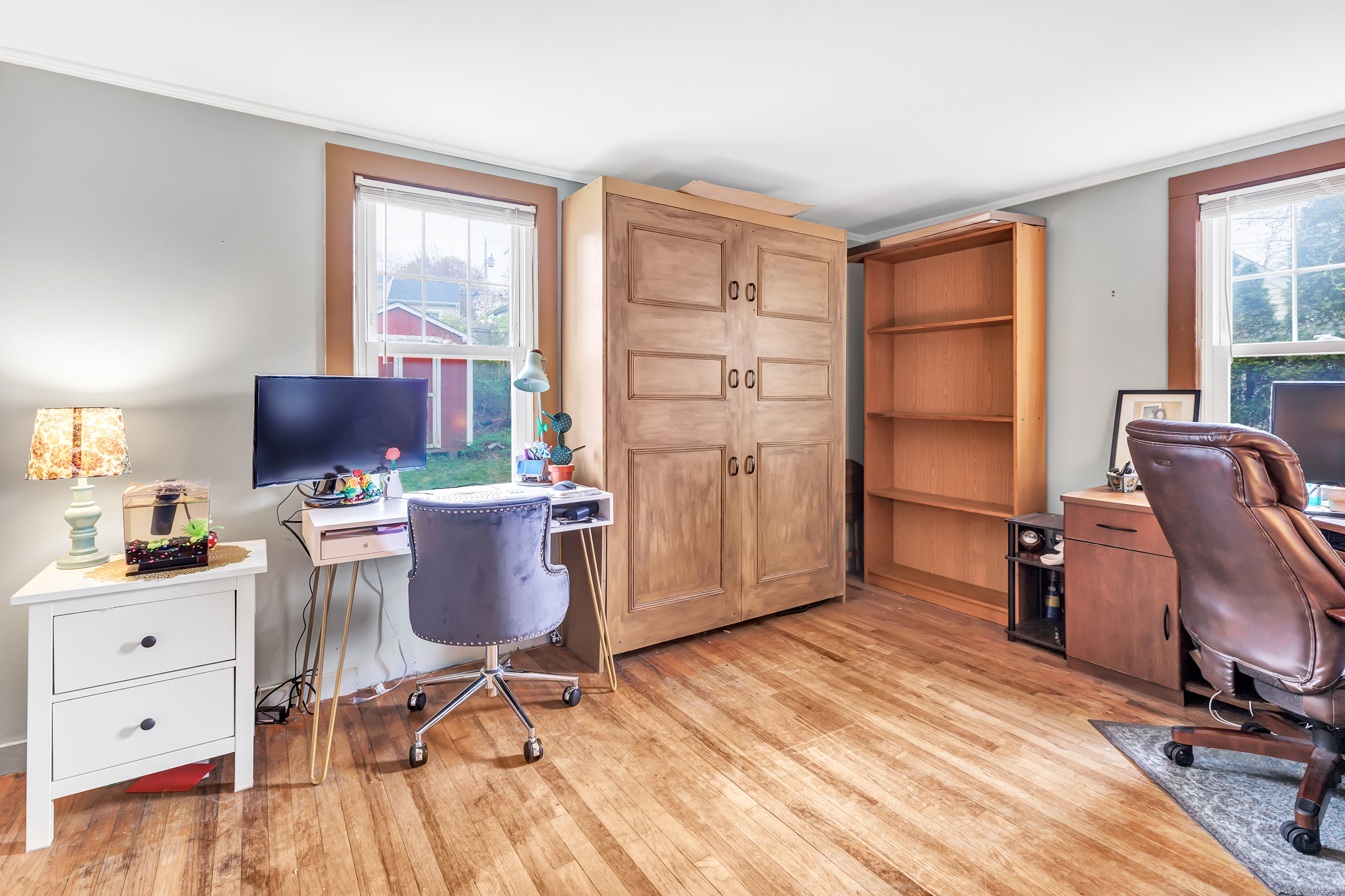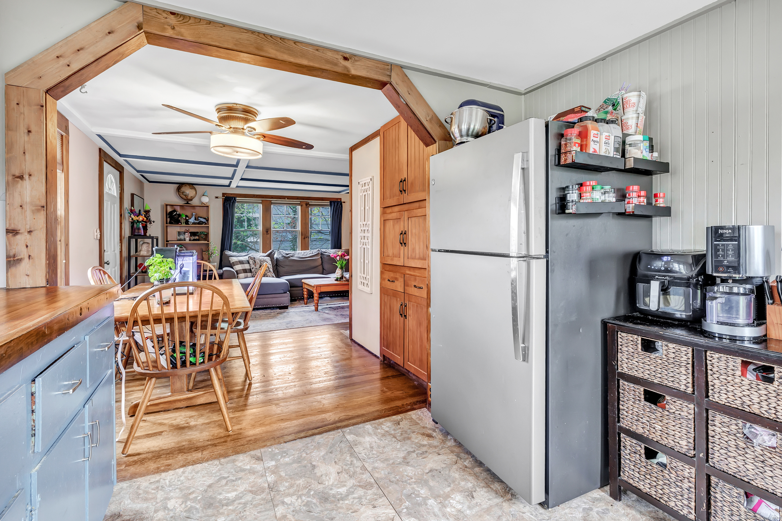 Tucked away at the quiet end of Pond Point Avenue, this charming 2-3 bedroom home offers coastal living with everyday convenience. Just a short walk to Point Beach, Morningside Beach, and local restaurants, and minutes to downtown Milford, I-95, and the train station, it's perfectly situated for accessible coastal life. Sunlight fills the spacious living room with a wood-burning fireplace and handcrafted woodwork, including molding, coffered ceilings, and custom kitchen cabinetry. The dining area opens to a kitchen with stainless steel appliances, butcher block counters, a built-in pantry, and access to the unfinished lower level. The main floor includes a primary bedroom with space for a king bed and a second bedroom with a built-in Murphy bed, plus a full bath. Hidden behind a cleverly designed door, stairs lead to a finished attic-perfect as a third bedroom, office, or cozy retreat. French doors off the kitchen open to a fully fenced backyard with a patio, garden planters, and a large shed. With its thoughtful layout, inviting character, and prime location, 470 Pond Point Avenue is ready to welcome its next owner.