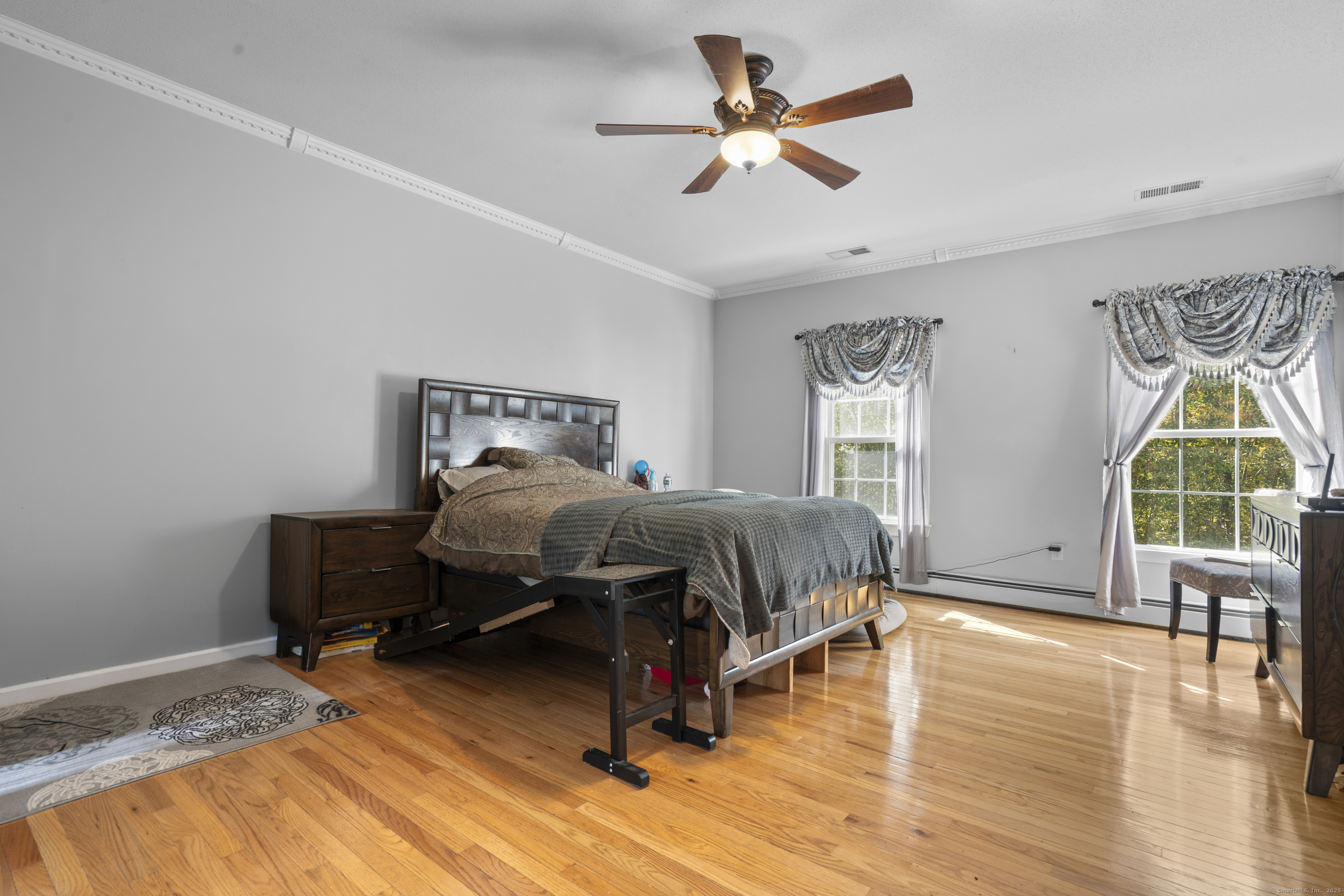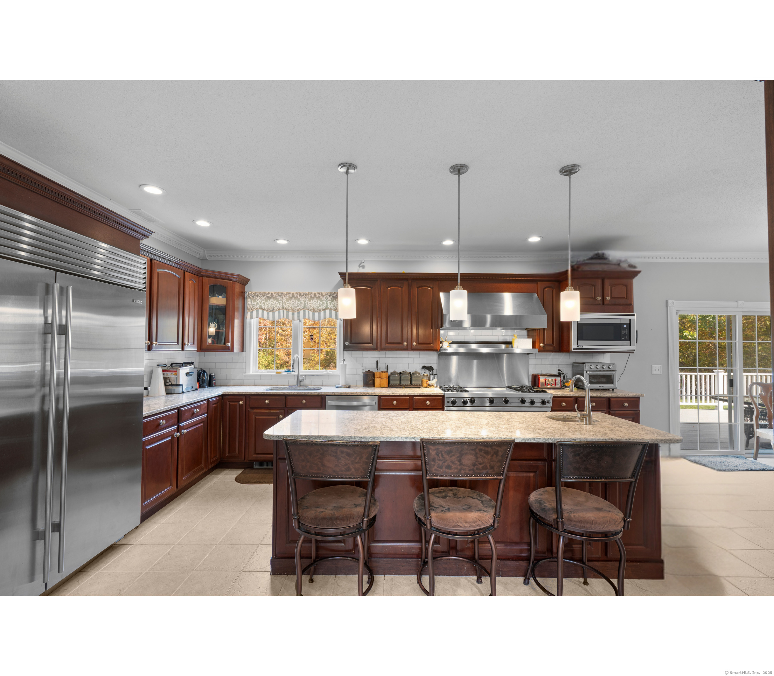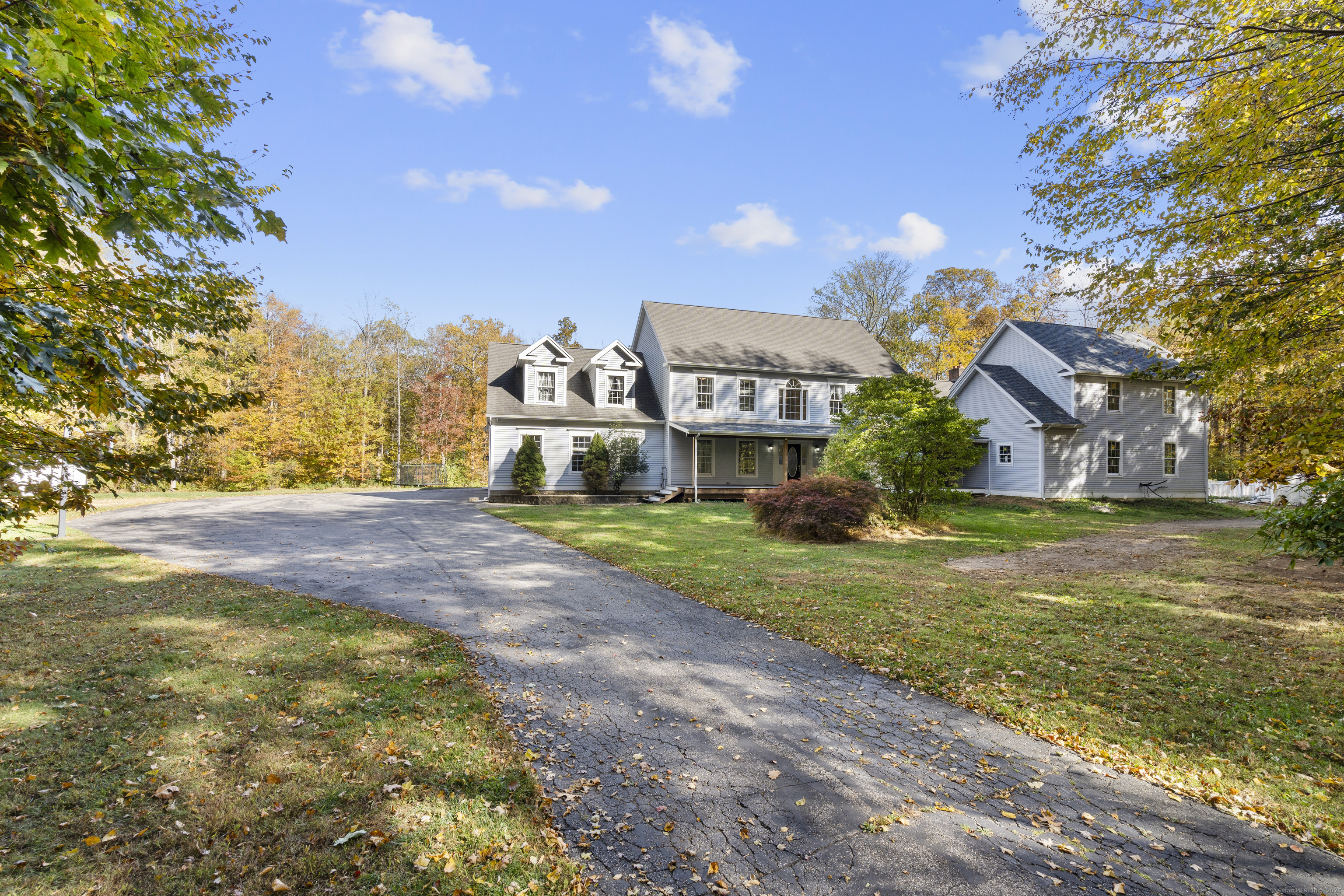 Set on 6.16 acres across two separate lots, A fully attached legal in-law/ADU with full sized kitchen, 2 bathrooms, oil heat, mini-split hookups, and separate entrance offers flexible living or income potential. This property delivers privacy, elegance, and versatility in a highly desirable location in Farmwood neighborhood of Colchester. Inside, a grand two-story foyer with custom trim and molding and hardwood floors sets the tone. The main level offers a formal dining room with Waterford chandeliers and French doors, a sitting room, family room, and laundry area. The chef's kitchen features cherry cabinetry, granite counters, a center island, Viking appliances & oversized Sub-Zero fridge, and a commercial-grade gas stove and double oven w/ heat lamps, flowing into a 26' x 26' great room with cathedral ceilings, and oversized windows. Upstairs, the primary suite includes a jacuzzi tub, tiled walk-in shower with bench, and double vanities. Four additional bedrooms and another full bath complete the upper level. A pellet stove fireplace on the main floor, while a gas fireplace in the finished basement creates a cozy retreat. Extras include central air, propane for hot water and cooking, oil heat, outdoor shower, enormous treks deck with a enormous hot tub, 3-car garage, parking for 10+ cars, and 1,480 sq ft finished lower level with office room.The ADU's square footage has not been updated on the property card but is not yet reflected in the total living area sqft