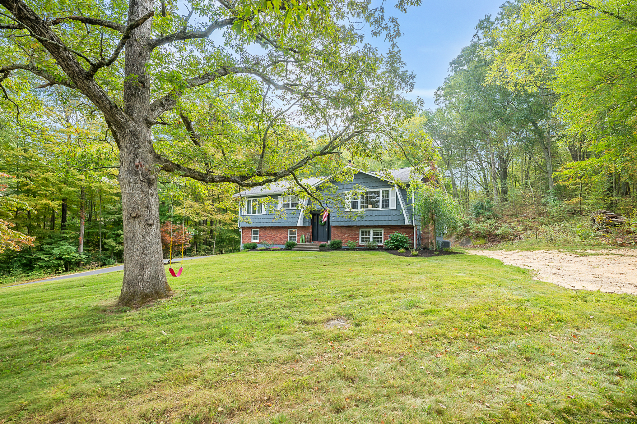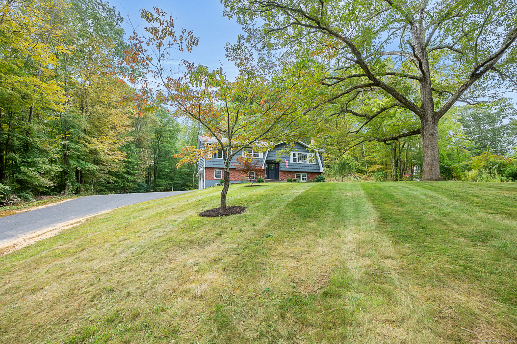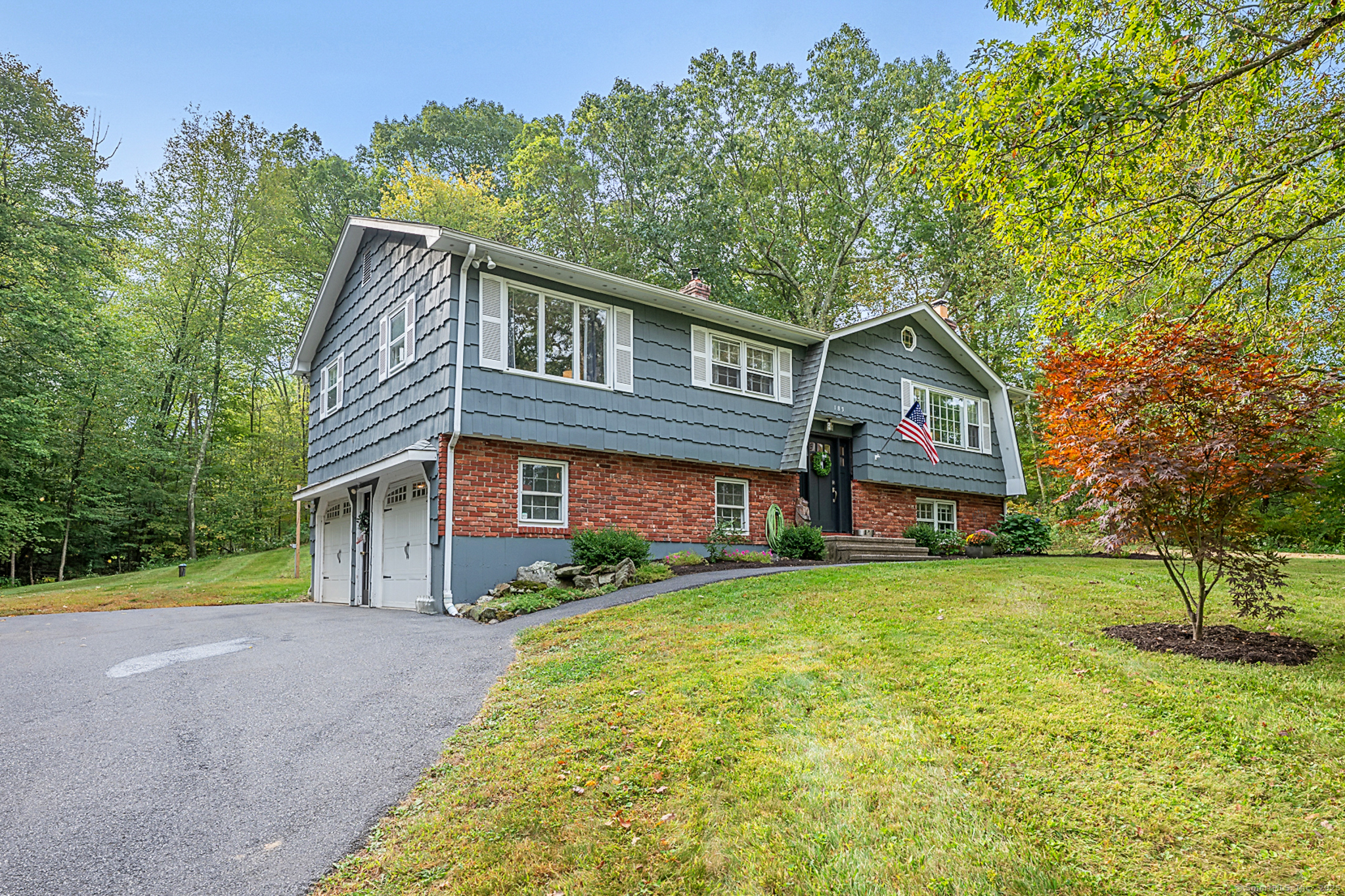 Set at the top of a private driveway, this tastefully updated raised ranch offers comfort, style, and the perfect blend of indoor and outdoor living. Nestled against a peaceful natural backdrop, this home features a thoughtfully designed layout and modern upgrades throughout. The heart of the home is the sunny kitchen, complete with granite countertops, a breakfast bar, and an open flow into the dining room. Sliders lead out to private decks-ideal for relaxing or entertaining. The spacious living room boasts a charming bay window and a cozy fireplace with a wood-stove insert, creating a warm and inviting atmosphere. The main level features hardwood and tile flooring throughout, a stylishly renovated full bathroom, and three well-sized bedrooms. The primary bedroom includes its own full bath with a pedestal sink and stand-up shower for added comfort. Downstairs, the finished lower level expands your living options with luxury vinyl plank flooring and a second fireplace-also with a wood-stove insert-making it the perfect space for guests, remote work, learning, or entertaining. Additional highlights include central air conditioning, a newly painted deck, new front door, and new garage doors. Conveniently located in close proximity to all that Southbury and nearby Oxford have to offer, including shopping, dining, parks, and commuter routes-this move-in ready home combines comfort, functionality, and a beautiful natural setting.