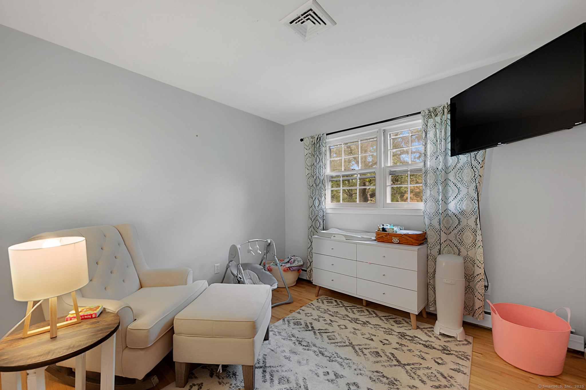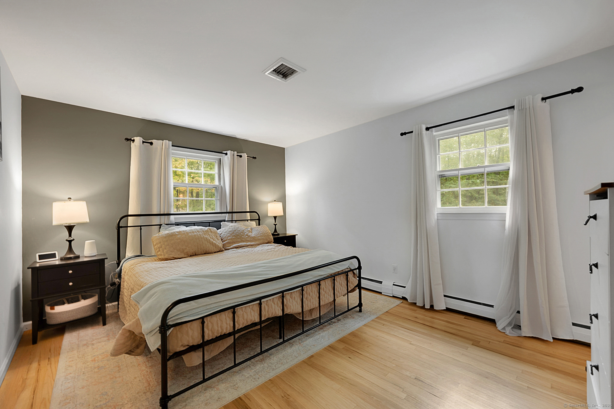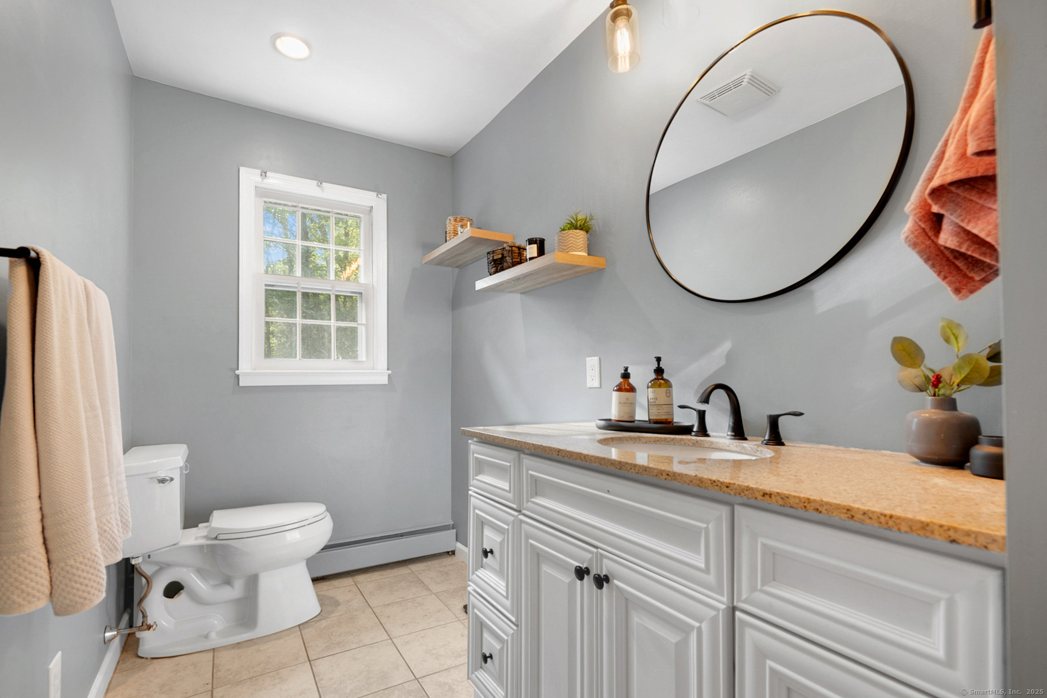 Set at the top of a private driveway, this tastefully updated raised ranch offers comfort, style, and the perfect blend of indoor and outdoor living. Nestled against a peaceful natural backdrop, this home features a thoughtfully designed layout and modern upgrades throughout. The heart of the home is the sunny kitchen, complete with granite countertops, a breakfast bar, and an open flow into the dining room. Sliders lead out to private decks-ideal for relaxing or entertaining. The spacious living room boasts a charming bay window and a cozy fireplace with a wood-stove insert, creating a warm and inviting atmosphere. The main level features hardwood and tile flooring throughout, a stylishly renovated full bathroom, and three well-sized bedrooms. The primary bedroom includes its own full bath with a pedestal sink and stand-up shower for added comfort. Downstairs, the finished lower level expands your living options with luxury vinyl plank flooring and a second fireplace-also with a wood-stove insert-making it the perfect space for guests, remote work, learning, or entertaining. Additional highlights include central air conditioning, a newly painted deck, new front door, and new garage doors. Conveniently located in close proximity to all that Southbury and nearby Oxford have to offer, including shopping, dining, parks, and commuter routes-this move-in ready home combines comfort, functionality, and a beautiful natural setting.