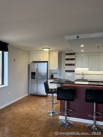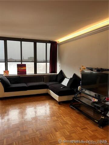 Bushnell on the Park 2 bedroom,2 bath unit on 8th floor - corner unit with views of Bushnell Park and Capitol. Laundry on each floor, 24 hr security. Gym on first floor. Parking for one car in underground garage.