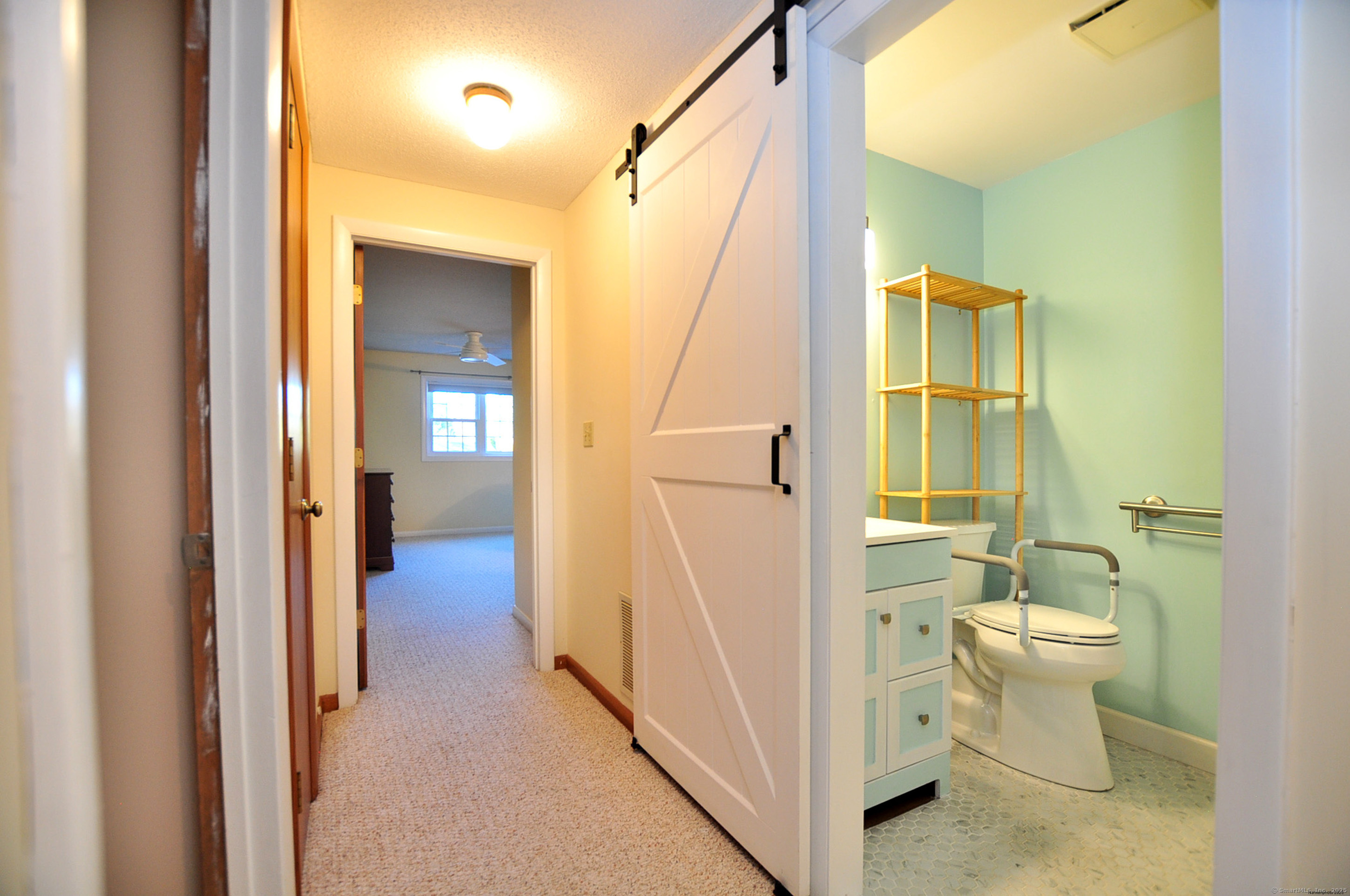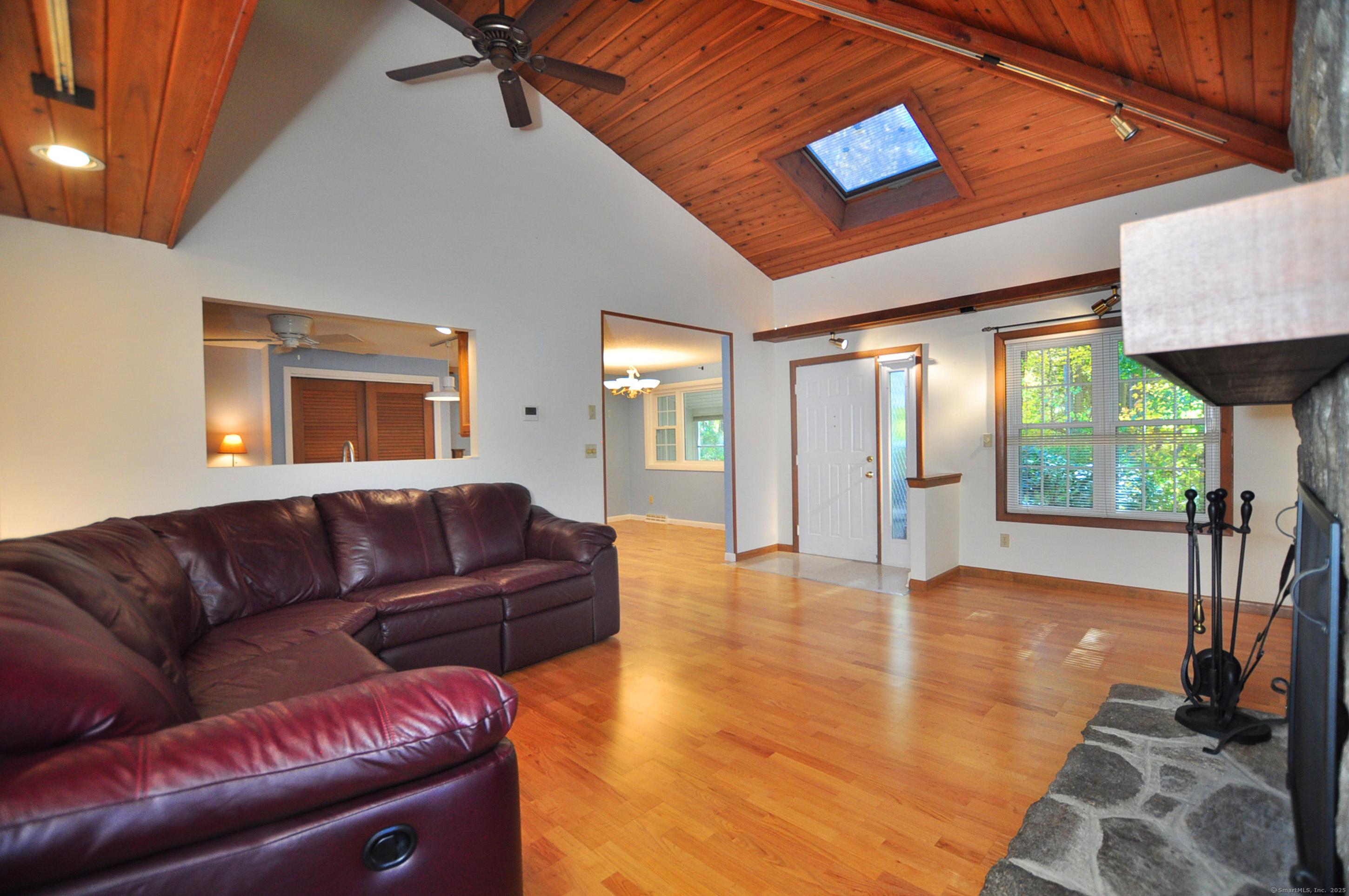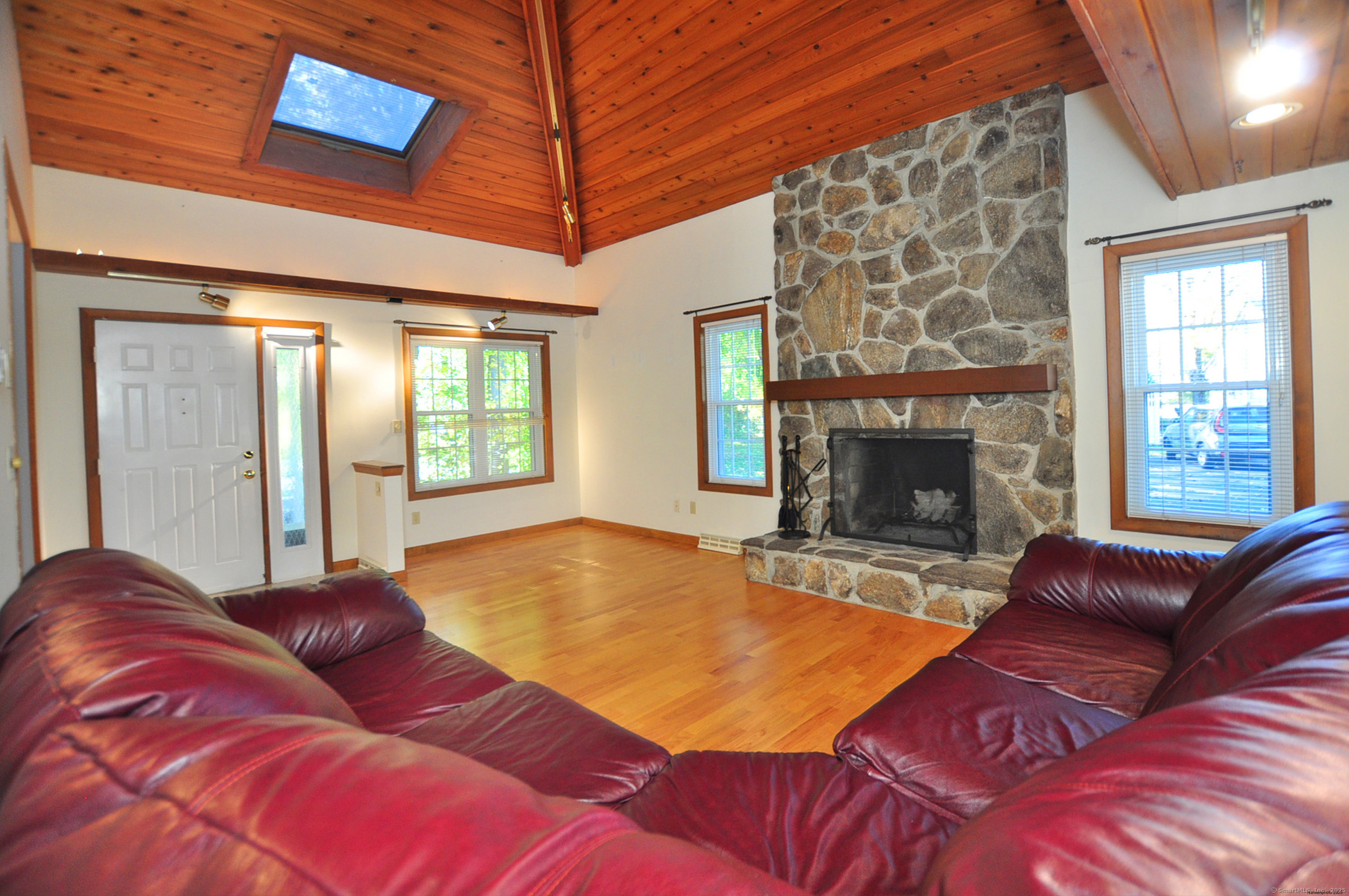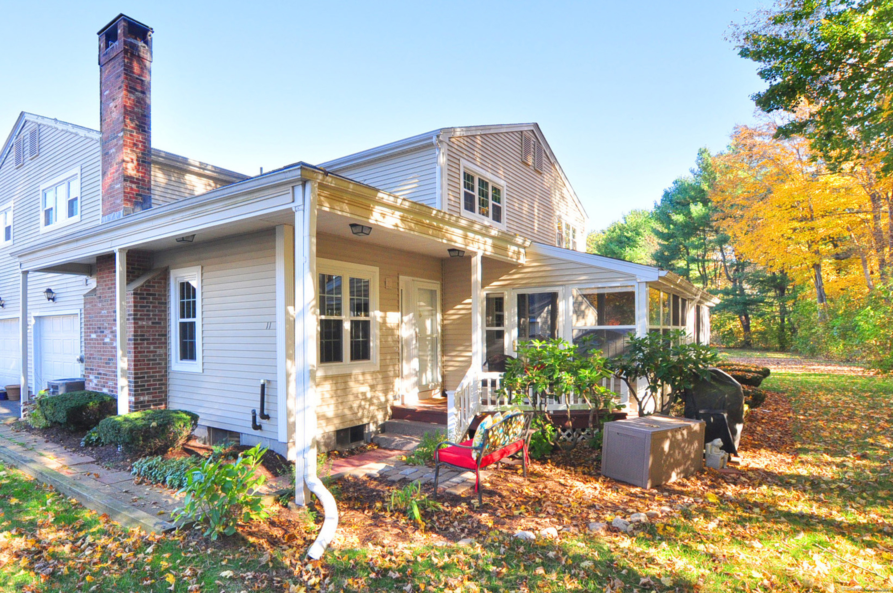 Move right in and be settled before the holidays! This beautifully maintained 2-bedroom, 21/2-bath townhouse offers the perfect blend of comfort, convenience, & care-free living. Enjoy an open floor plan featuring an updated eat-in kitchen with breakfast bar that opens to a spacious great room with fireplace & skylights, filling the space with natural light. Relax in the three-season screened porch overlooking a peaceful, tree-lined setting-perfect for morning coffee or evening unwinding. All bathrooms have been tastefully updated, with the second-floor guest bath featuring a roll-in shower for easy accessibility. The finished lower level offers versatile living space with built-ins, ideal for a family room, office, or guest area. Accessibility features include a mobility ramp in the garage, two Freedom/Lifeway mobility chair lifts (one to the upper level and one to the lower level), & grab bars for added support. Major updates provide peace of mind, including a new 275-gallon oil tank (2018), new furnace (2019), new A/C system (2019), and a new oil-fired hot water heater (2024). Additional improvements include replacement windows and a remodeled half bath. The attached one-car garage provides added convenience and storage. Located within walking distance to Granby Center, the post office, CVS, shopping, restaurants, Starbucks, & Salmon Brook Park-plus easy access to the YMCA, Stop & Shop, Rails to Trails, McLean Game Refuge, Bradley International Airport, & more.