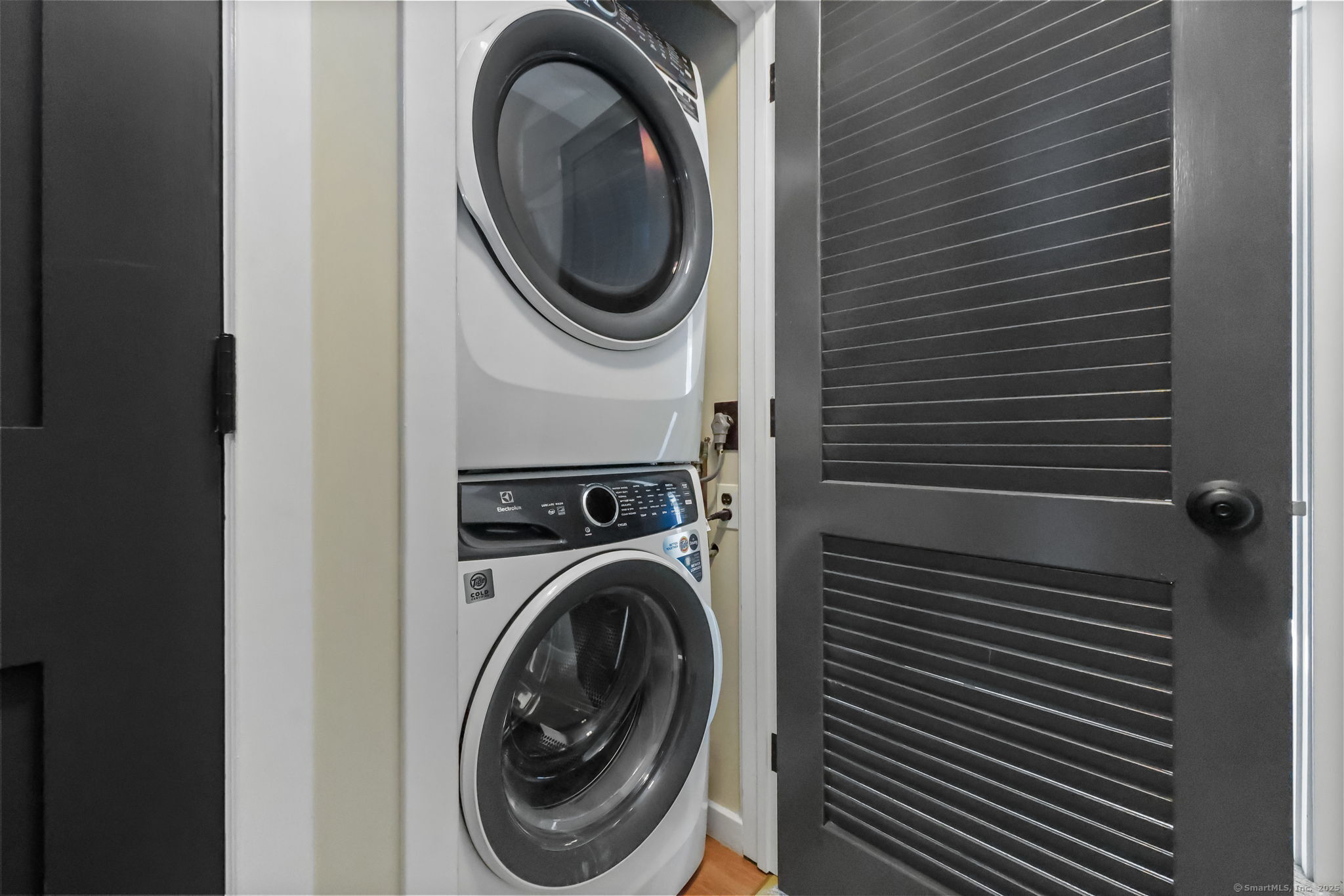 Welcome to Winnipauk Village, where comfort meets convenience. This beautifully updated 2 bedroom, 1.5 bath townhouse offers 1,220 sq ft of inviting living space. The main level features a bright, open-concept layout with a spacious living room anchored by a wood-burning fireplace (perfect for cozy evenings) and sliders leading to a private deck overlooking one of the community's sparkling in-ground pools. The newly renovated eat-in kitchen is a standout with stylish gray-blue cabinetry, quartz countertops, stunning tile, stainless steel appliances, and a charming window seat that makes mornings feel extra warm. An updated half bath on this level is perfect for guests. Upstairs, you'll find two generously sized bedrooms with ample closet space, a renovated full bath with double sinks, and the convenience of in-unit laundry. Every space has been thoughtfully maintained, offering a move-in-ready opportunity in one of Norwalk's most desirable condo communities. Set on beautifully landscaped grounds, Winnipauk Village offers a resort-like lifestyle with amenities including multiple pools, tennis/pickleball courts, a fitness center, and a clubhouse. Located in a peaceful residential setting near West Rocks, this home is just minutes from Route 7, I-95, the Merritt Parkway, Metro-North, Stew Leonard's, schools, shops, dining, and Norwalk's growing business district. A rare opportunity for comfort, style, and amenities in a prime location.