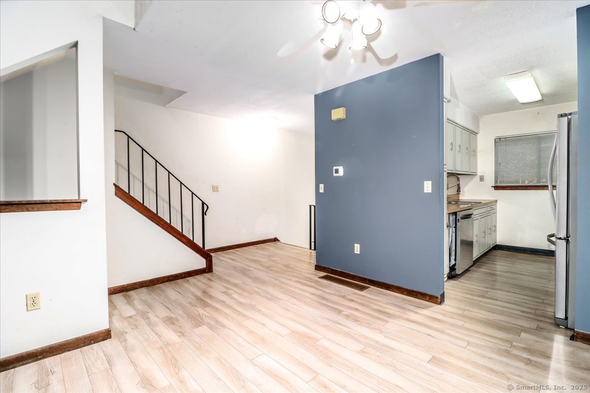 Welcome to this affordable tri-level condominium, designed for comfort, privacy, and lifestyle. Step inside and discover a contemporary layout that separates the living spaces from the bedrooms, offering a sense of privacy. The dining area features a dramatic vaulted ceiling with skylight. a galley-style kitchen, and a sunken living room with a cozy fireplace-perfect for relaxing evenings. A sliding glass door leads to a private deck, ideal for seasonal outdoor enjoyment. Each bedroom is positioned on its own level, providing privacy and separation with just a few steps between them. The lower level includes a one-car garage with opener and a versatile additional room with walk-out access-ready to be transformed into a recreation room, home office, or whatever suits your lifestyle. Only a short walk to enjoy the amenities of this complex, including a pool, clubhouse, and tennis court. The location is unbeatable-just minutes to Short Beach and from Branford's vibrant downtown with its array of restaurants and shops. Commuters will appreciate the easy access to I-95, making travel to New York or Boston convenient. Bring your imagination and design for your personal touch to make this inviting space your own! Being sold "As-Is"